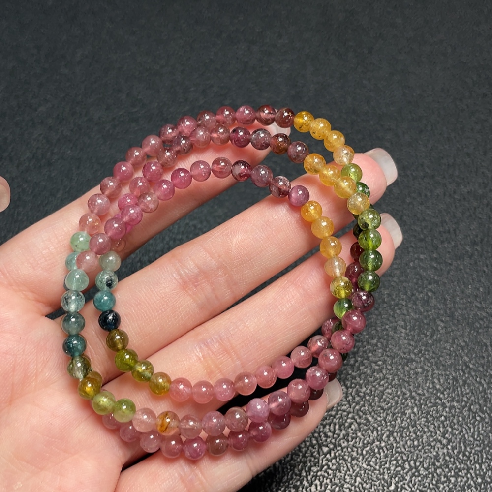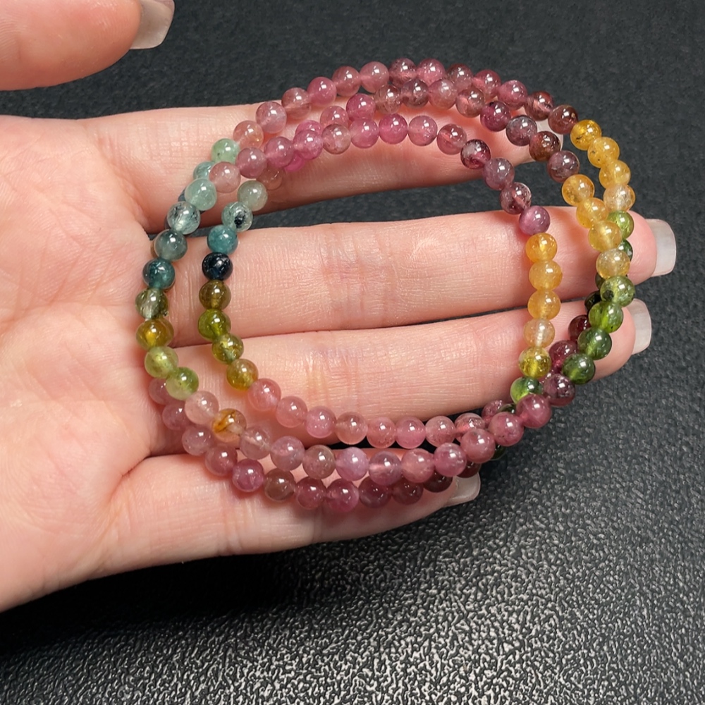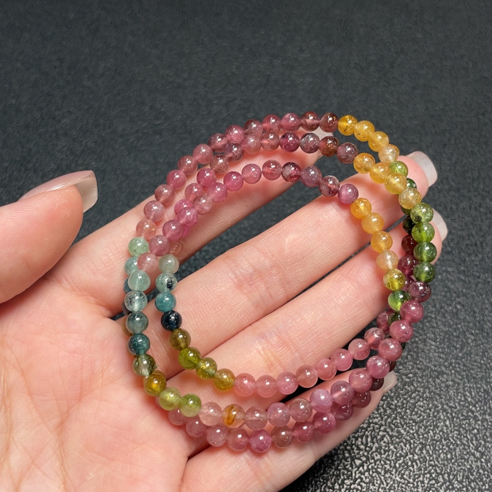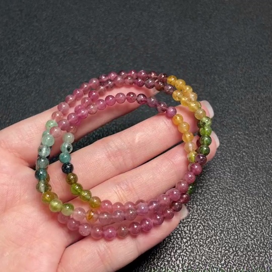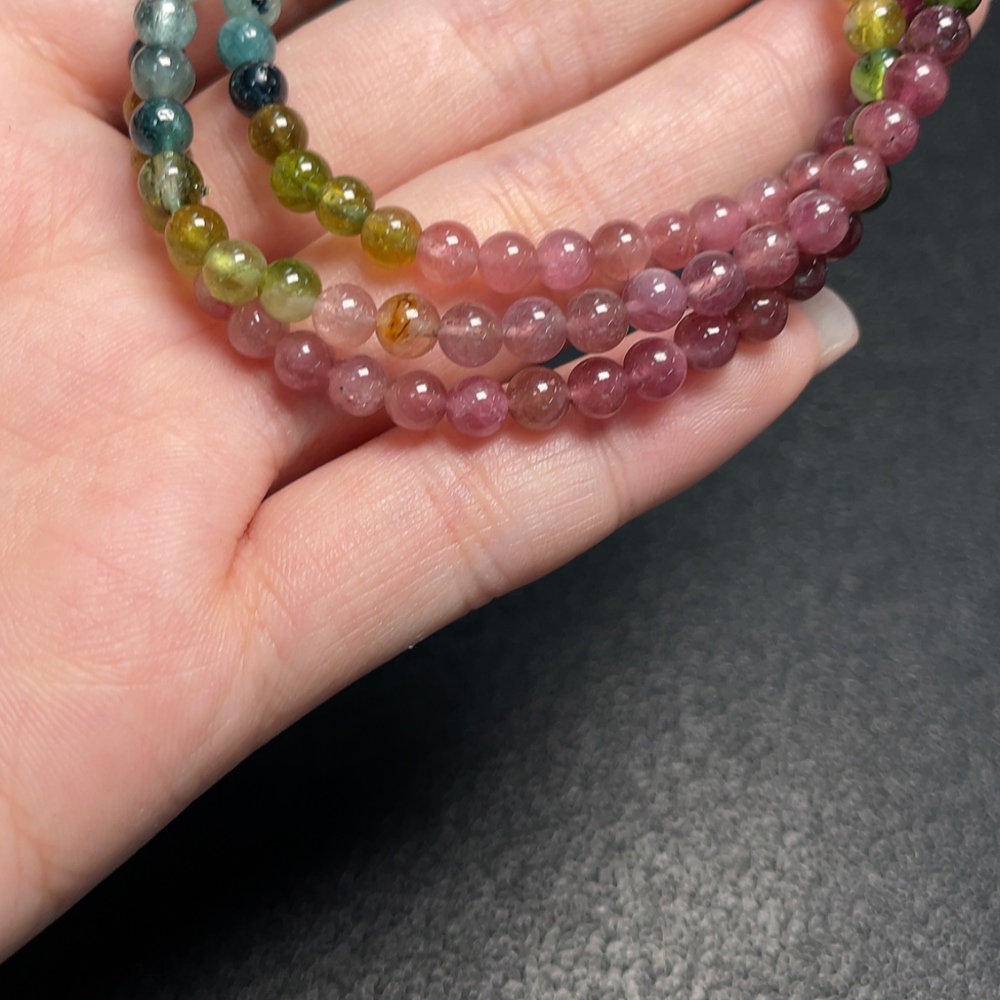 Tourmaline bead necklace with visible organic matter, total weight approx. 17.80g, bead size approx. 4.5mm