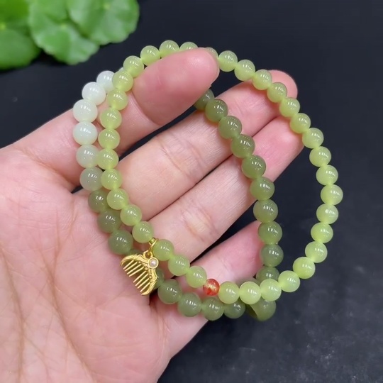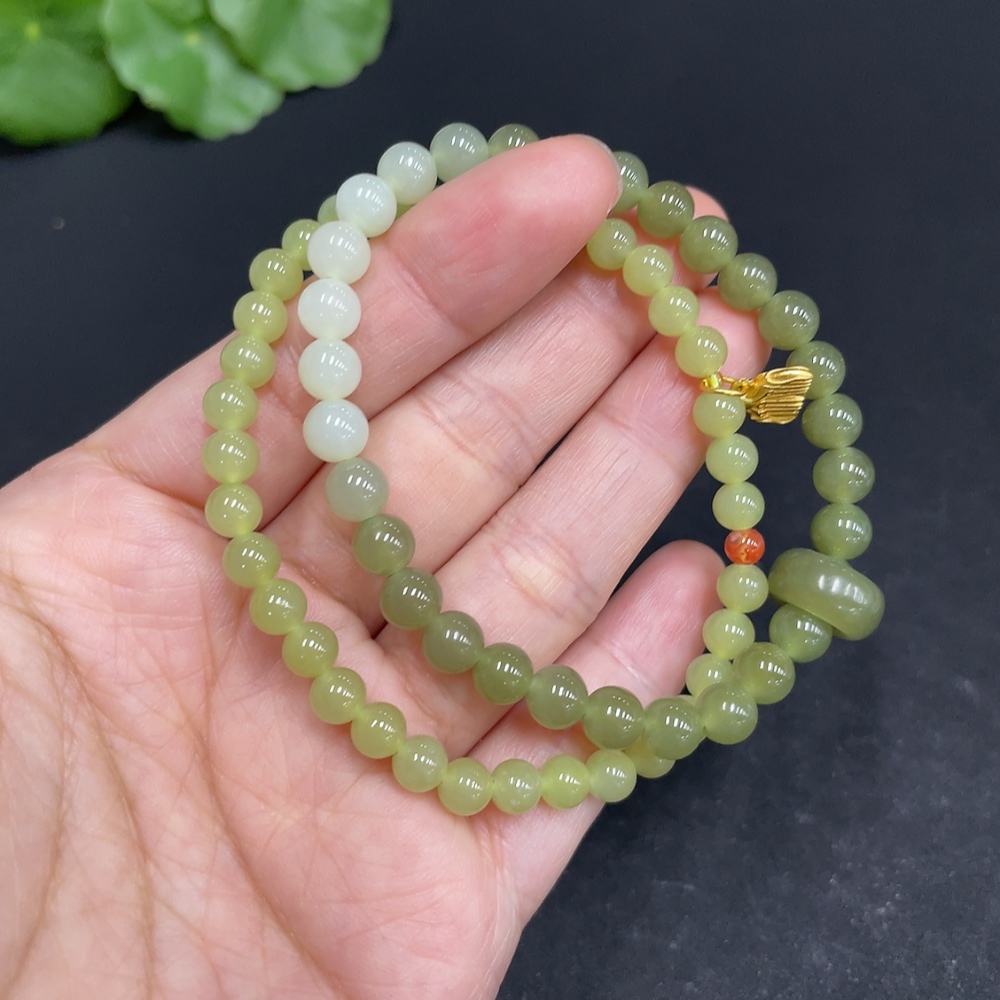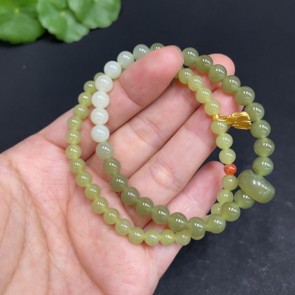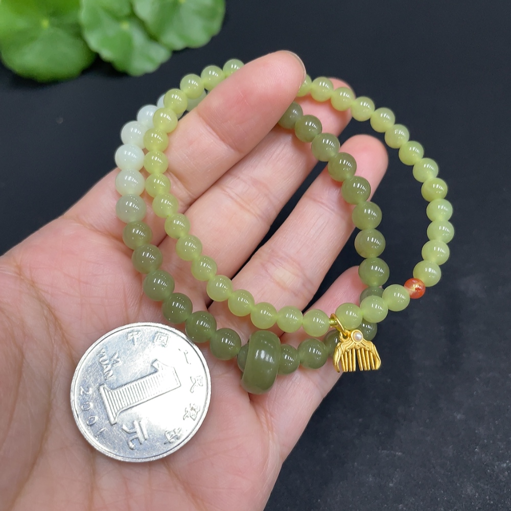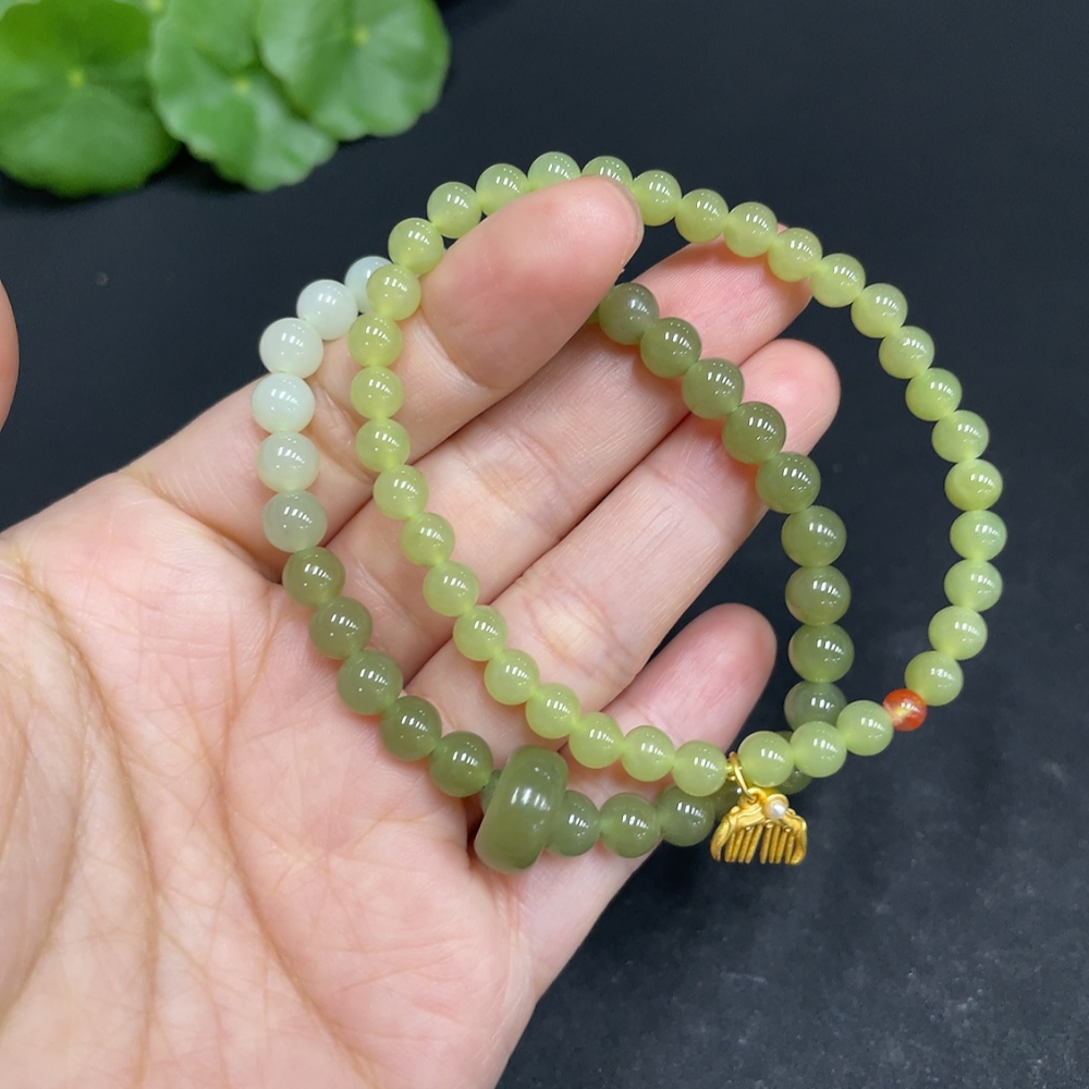 Hetian Jade Bracelet, Approx. 5.9/5.1mm, Non-Gold Inlaid, Total Weight Approx. 18.5g, Non-Hetian Jade Beads