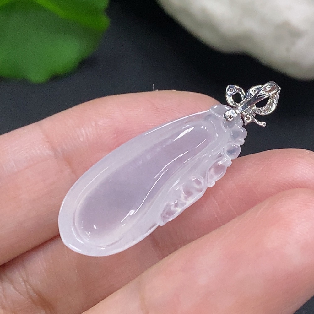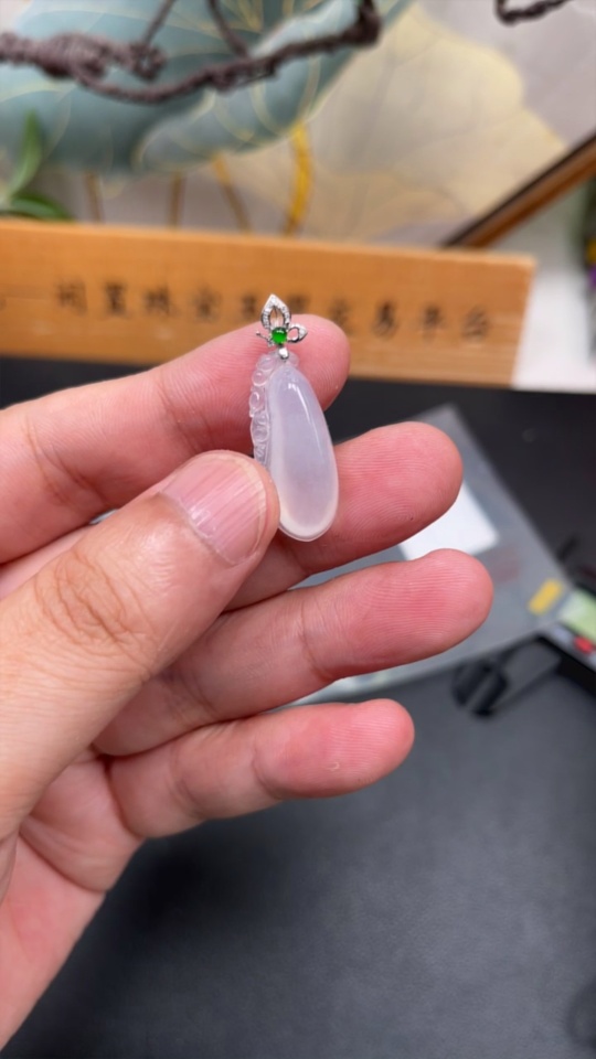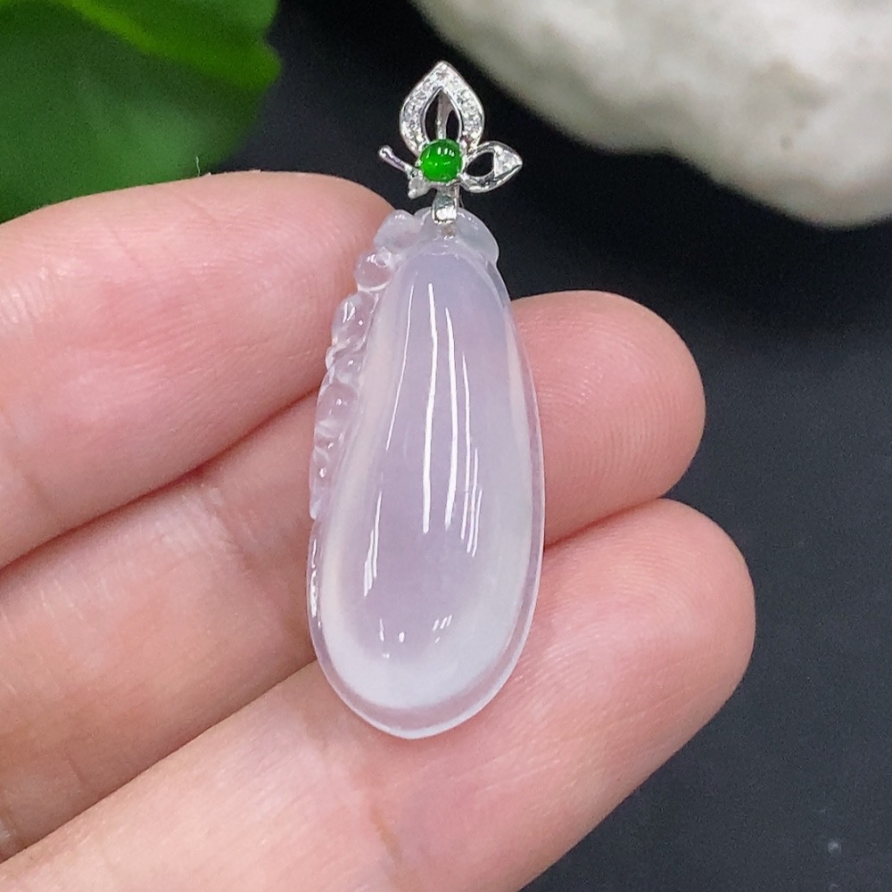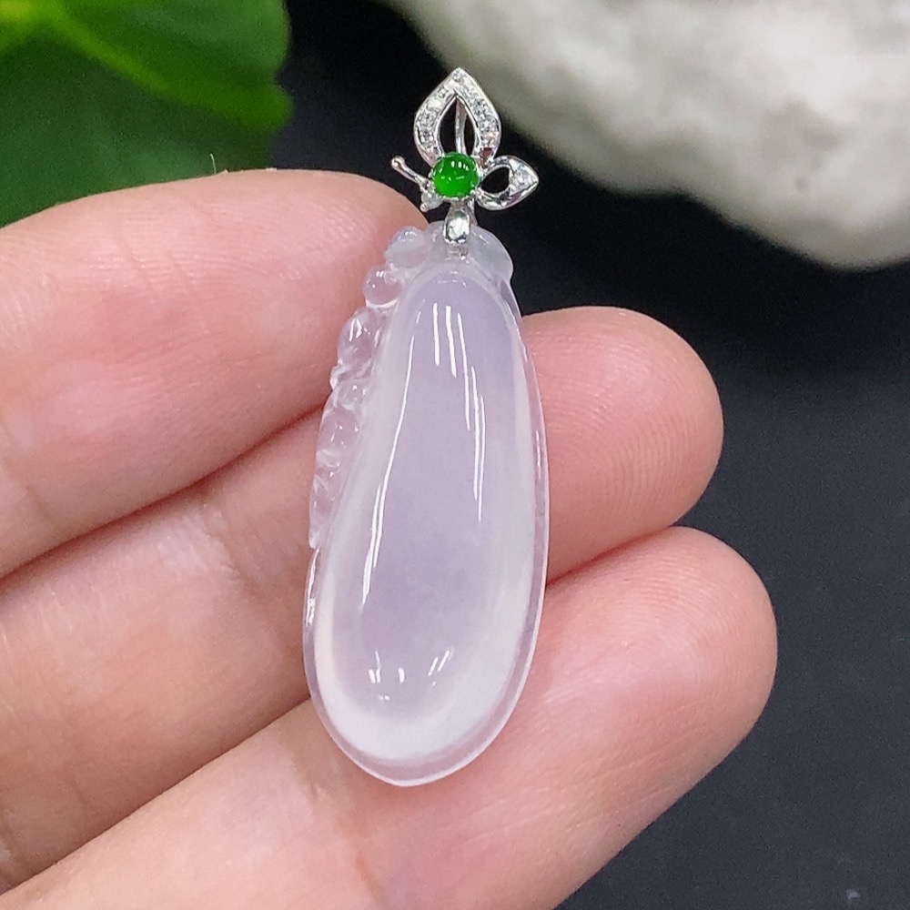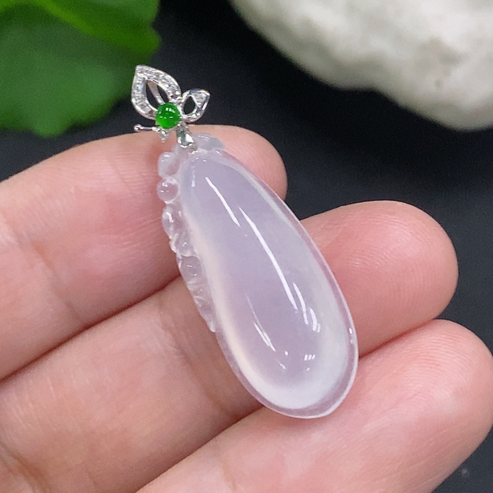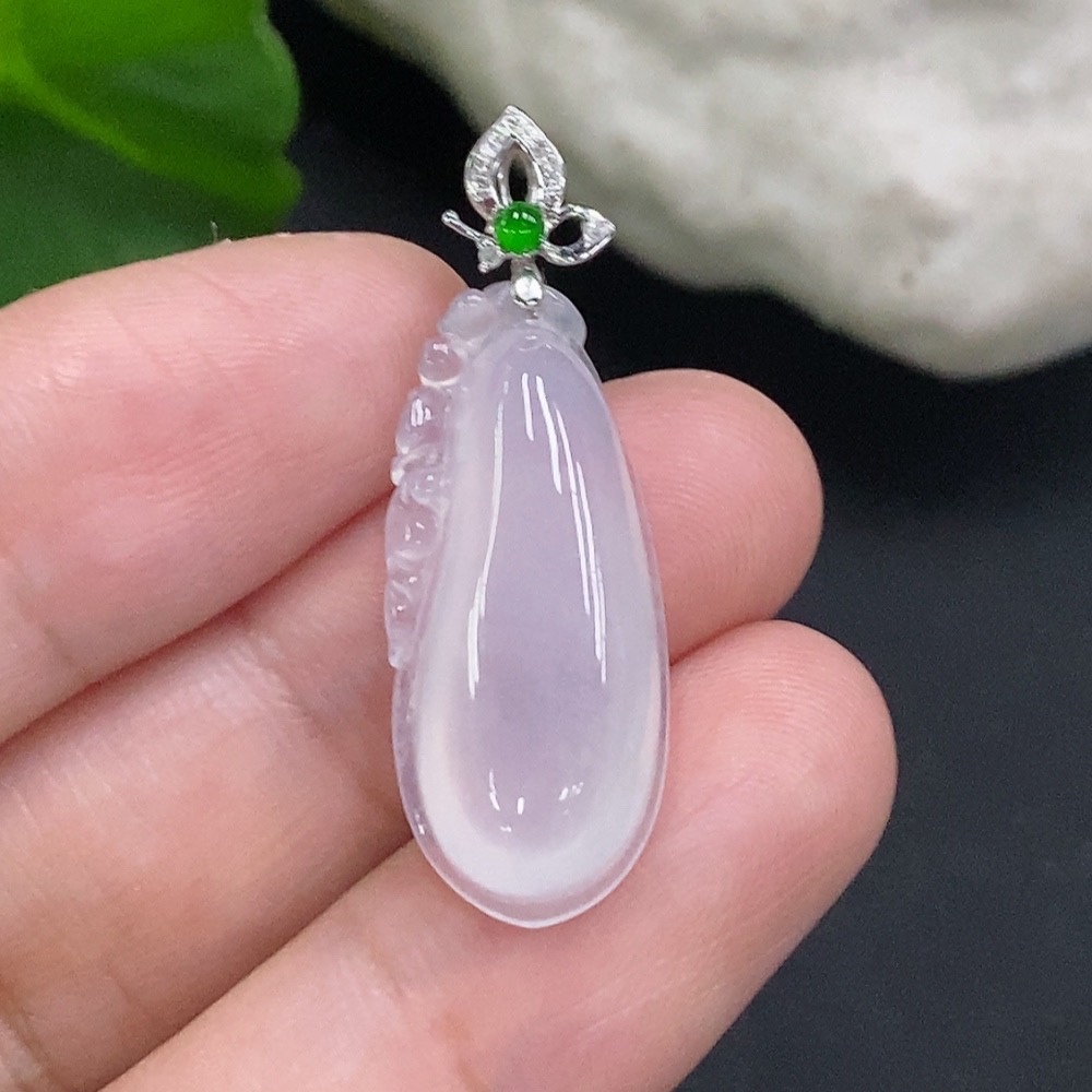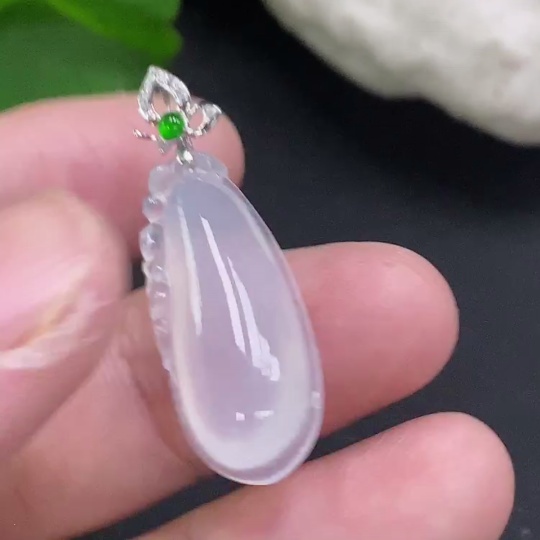 Jadeite Fu Gua Pendant with 18K Gold Clasp, Total Weight Approximately 3.4g, Accented with Diamonds