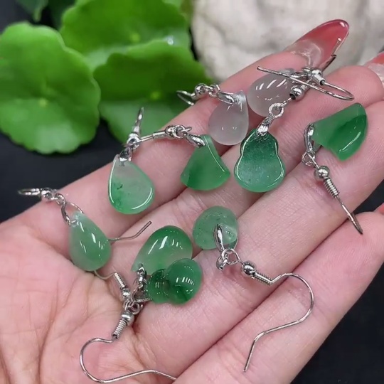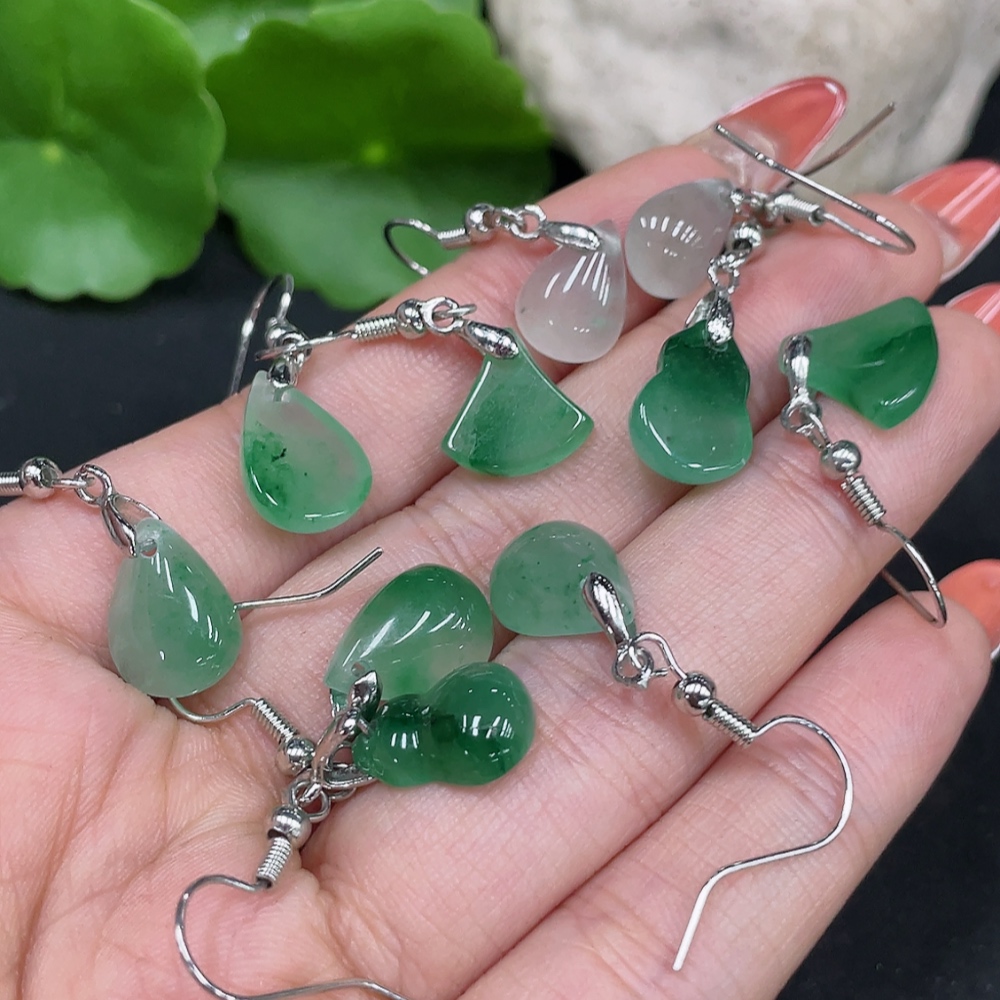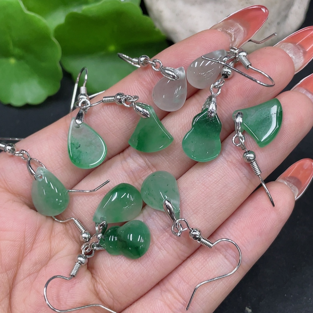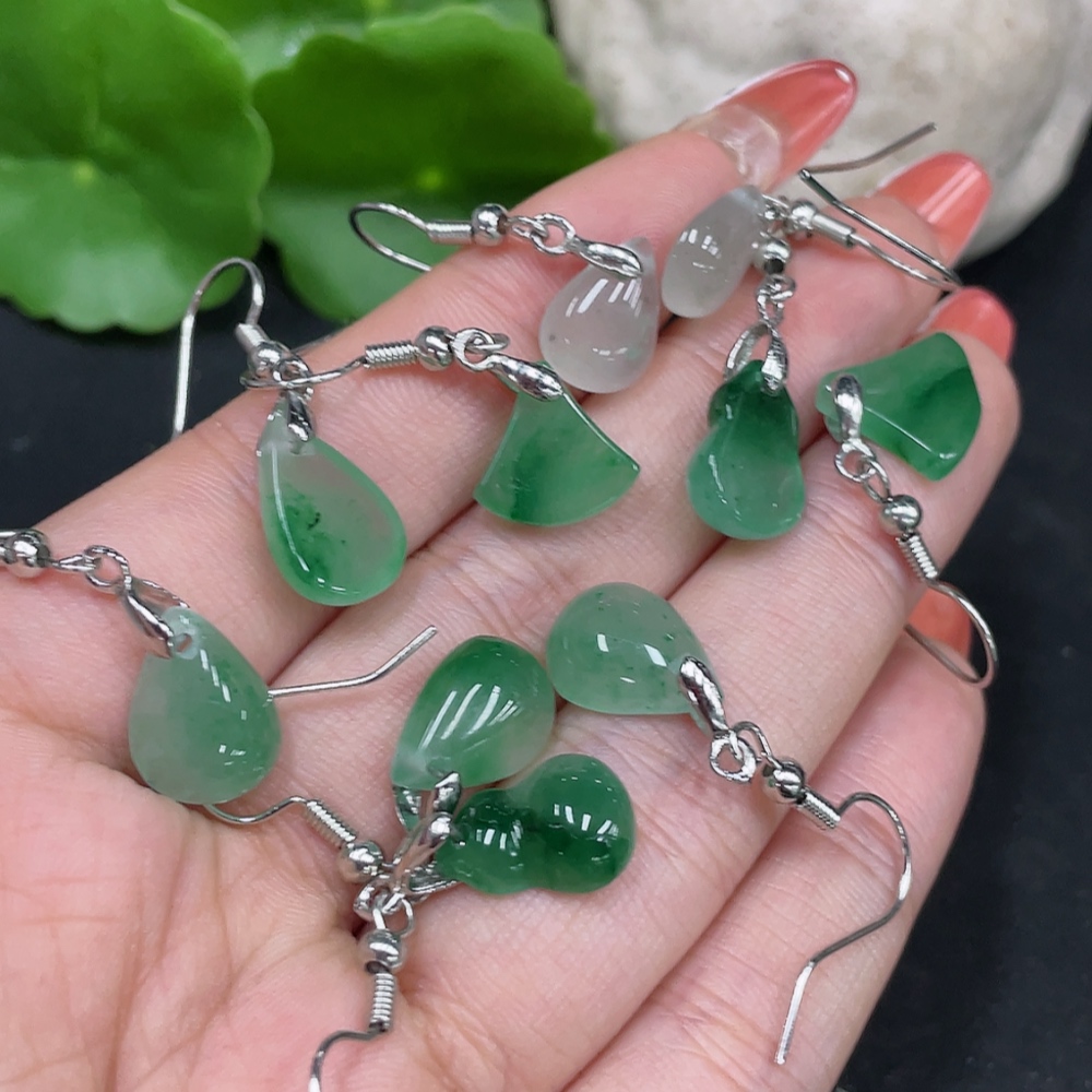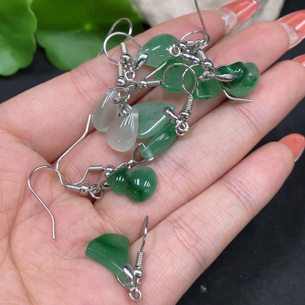 African Emerald (Dulong Jade) Earrings Non-Gold Inlaid Total Weight Approx. 10.3g