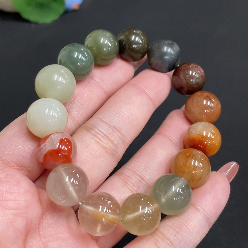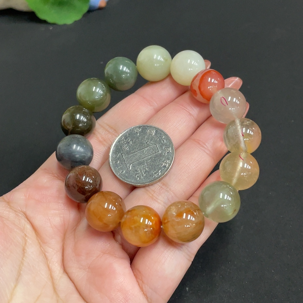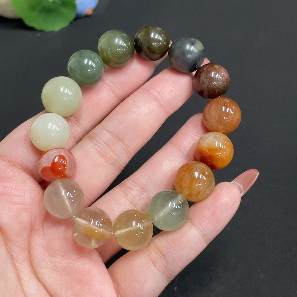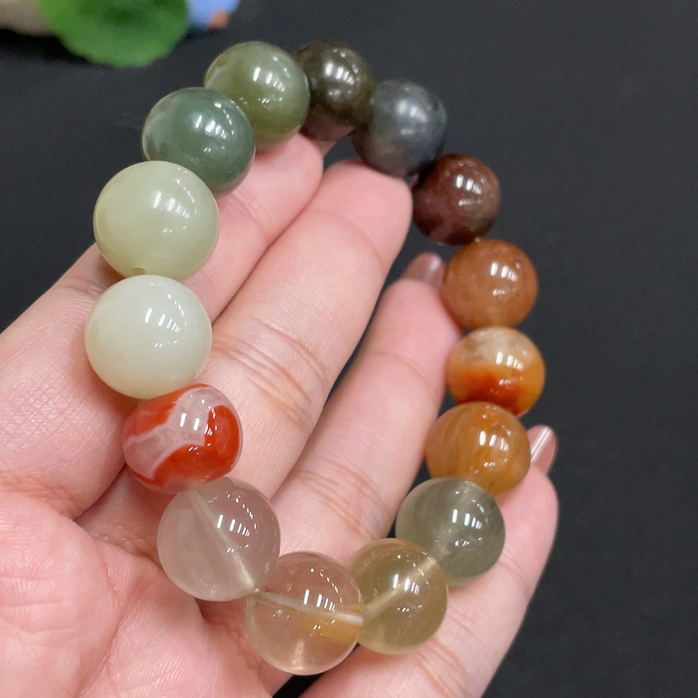 Hetian Jade Bracelet, Approx. 13.8 mm Beads, Total Weight Approx. 59.6g, Non-Hetian Jade Accessory Beads