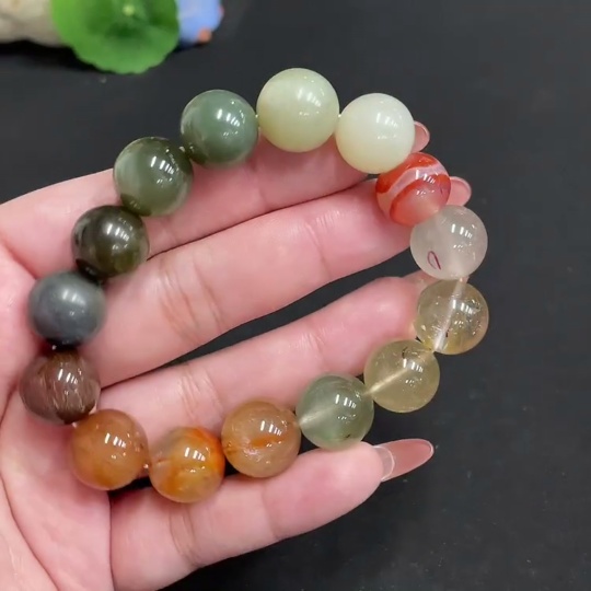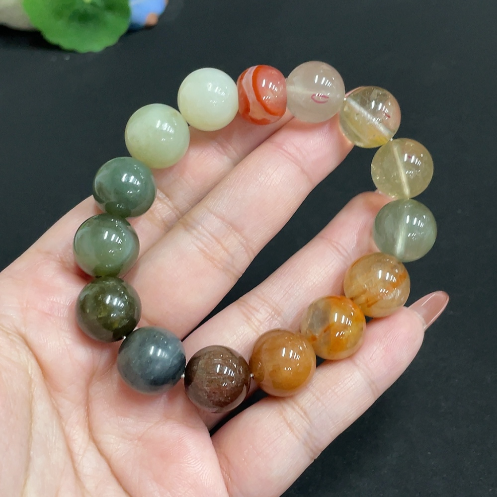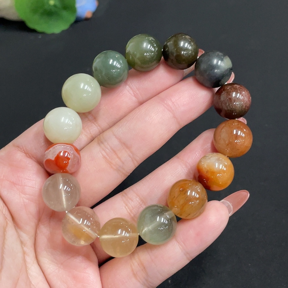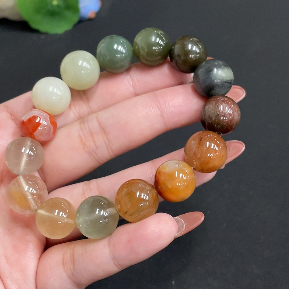 Hetian Jade Bracelet, Approx. 13.8 mm Beads, Total Weight Approx. 59.6g, Non-Hetian Jade Accessory Beads