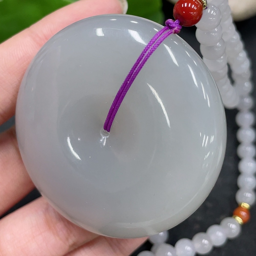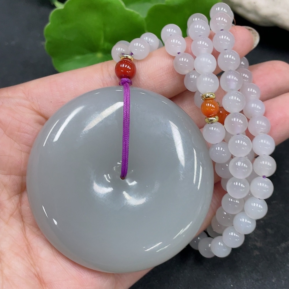 Hetian Jade Pendant, Peace Buckle with Non-Hetian Jade Beads, Non-Gold, Total Weight Approximately (Including Chain) 119.7g