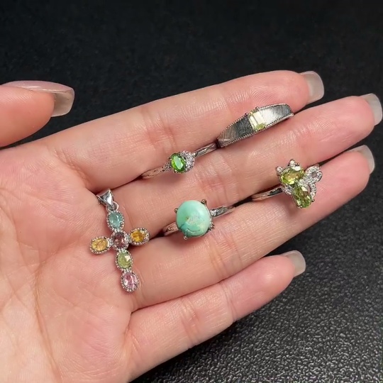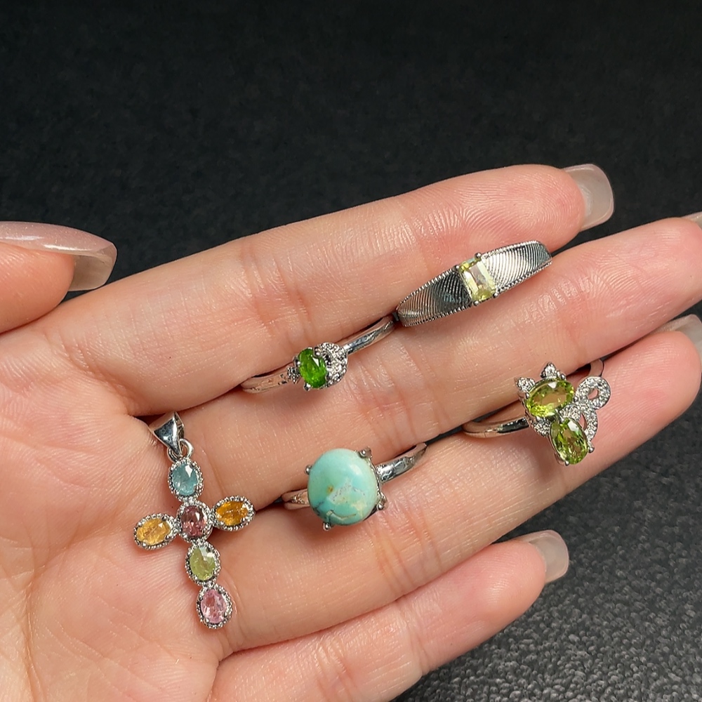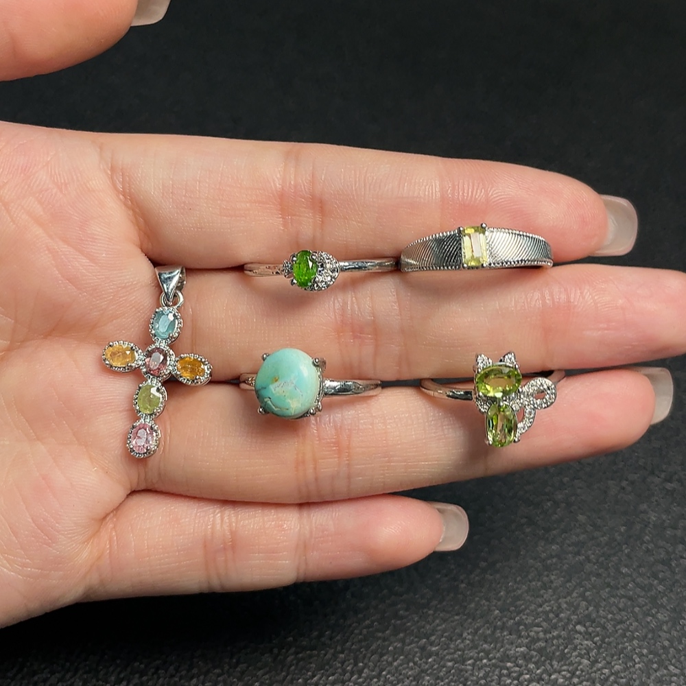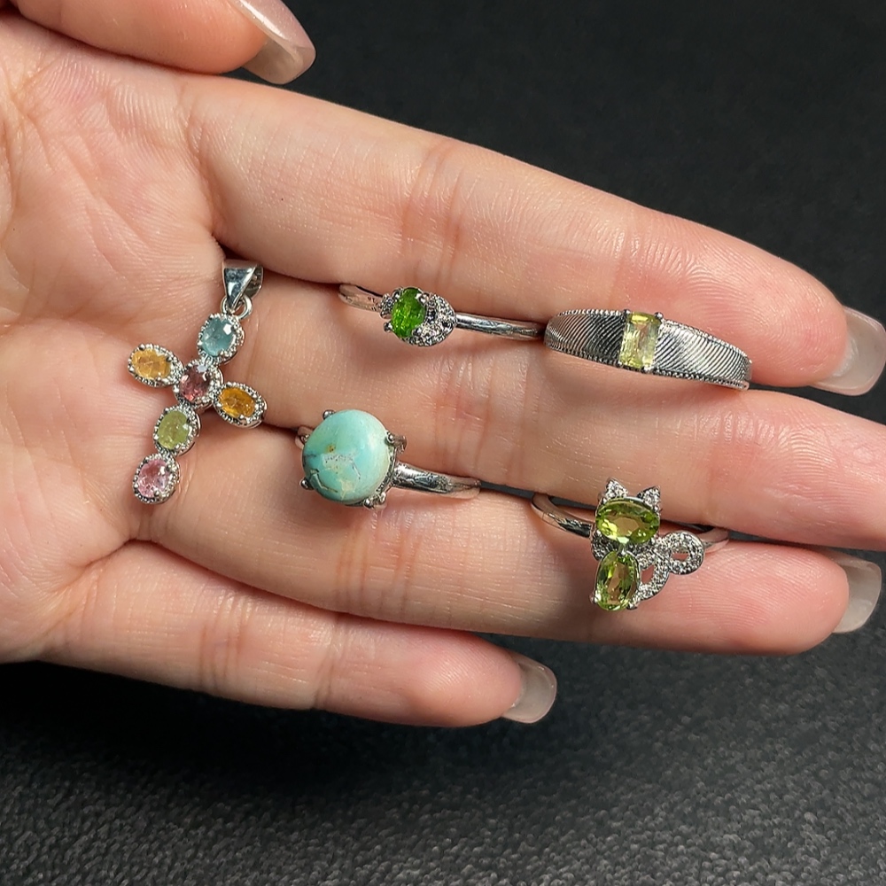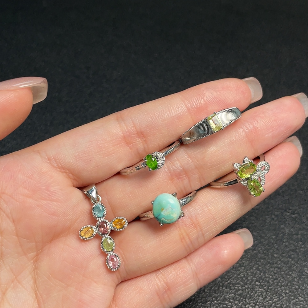Tourmaline + Diopside + Turquoise + Peridot + Tourmaline with Visible Organic Inclusions Jewelry Non-Gold Total Weight Approx. 8.23g Sell as a Lot