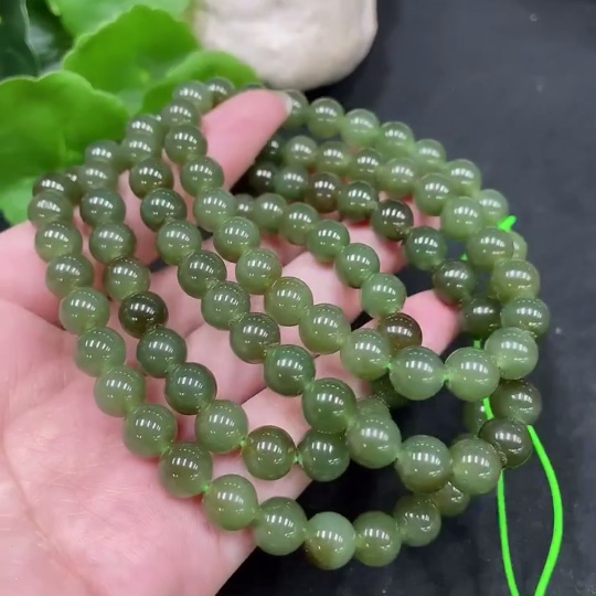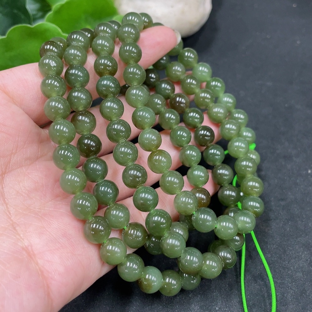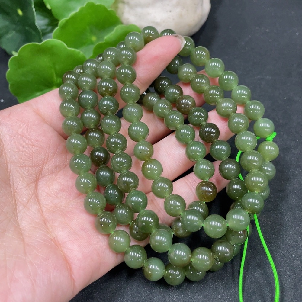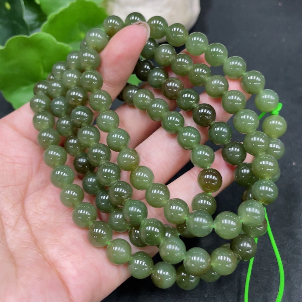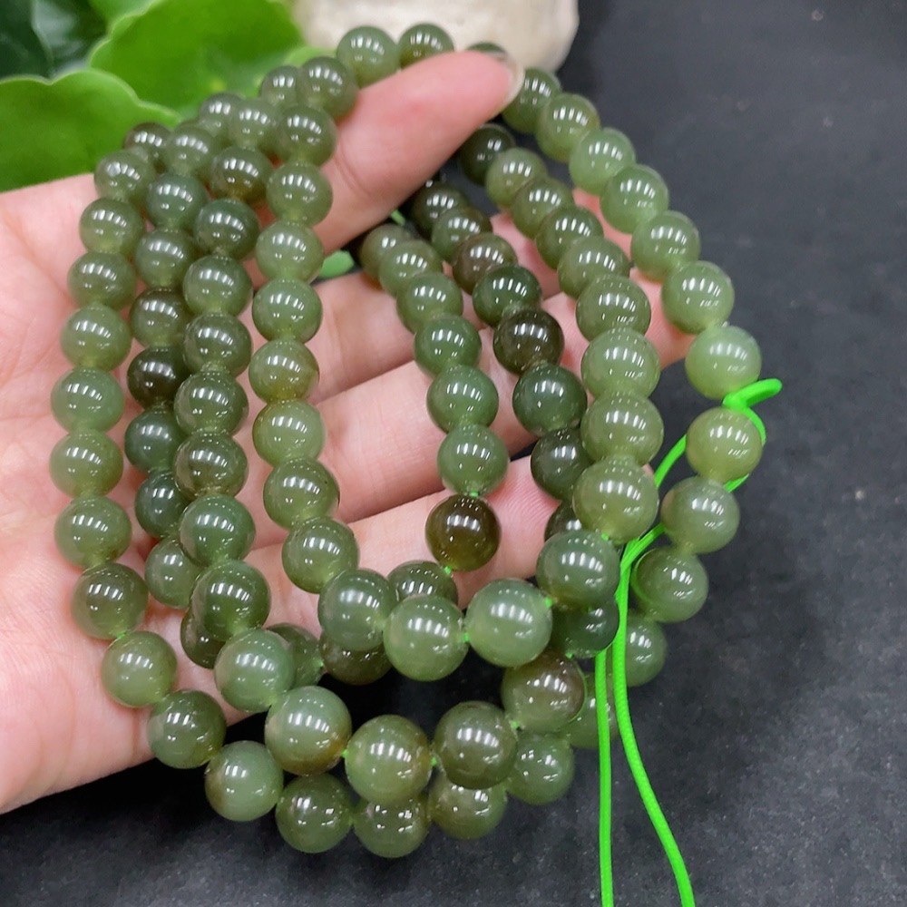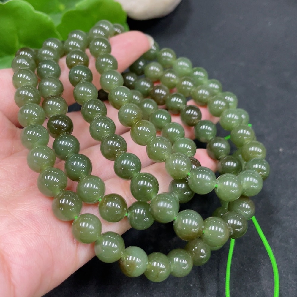 Hetian Jade Bead Necklace Approx. 7.8mm Total Weight Approx. 86.9g