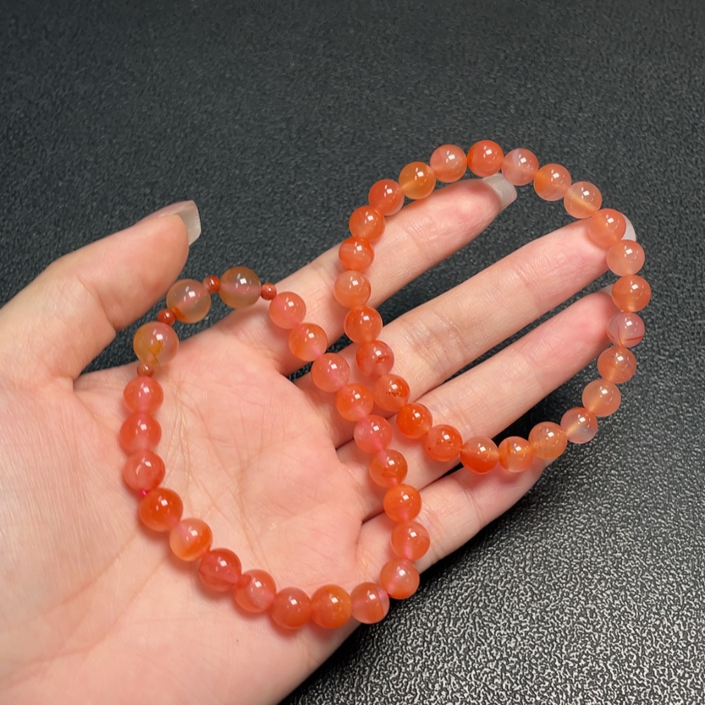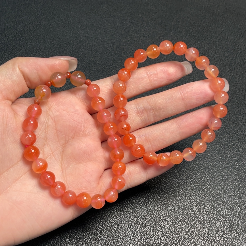Red Agate Bracelet with Visible Organic Matter, Total Weight Approx. 32.48g, Sell as a Lot