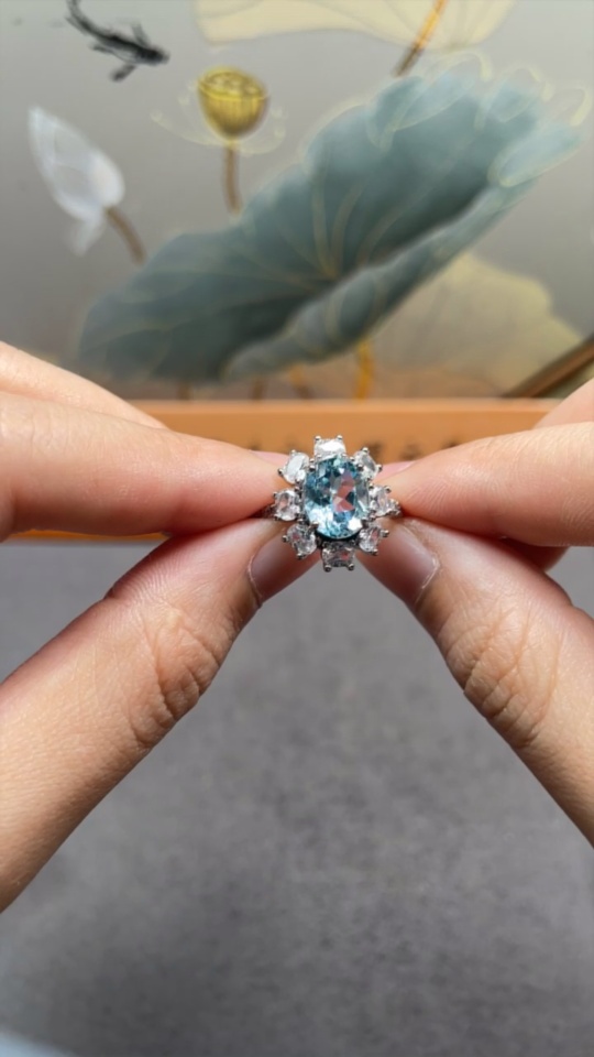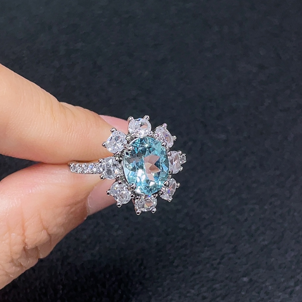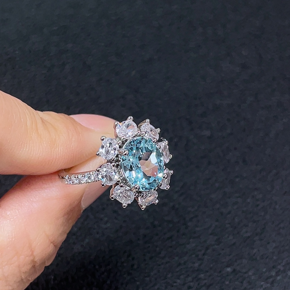 Topaz ring, color origin undetermined, non-gold, adjustable, total weight approximately 4.26g, size about 9.8*7.5mm