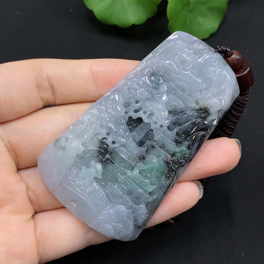Jadeite Landscape Pendant Total Weight Approx. 52.42g