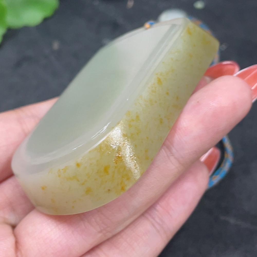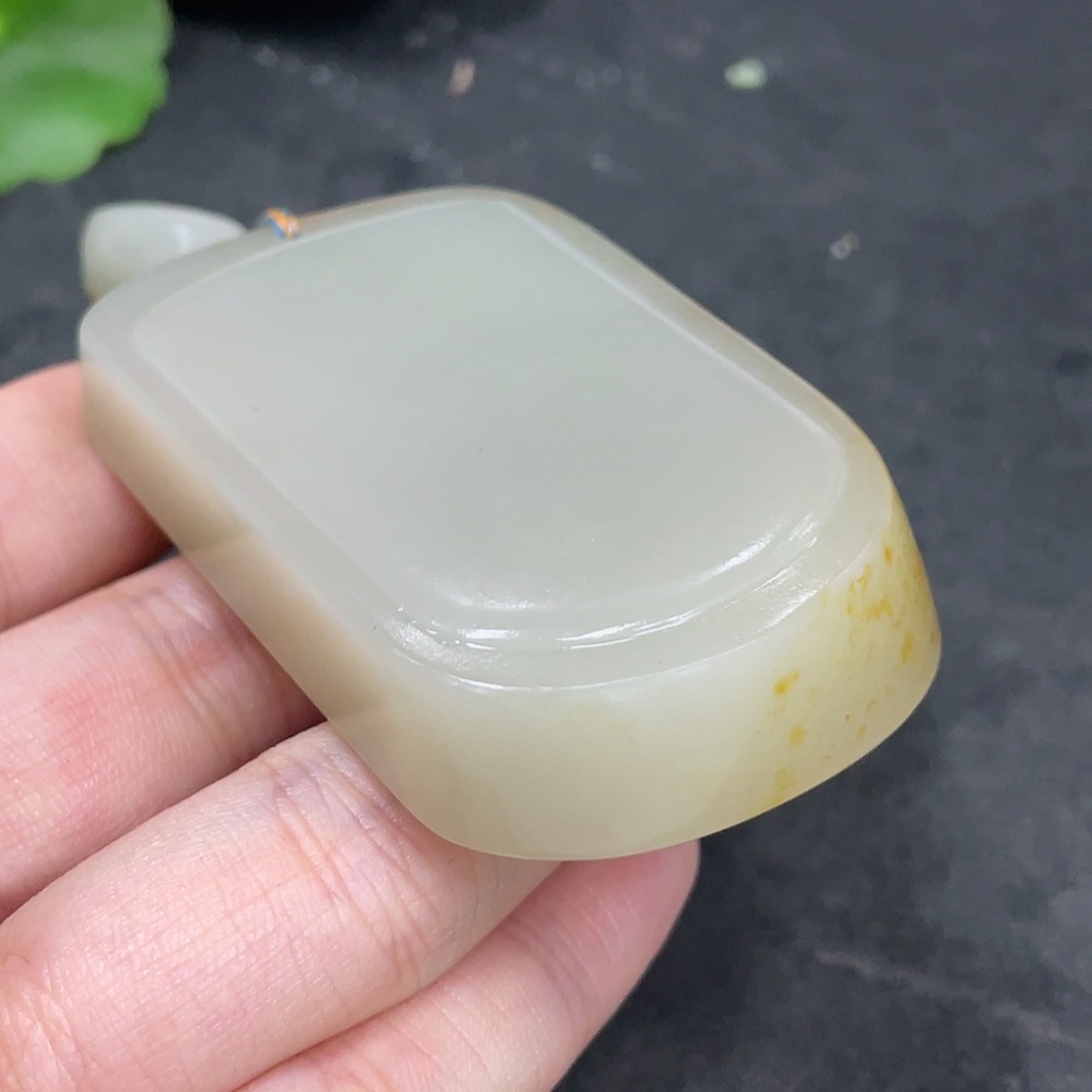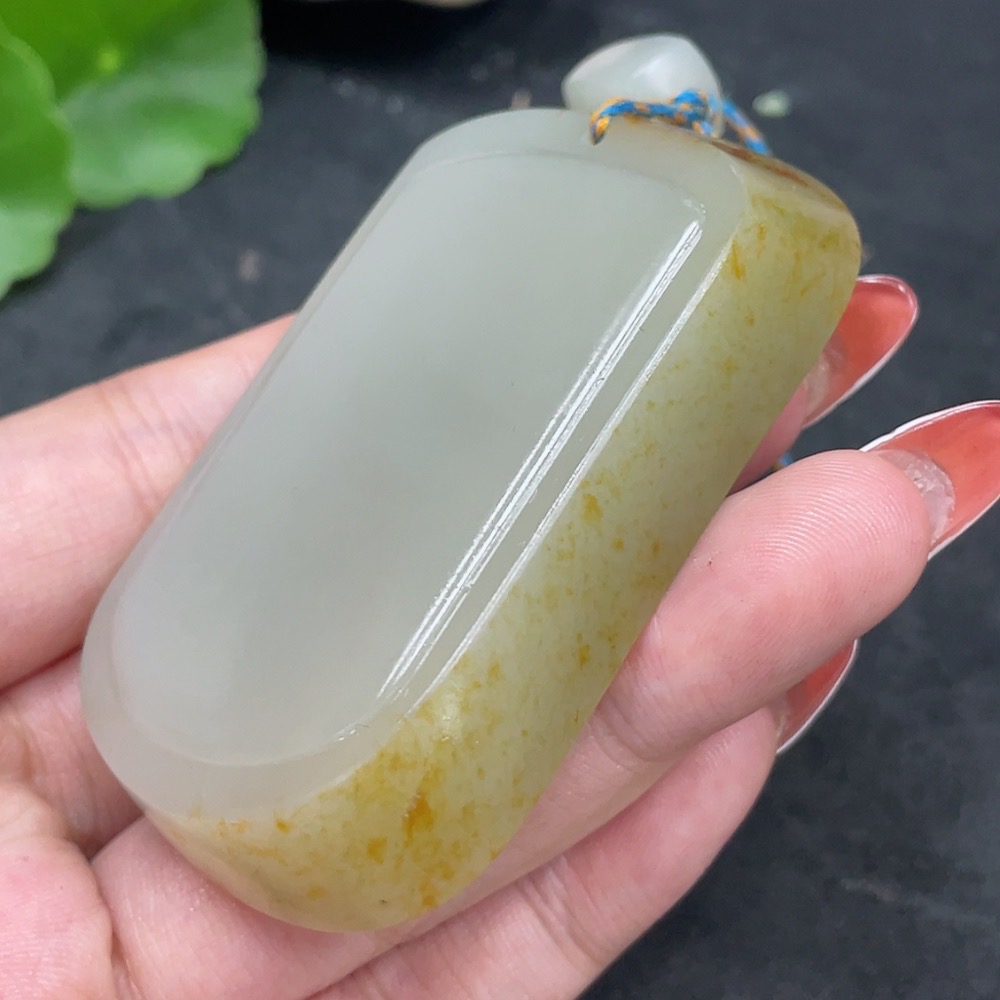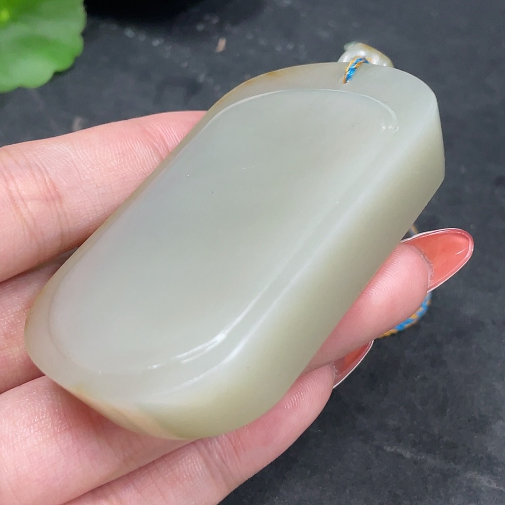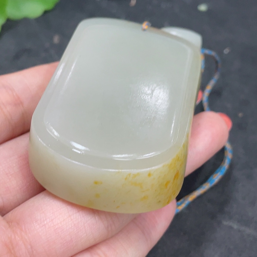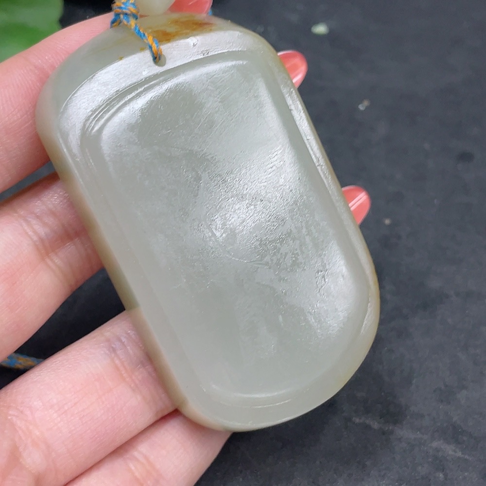 Hetian Jade Seed Material Pendant, Plain Pendant, Undetermined Skin Color Cause, Total Weight Approximately (Including Rope) 91.2g