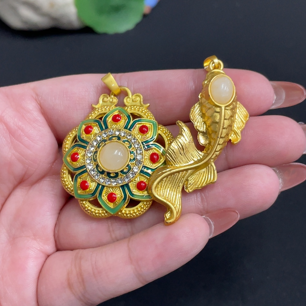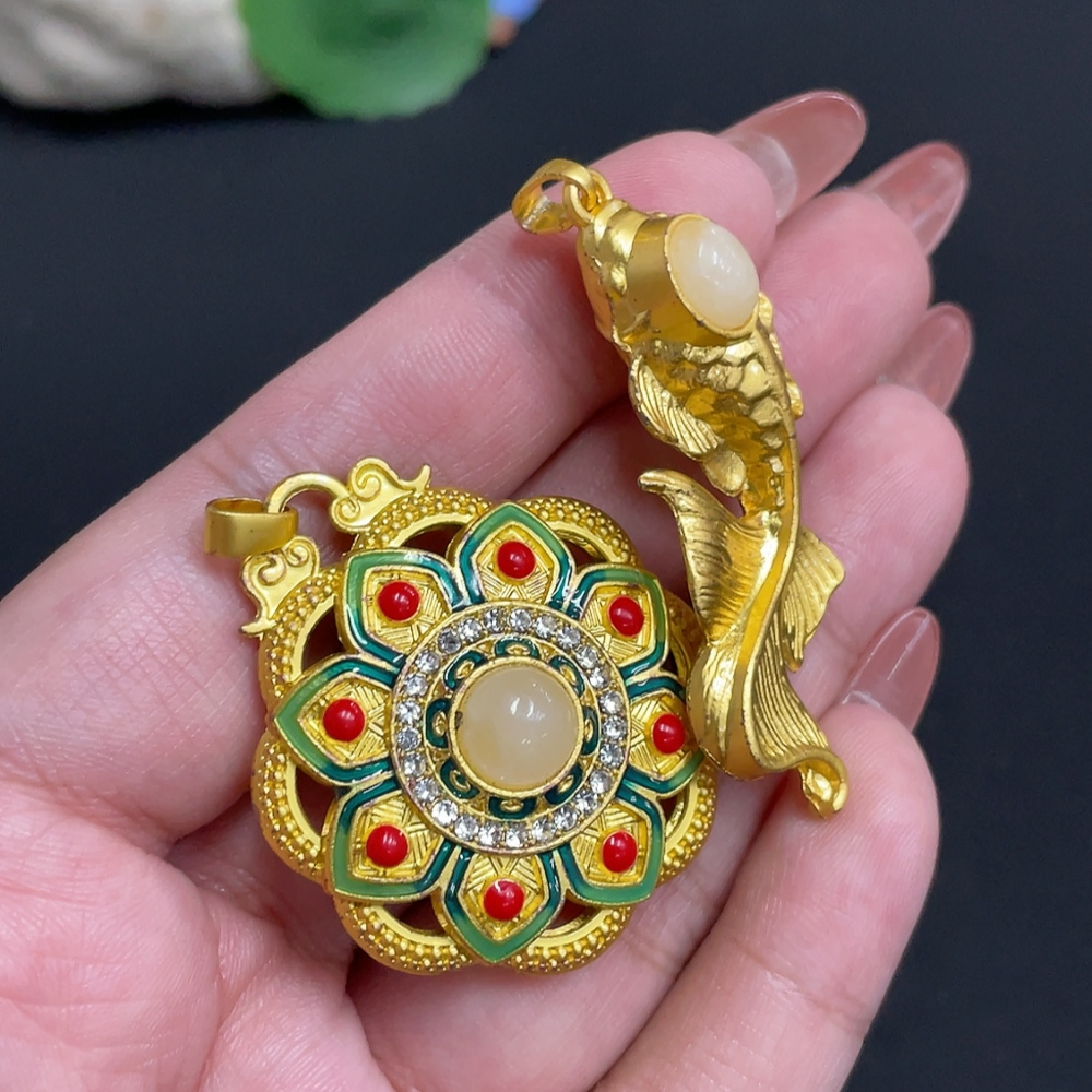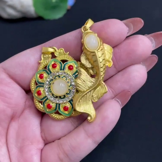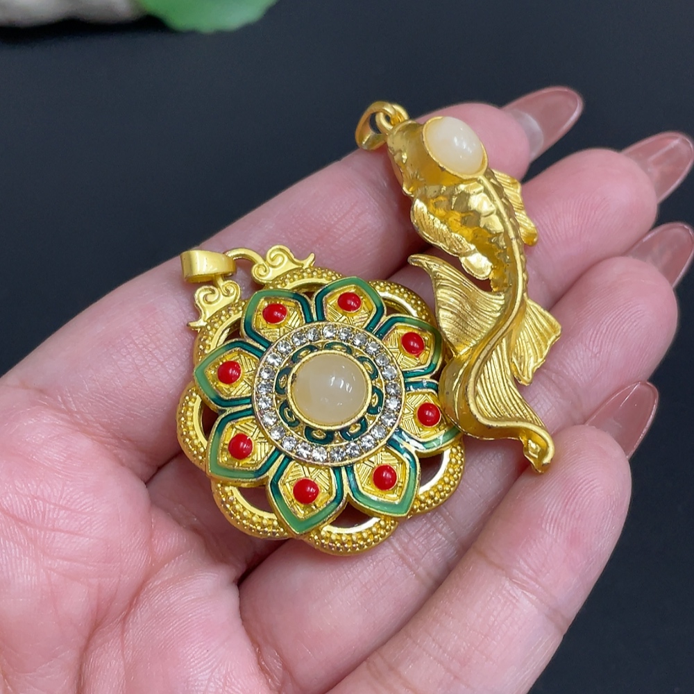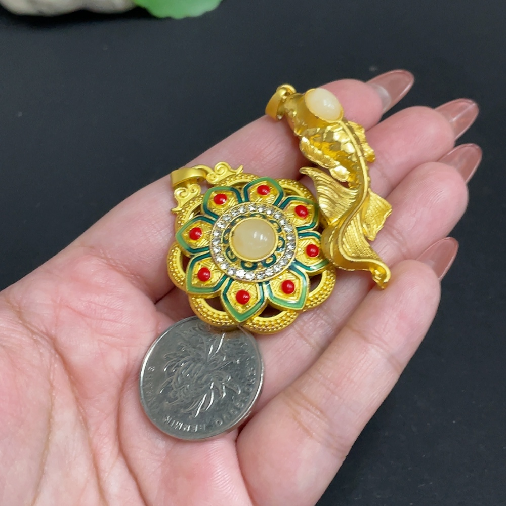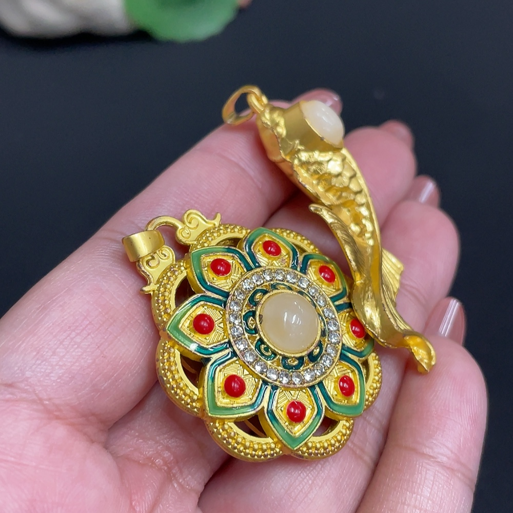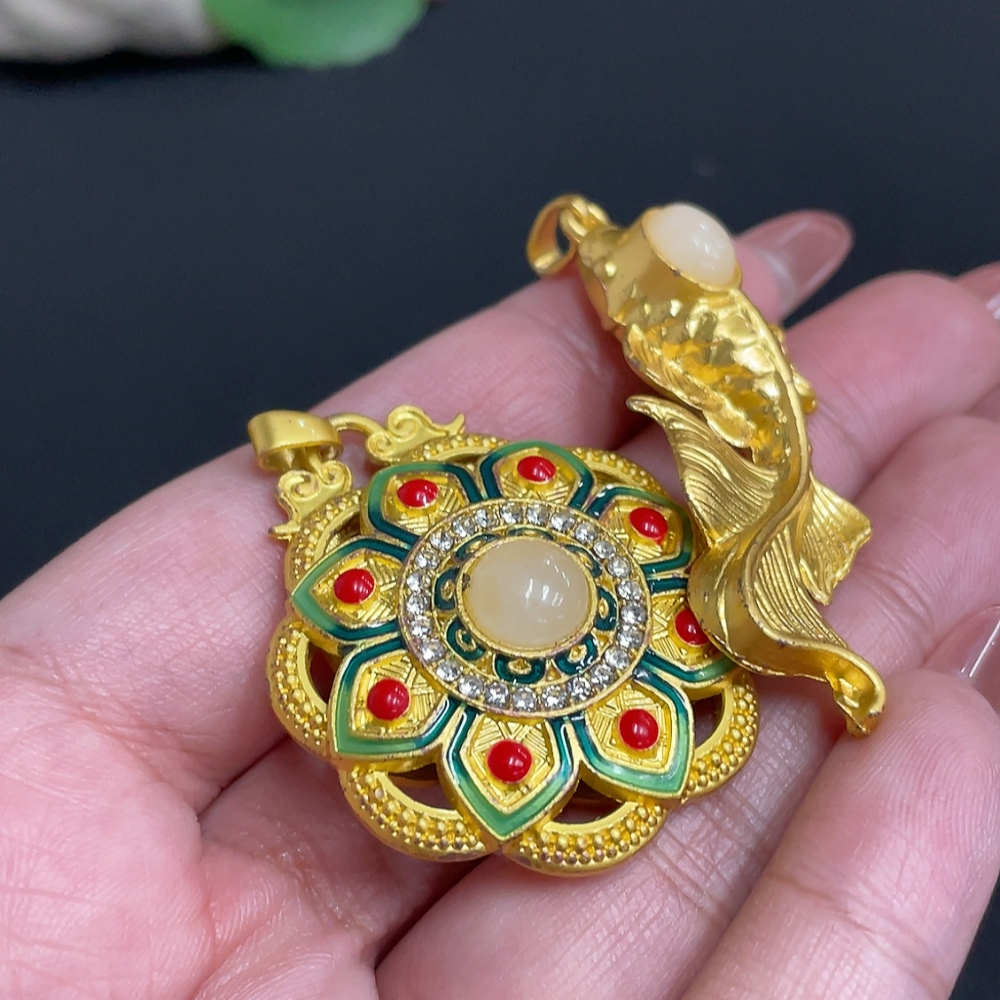 Hetian Jade Inlaid Pendant Total Weight Approx. 28.4g Non-Gold