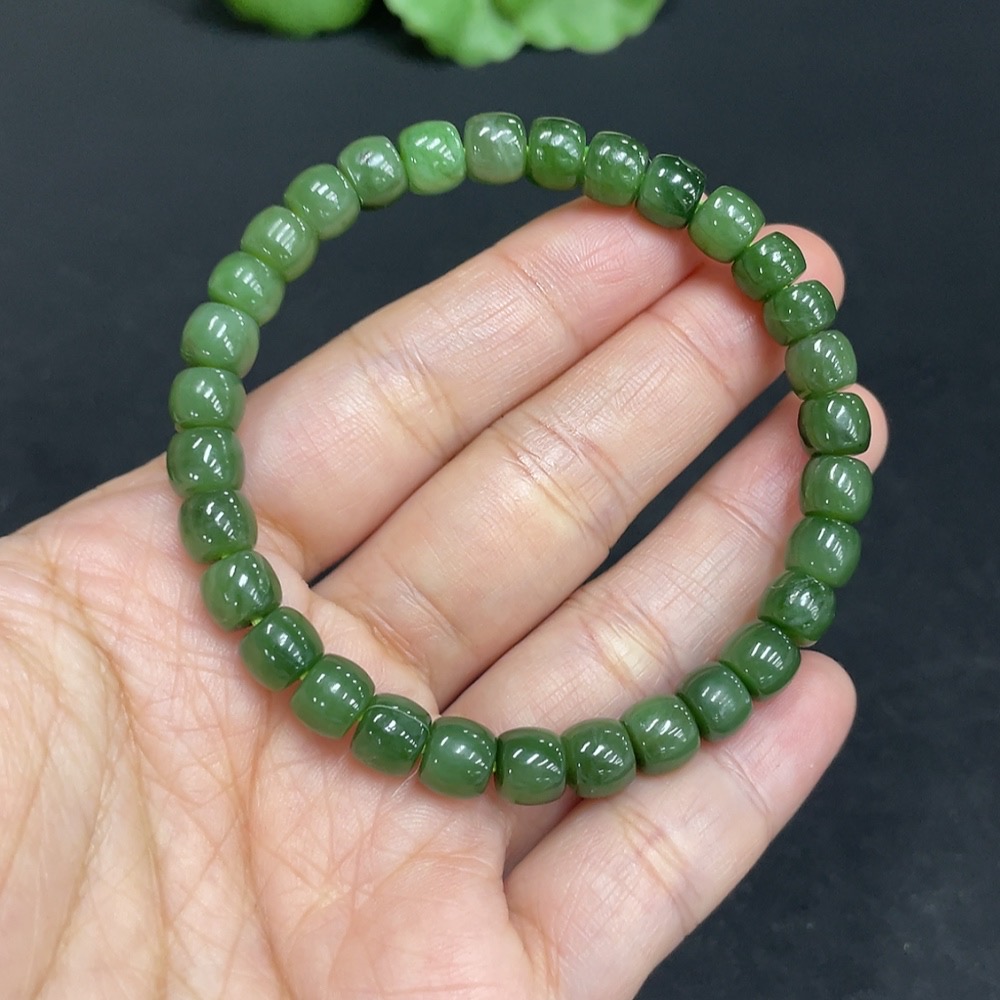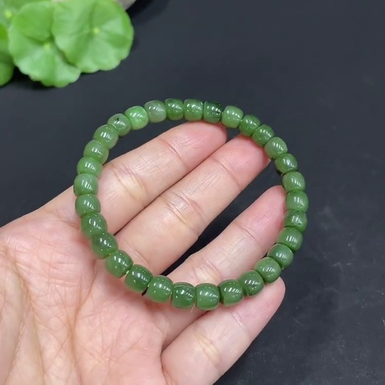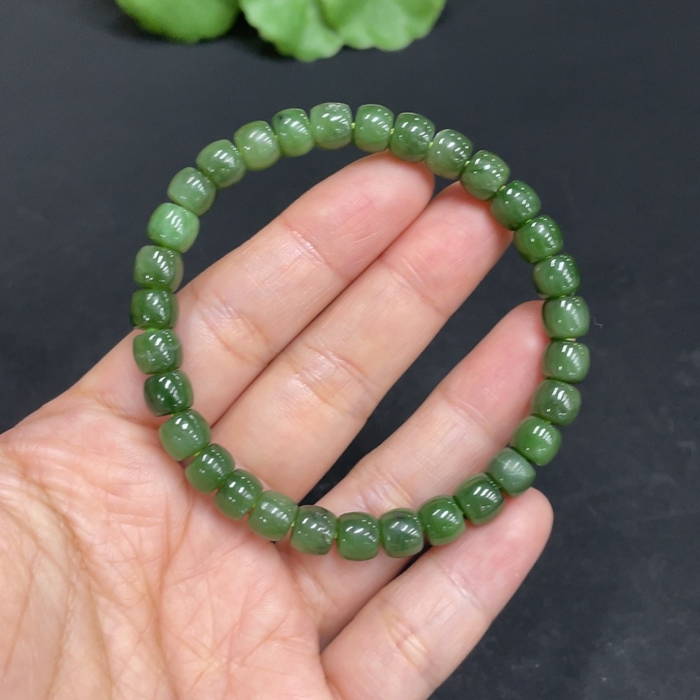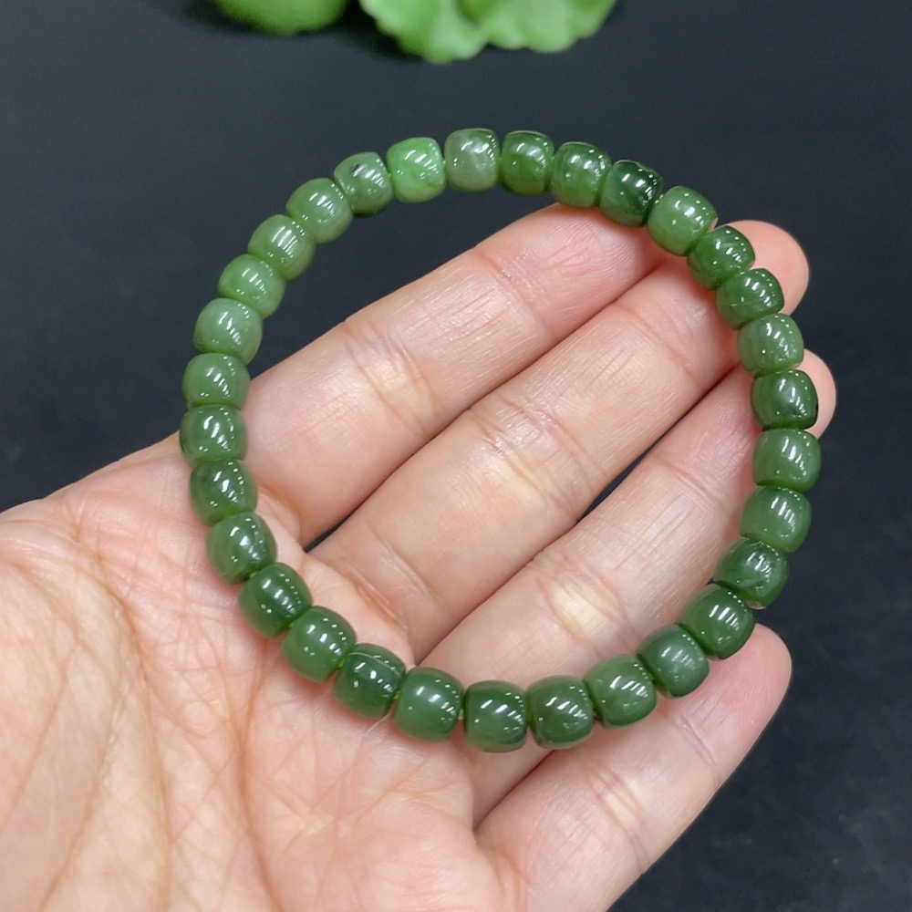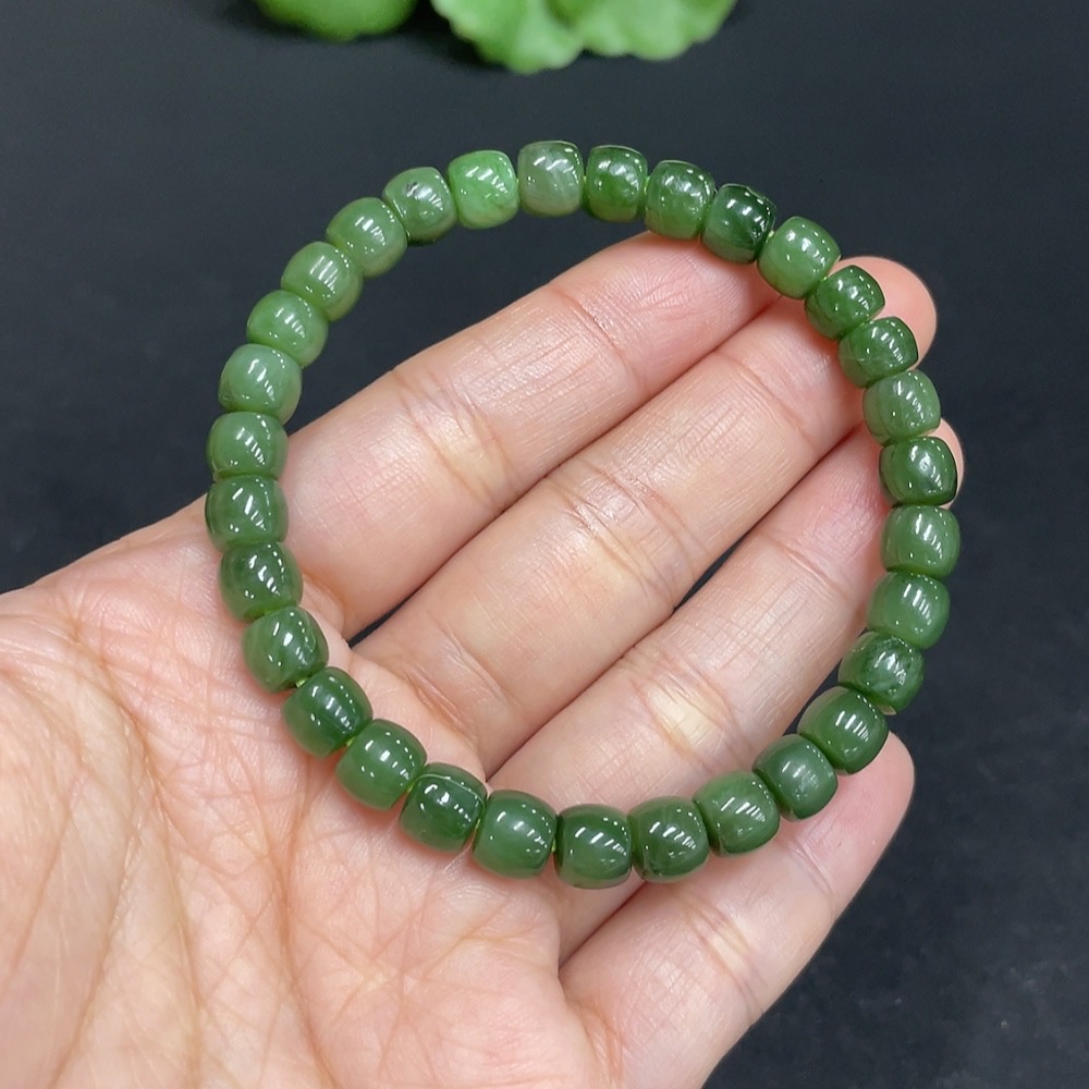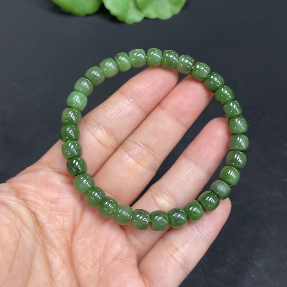 Hetian Jade Green Jade Bead Bracelet, Approx. 6.6mm, Total Weight About 15.2g