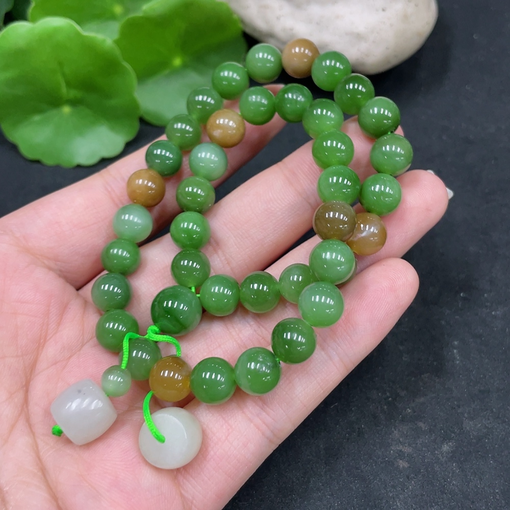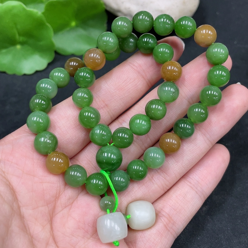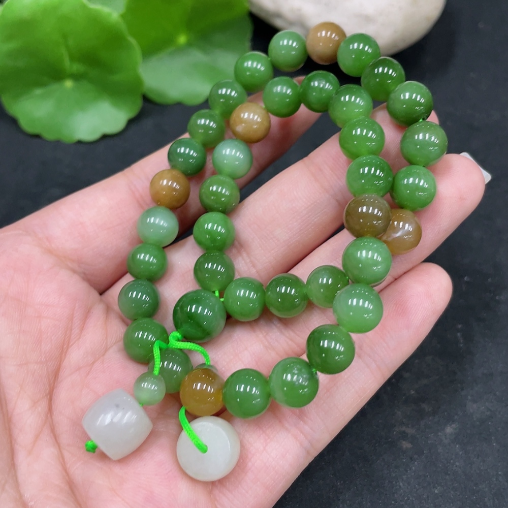 Hetian Jade Beaded Necklace 7.6mm Approx. Total Weight 35.5g Approx.