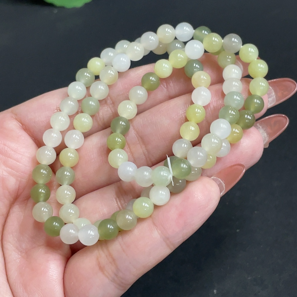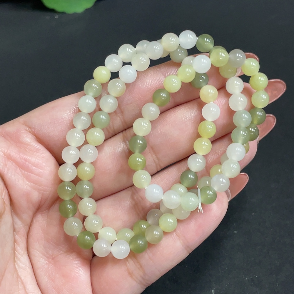 Hetian Jade Bead Necklace, Approx. 5.9 mm, Total Weight Approx. 27.5g