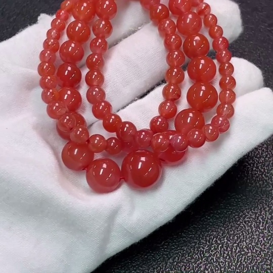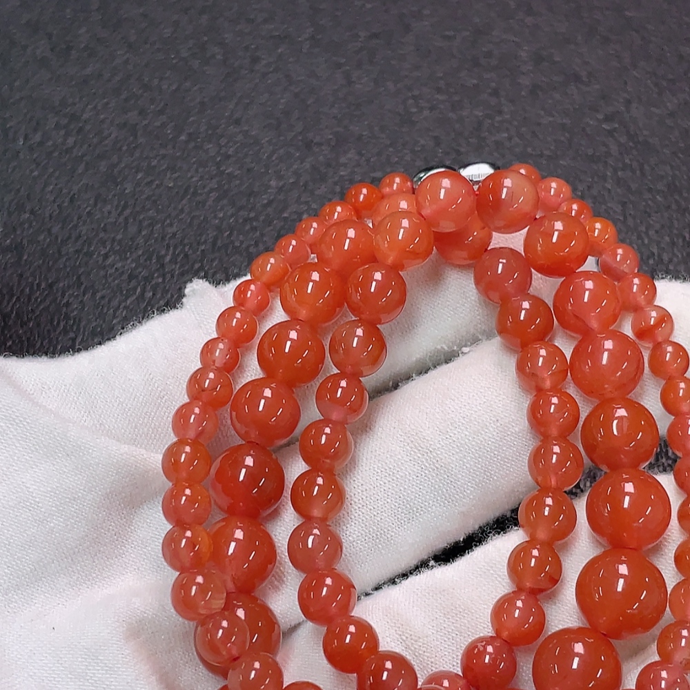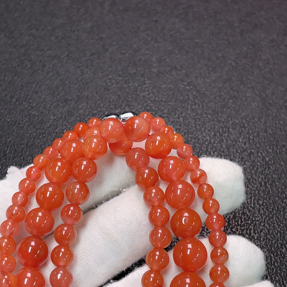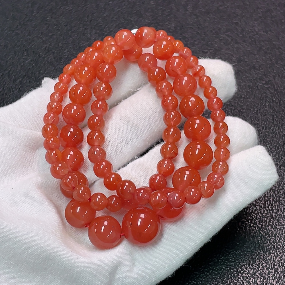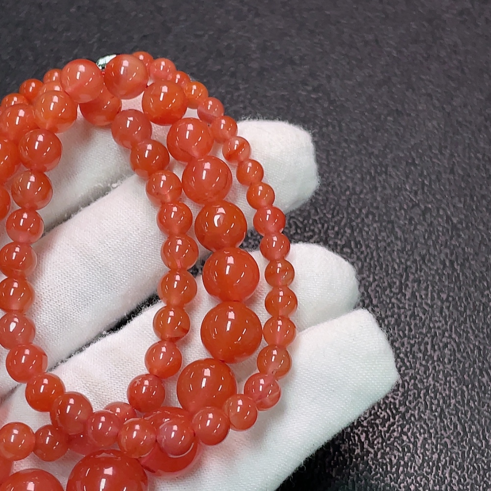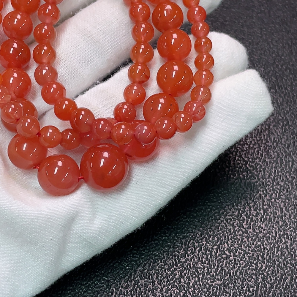 Red Agate Bead Strand with Visible Organic Matter, Non-Gold, Total Weight Approximately 36.88g, Size Range 4.3-12.1mm
