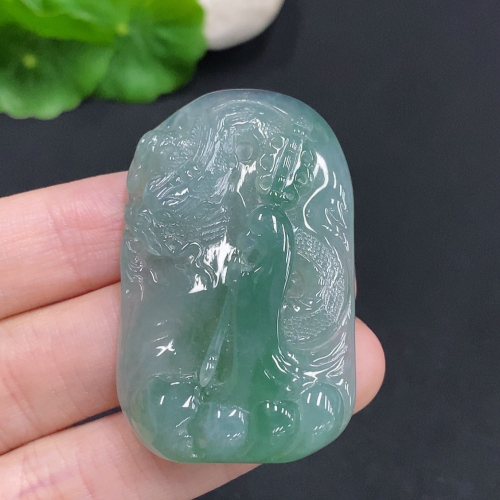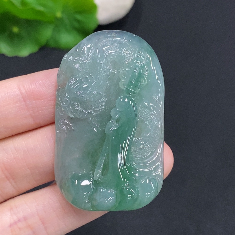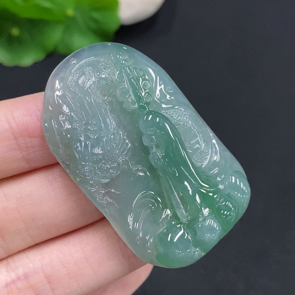 Jadeite Ksitigarbha Bodhisattva Pendant, Total Weight Approx. 23.2g