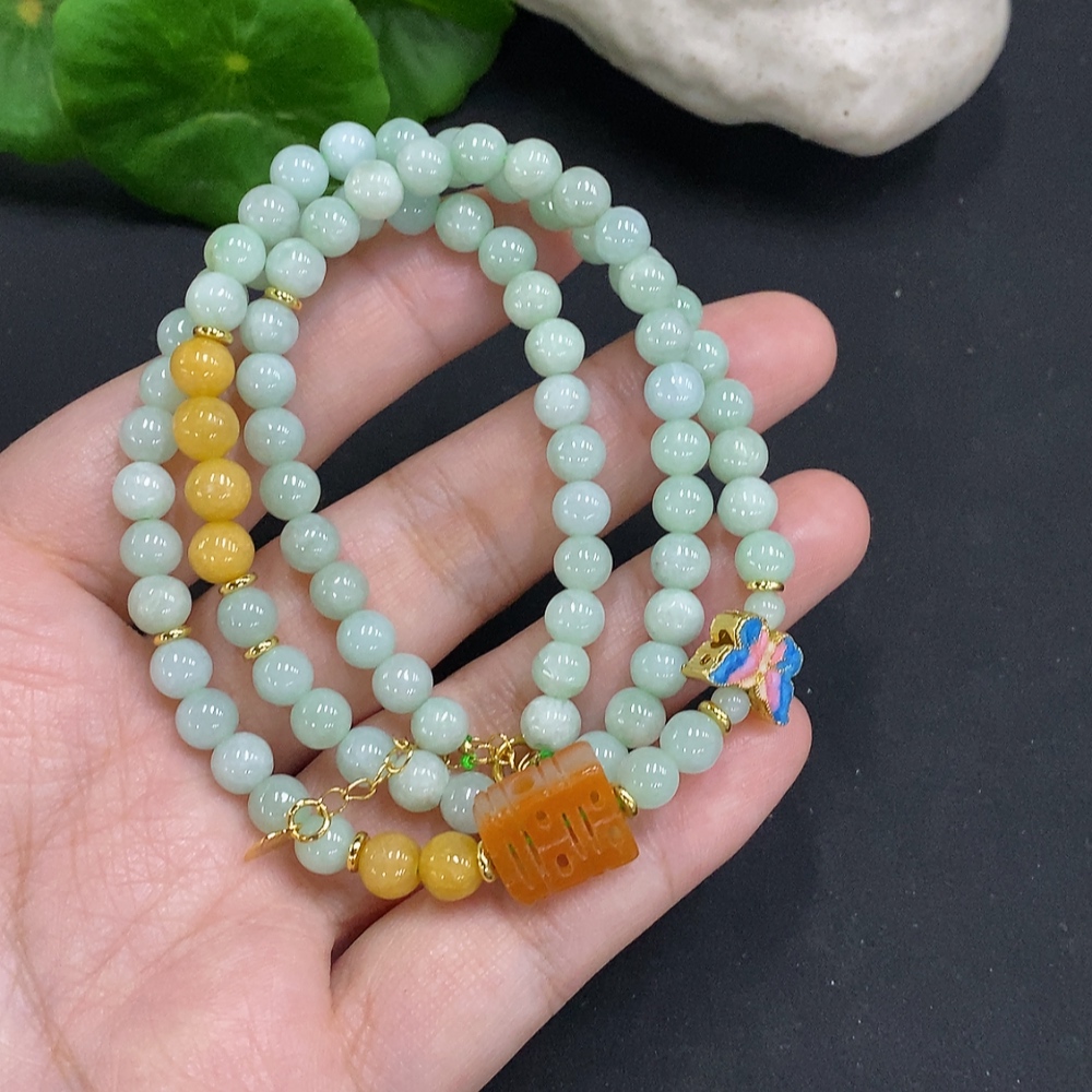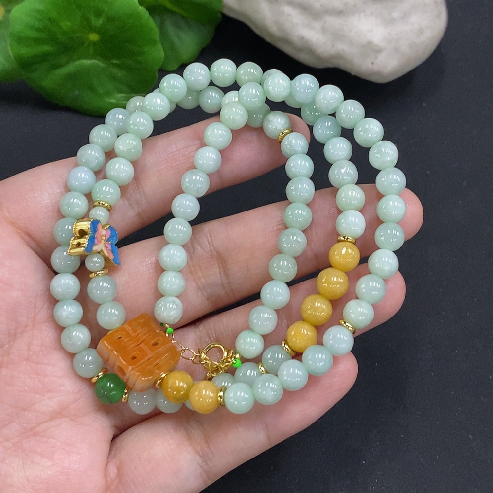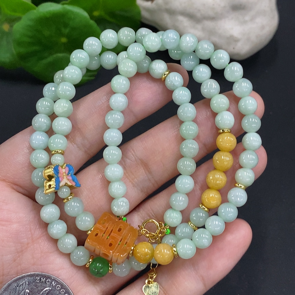 Jadeite bead necklace approx. 5.5mm non-gold 32.4g (accompanying beads non-A)