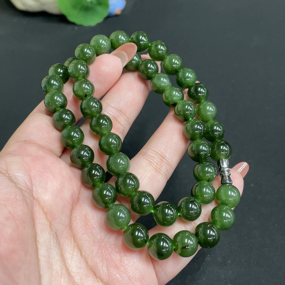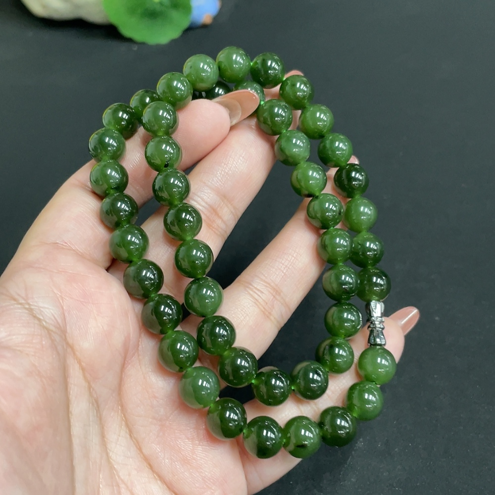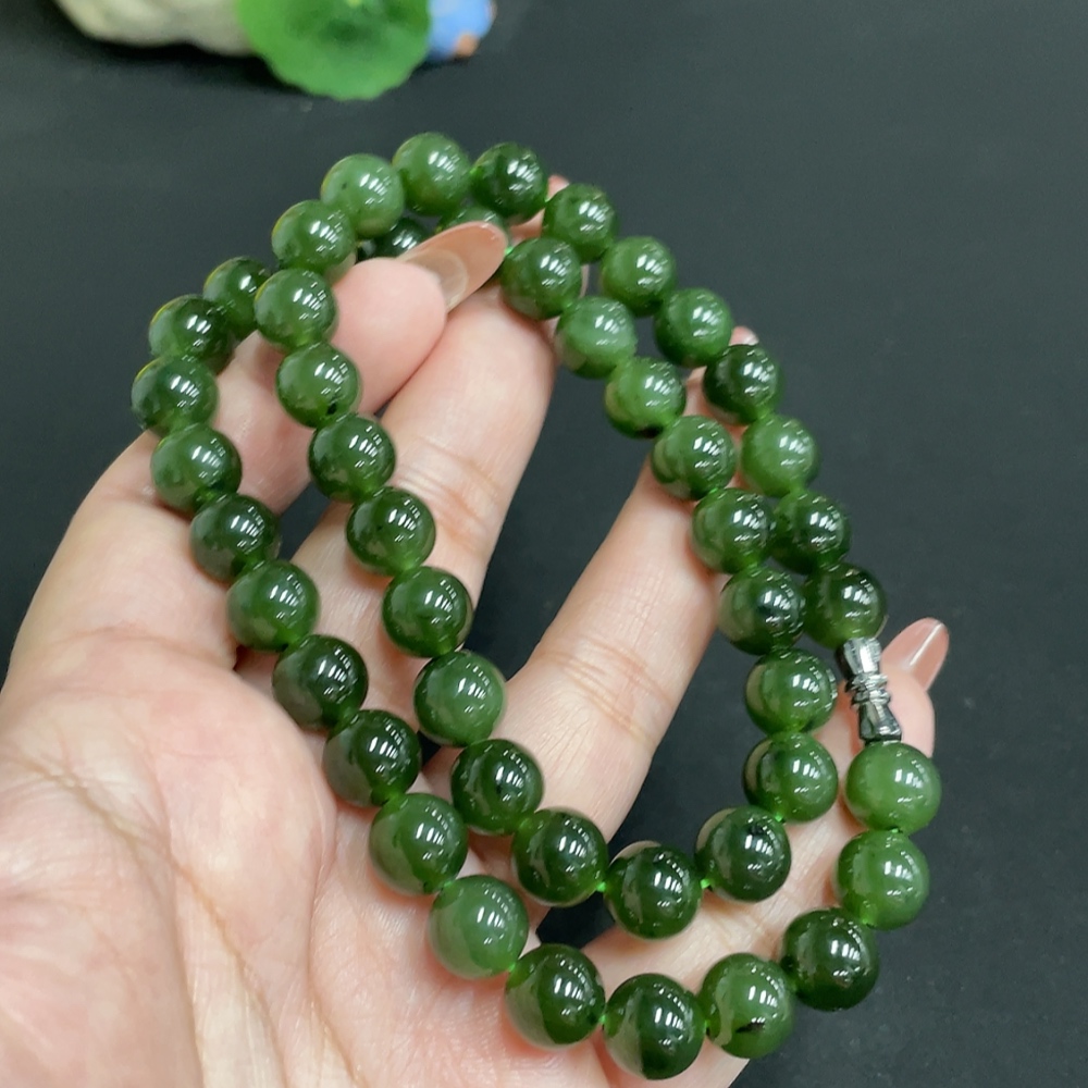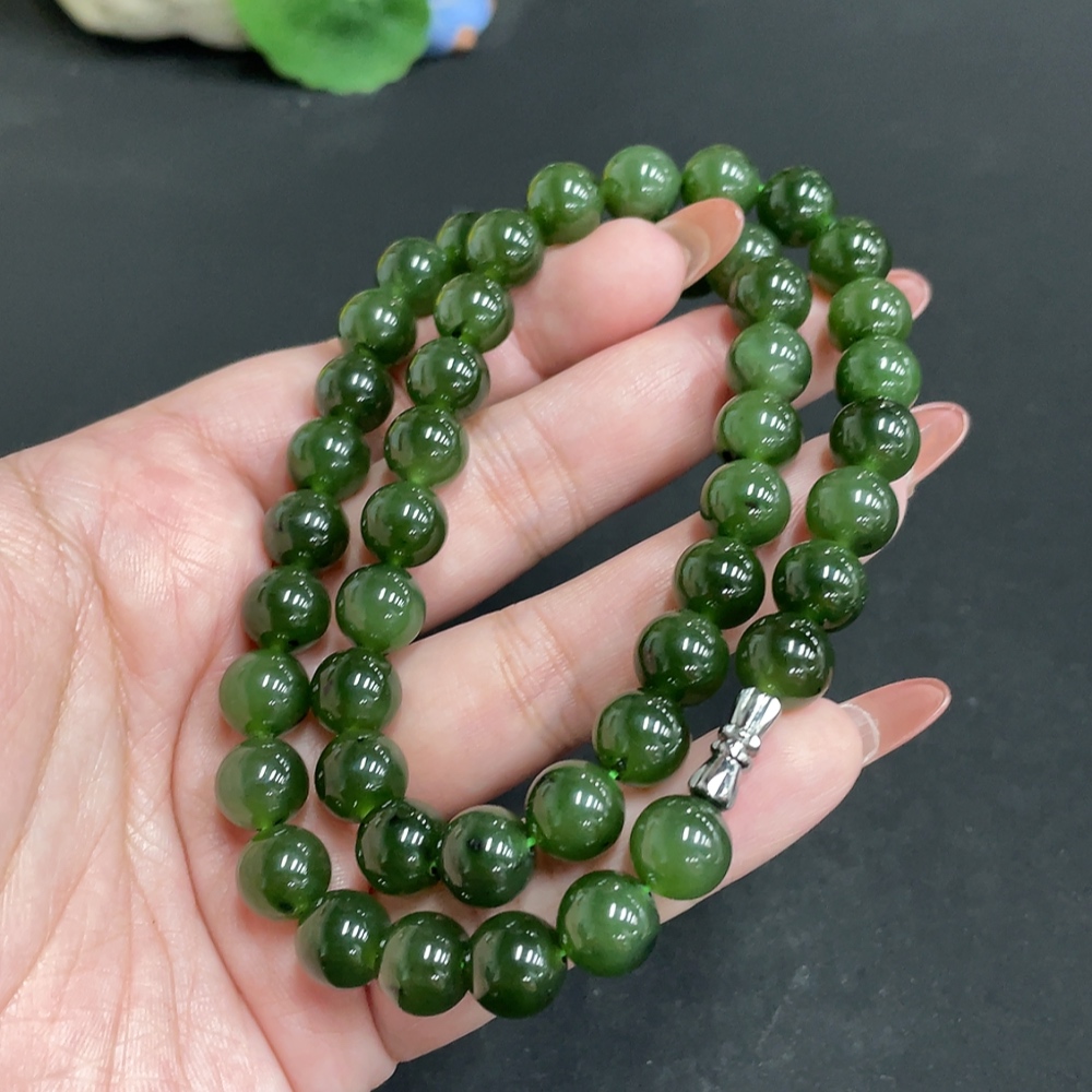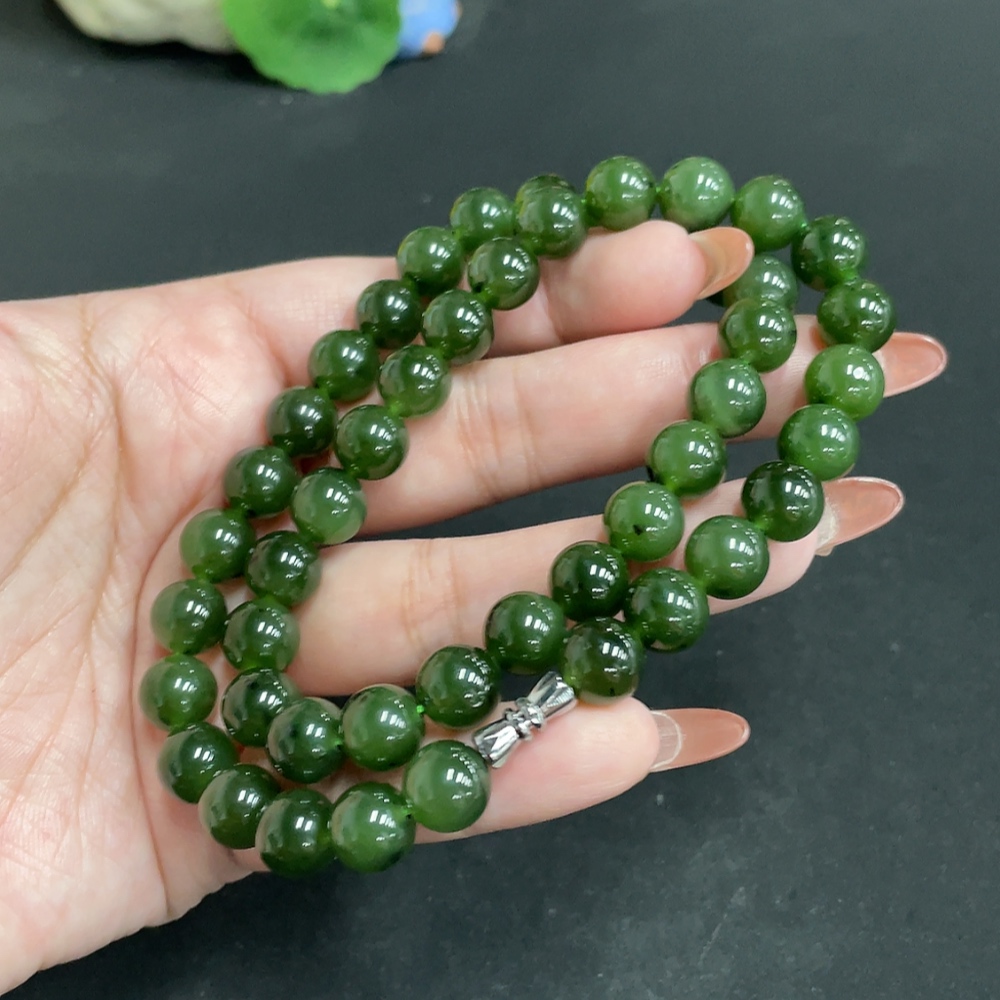 Hetian Jade Bead Necklace Size 9.3mm Approx. Total Weight 66.3g