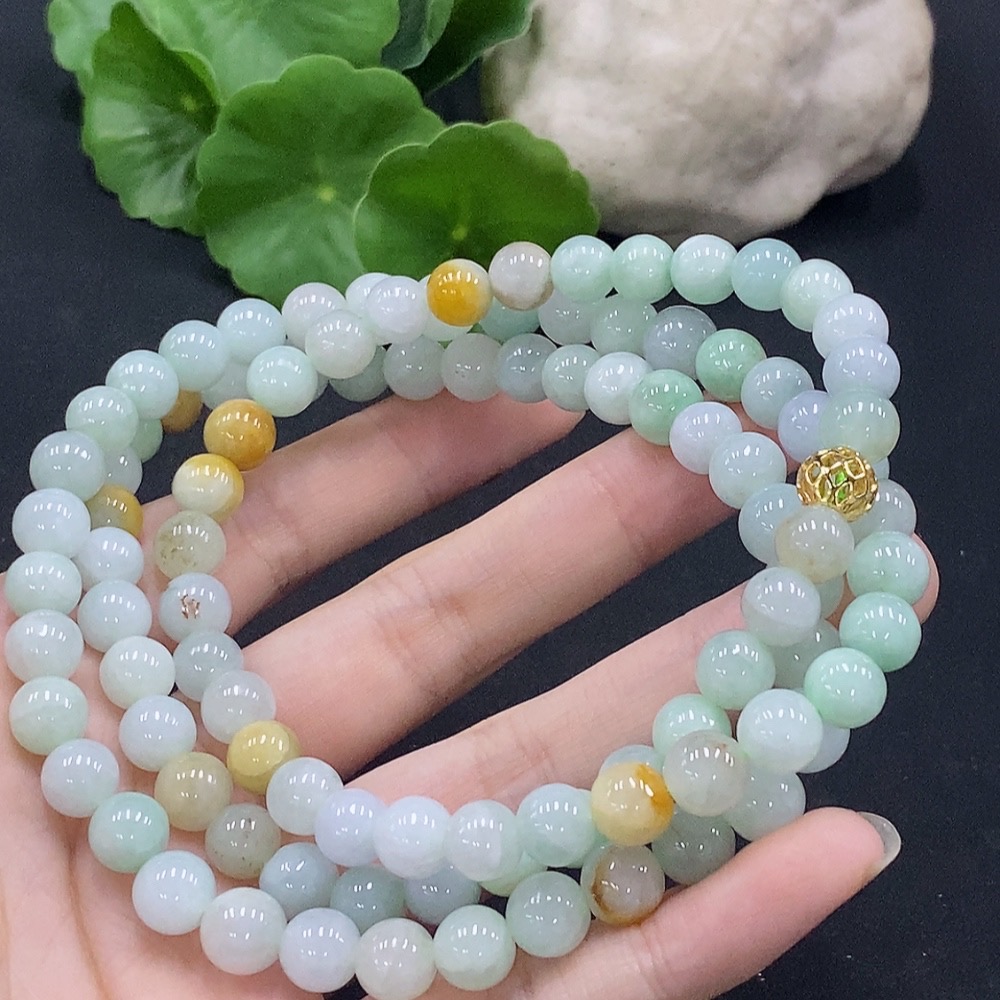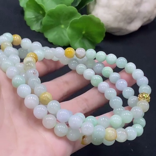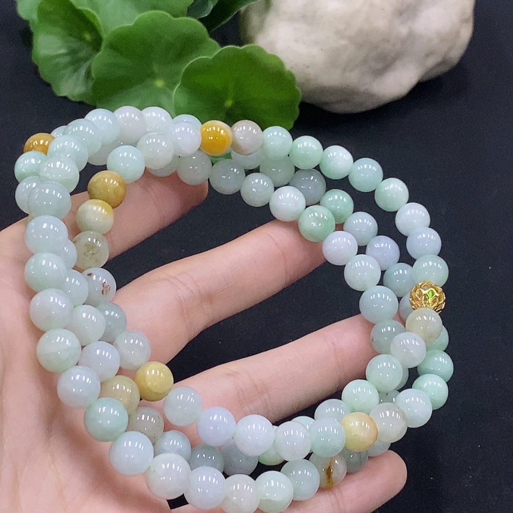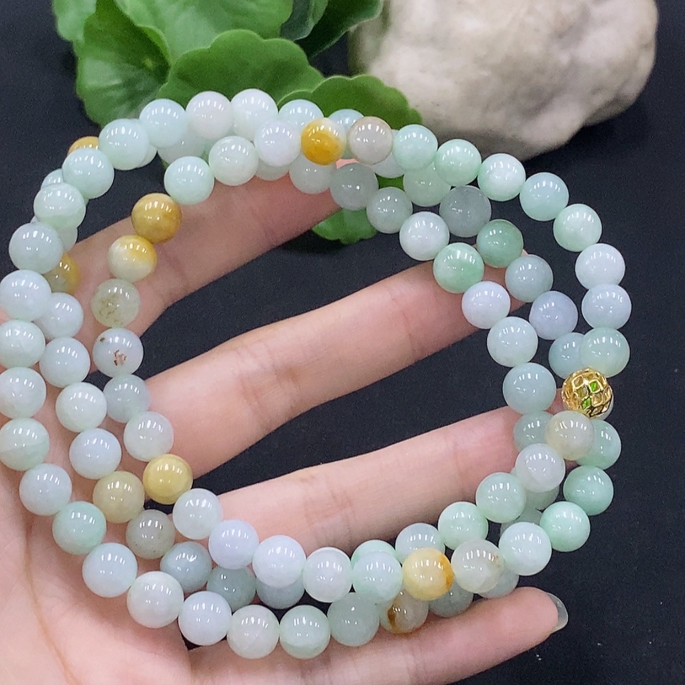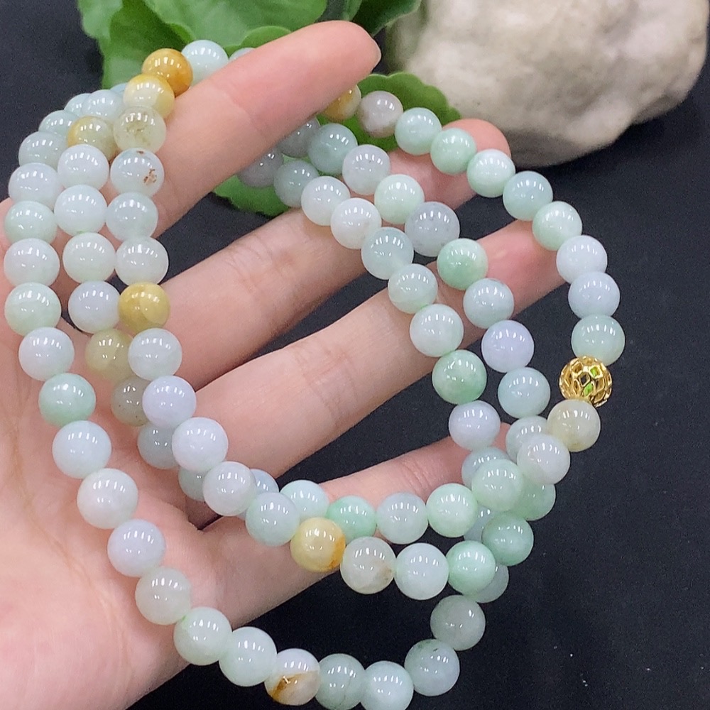Jadeite bead necklace, approx. 8mm, non-gold inlaid, total weight approx. 80.88g