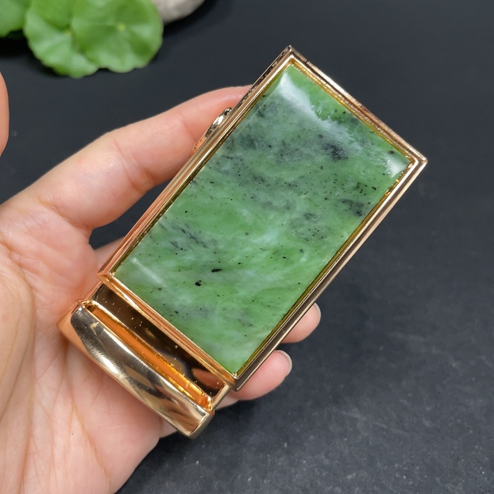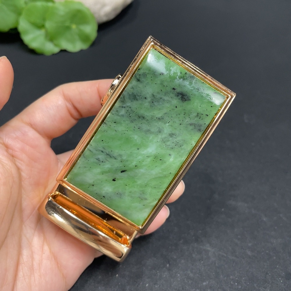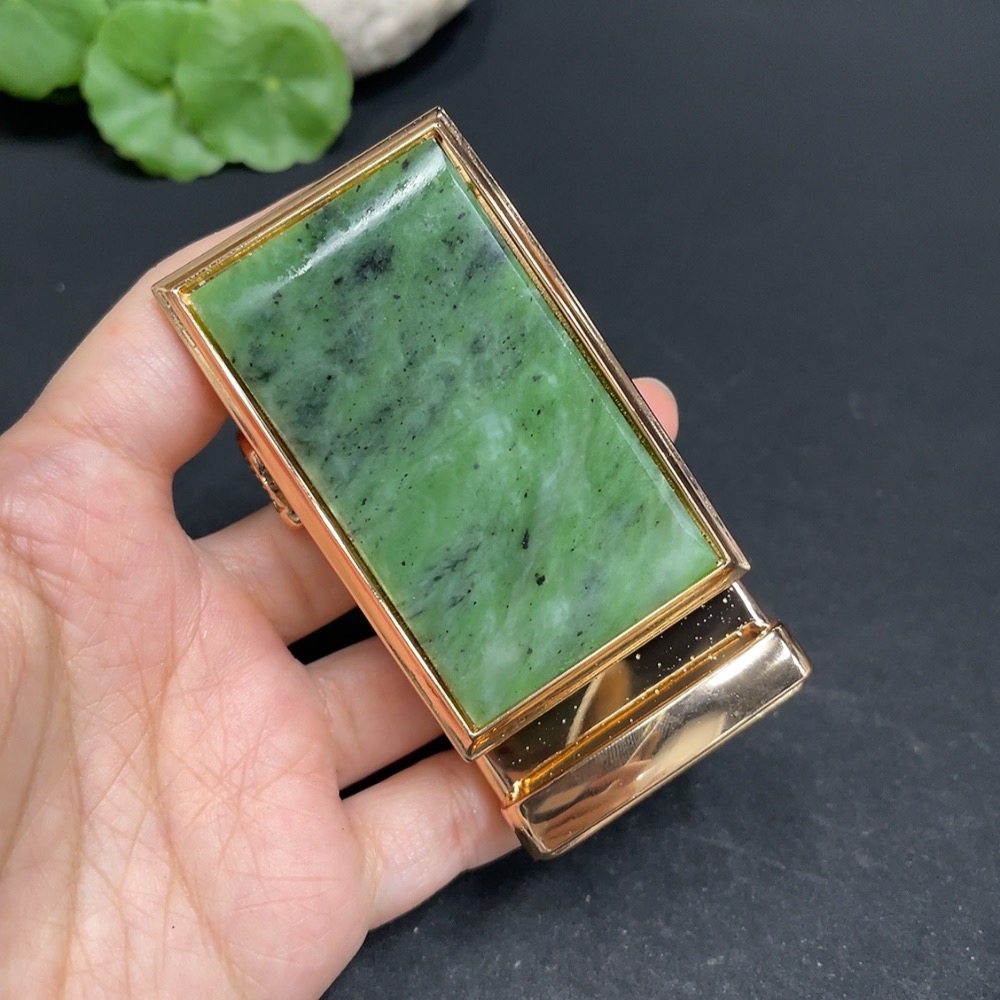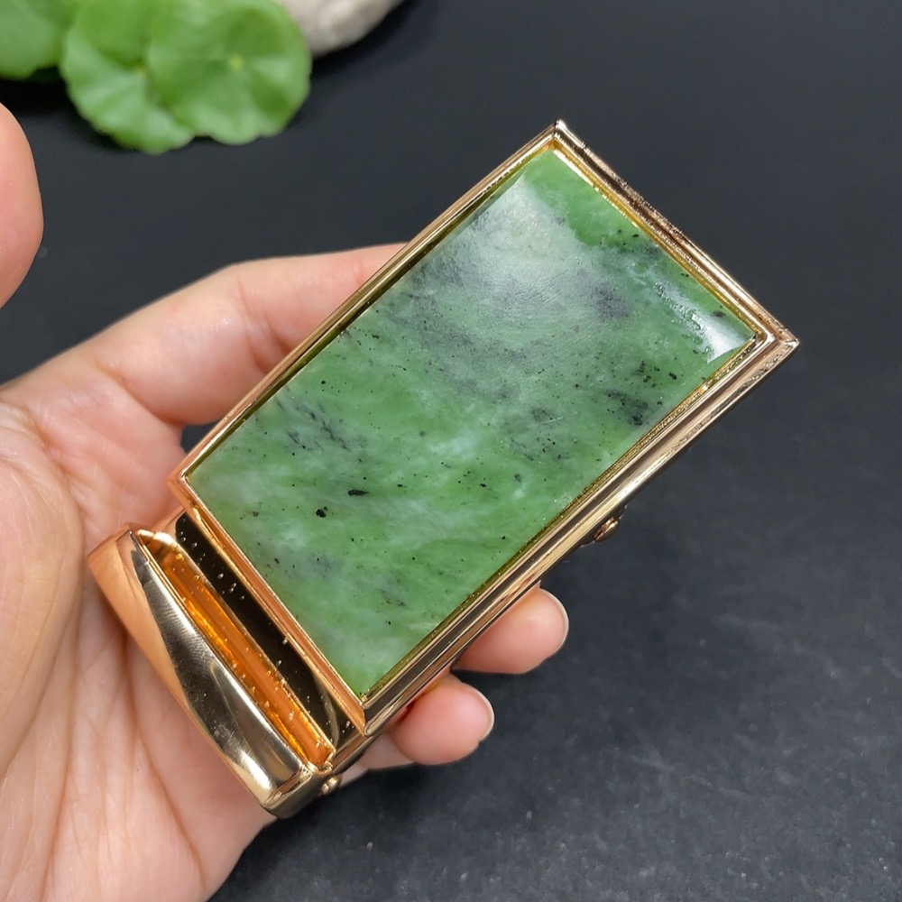 Hetian Jade Inlaid Belt Buckle Non-Gold Total Weight Approx. 113.6g