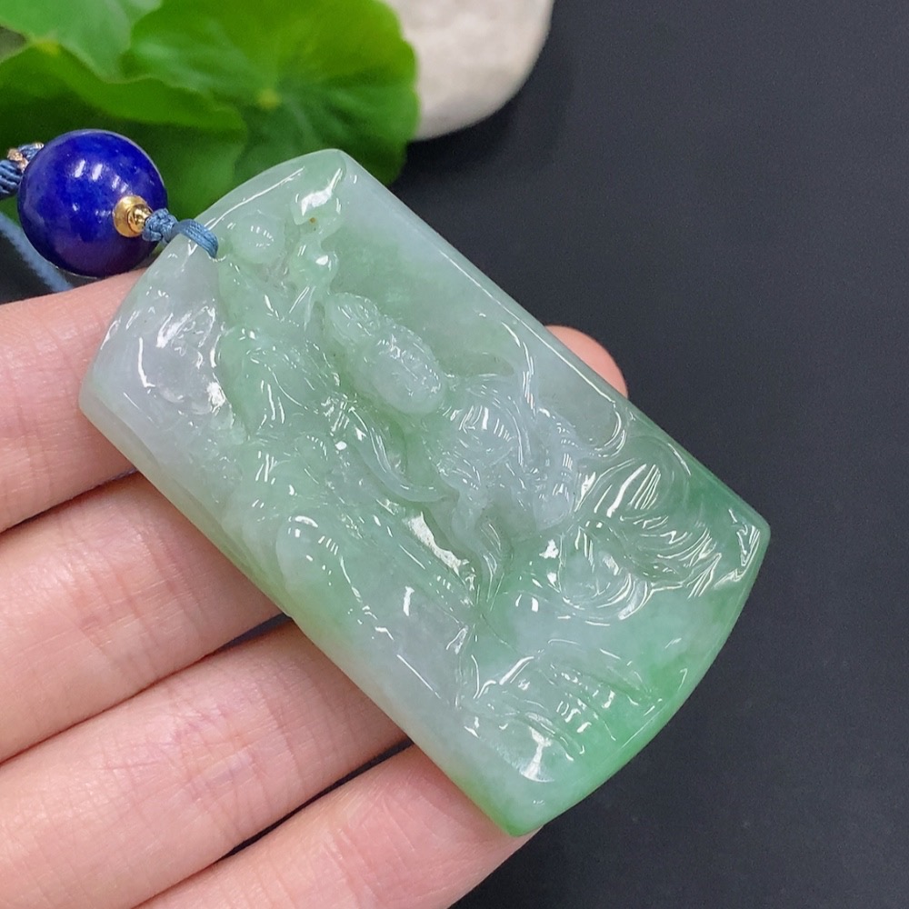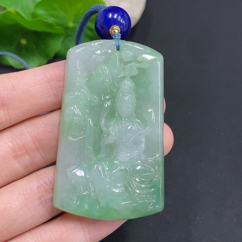 Jadeite Guanyin Pendant Total weight approx. 46.5g (including rope weight) with non-jadeite beads