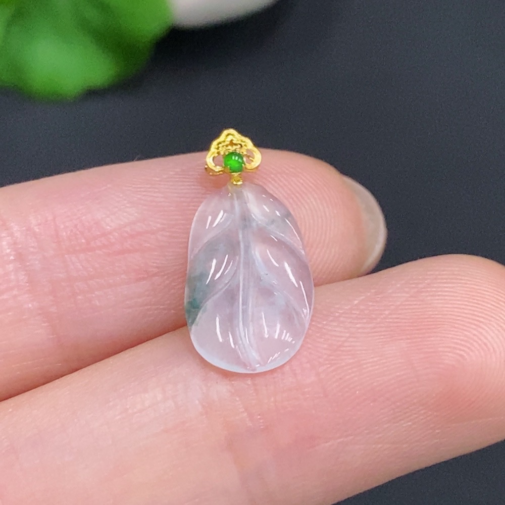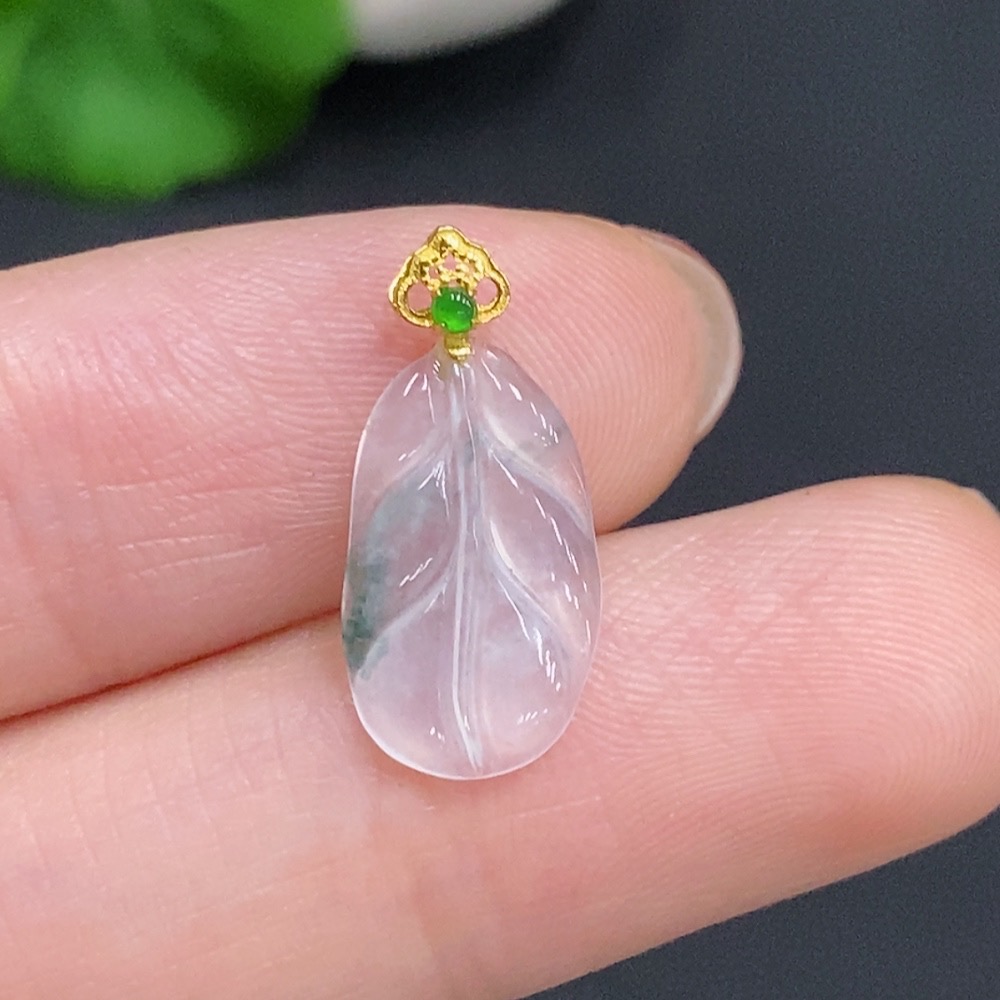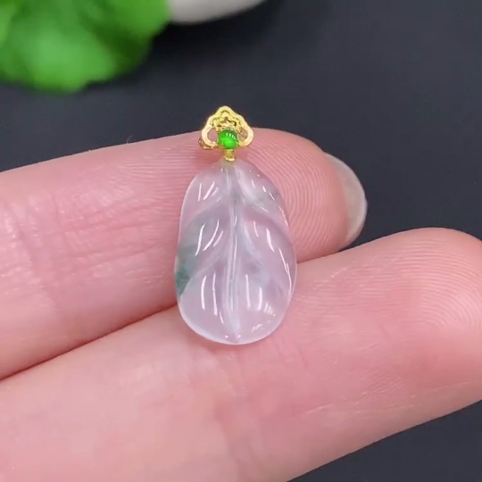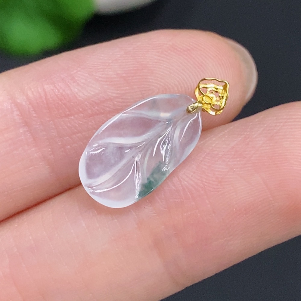 Jadeite Leaf Pendant with 18k Gold Clasp, Total Weight Approx. 0.3g