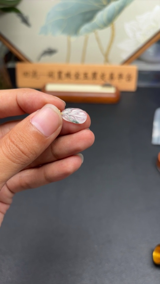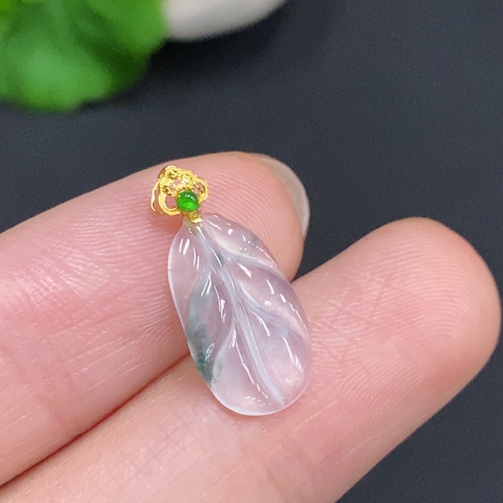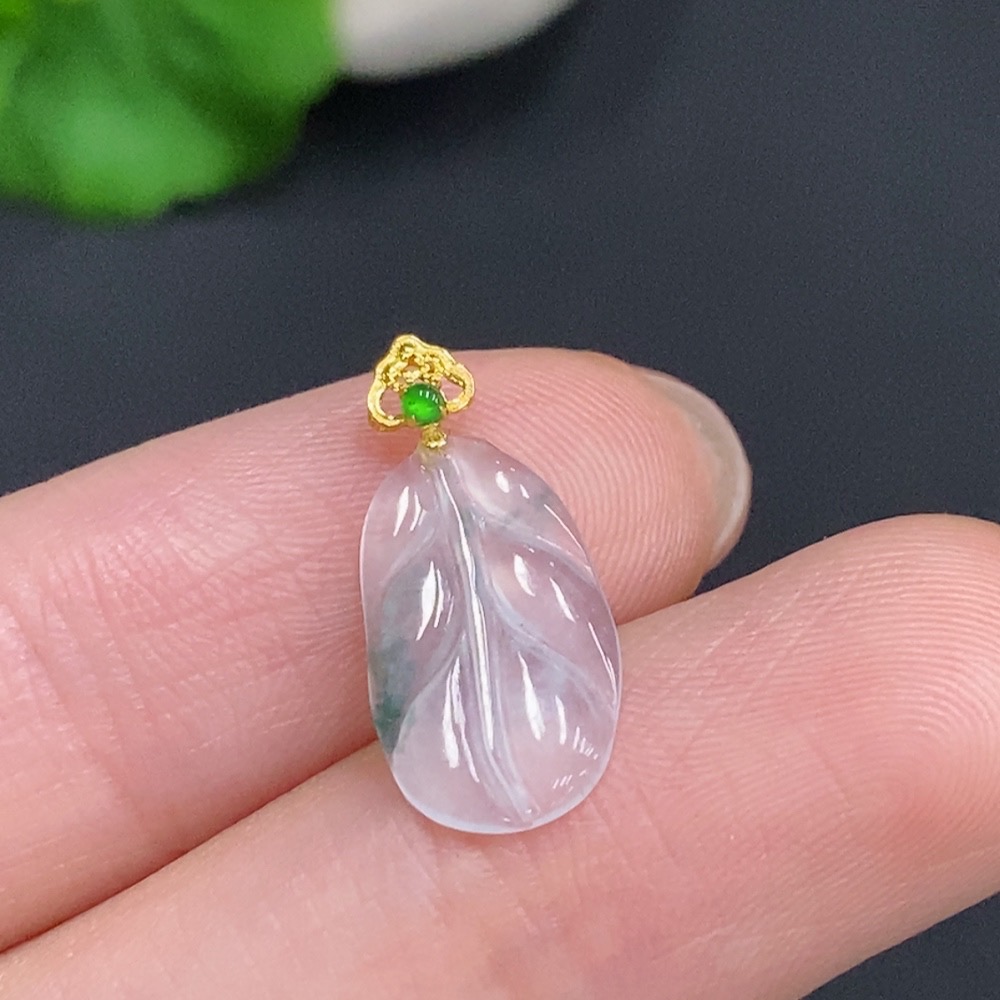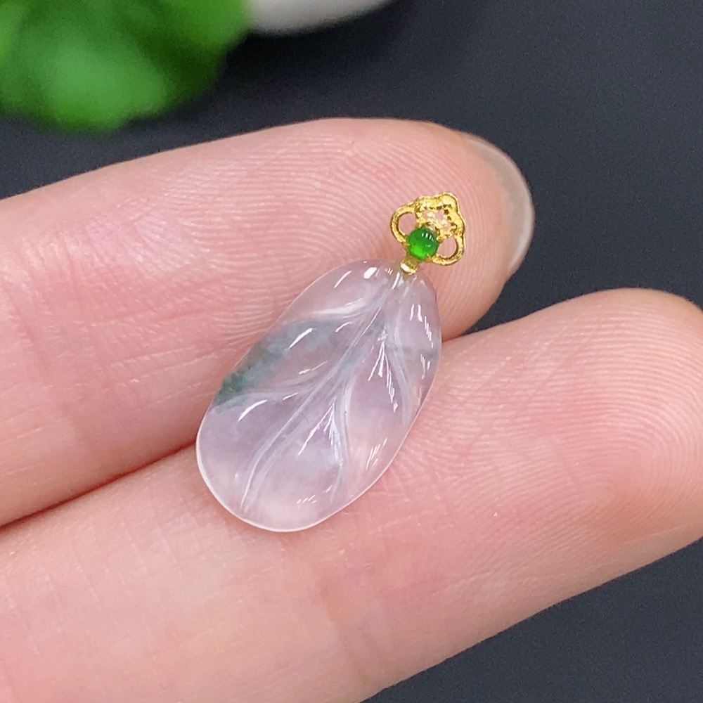 Jadeite Leaf Pendant with 18k Gold Clasp, Total Weight Approx. 0.3g