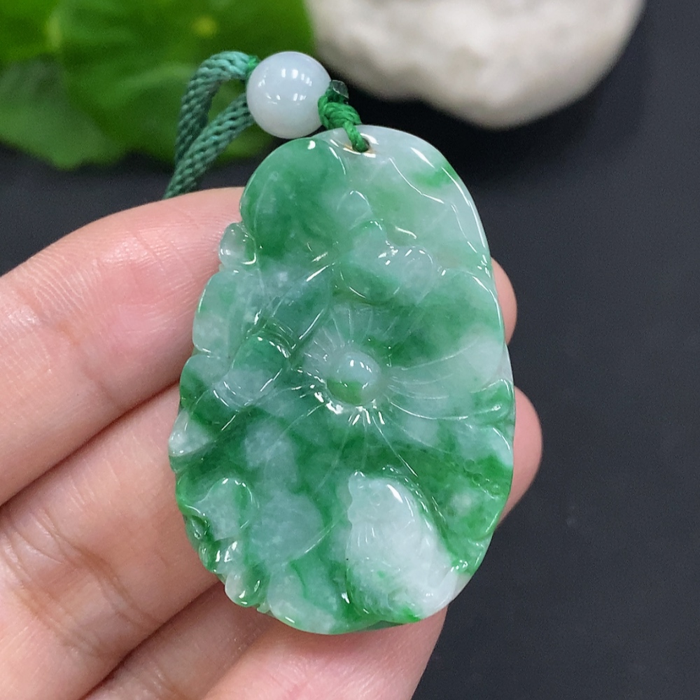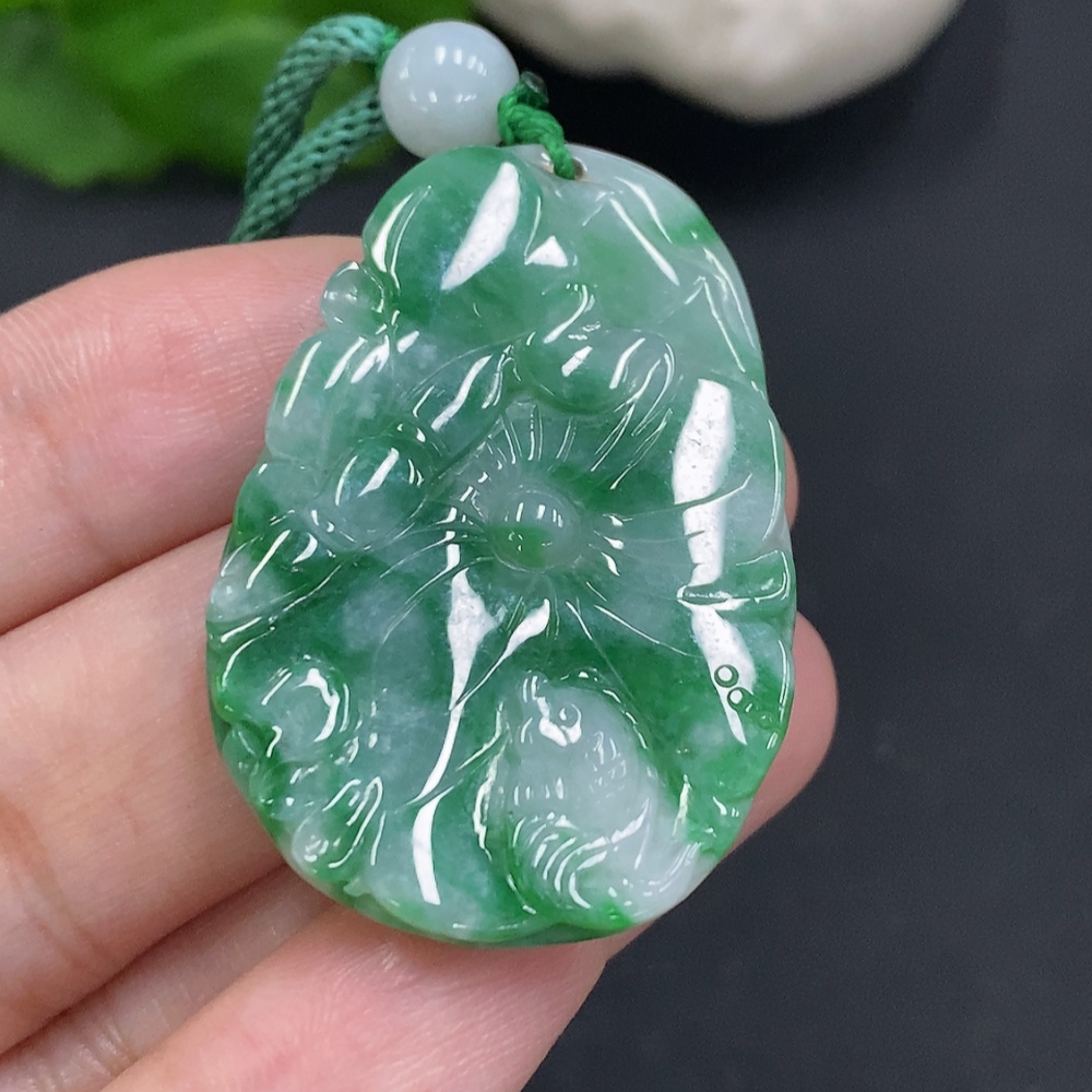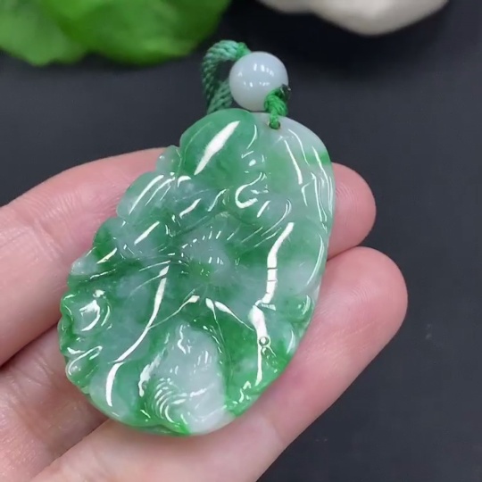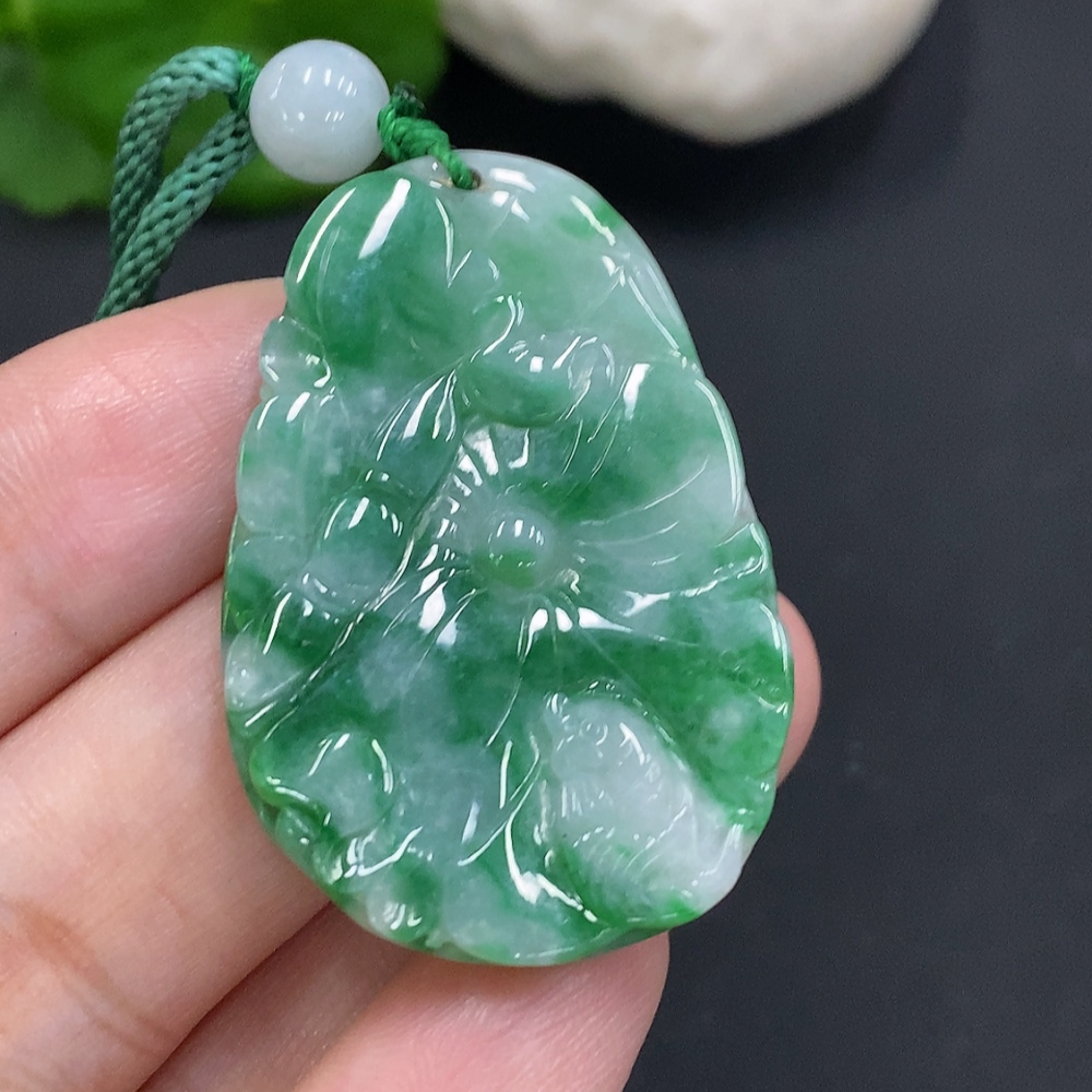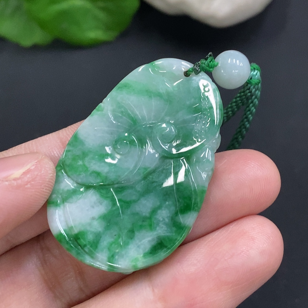 Jadeite Auspicious Abundance Pendant Total Weight Including String Approx. 12.3g
