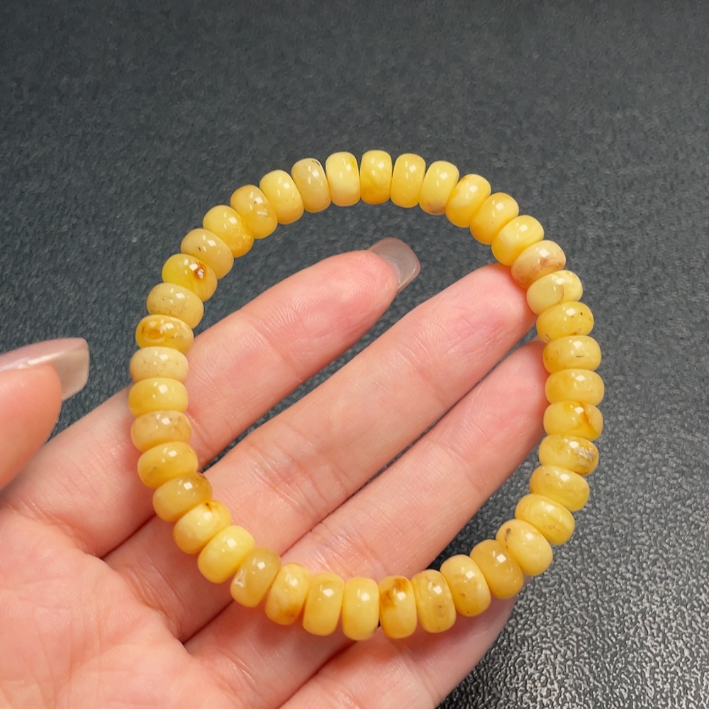 Amber Beeswax Bracelet, Total Weight Approx. 9.12g, Size About 8.3mm