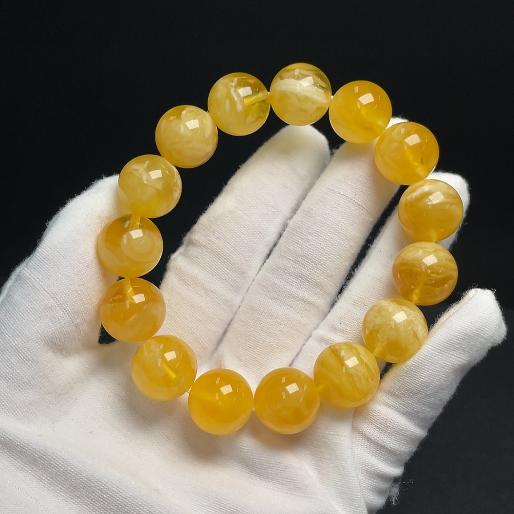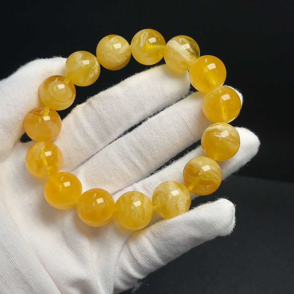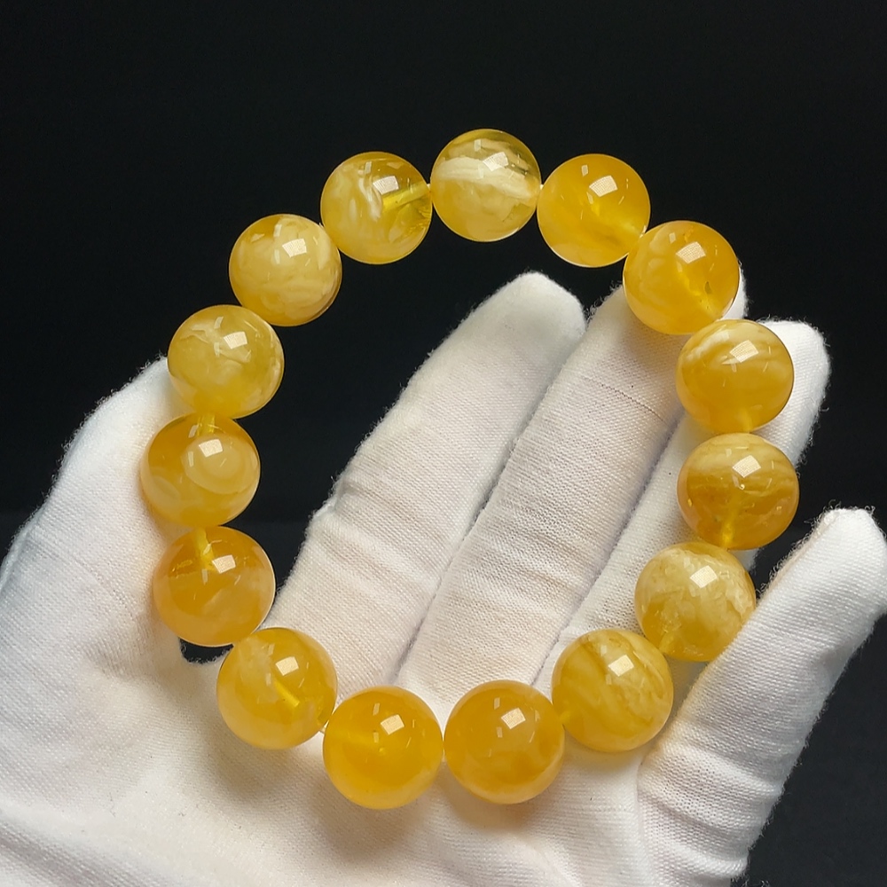 Amber and Beeswax Bracelet, Total Weight Approx. 27.21g, Size About 14.9mm