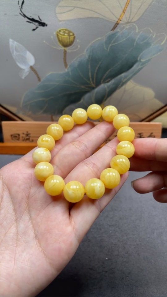 Amber Beeswax Bracelet, Total Weight Approx. 17.61g, Size About 12.5mm