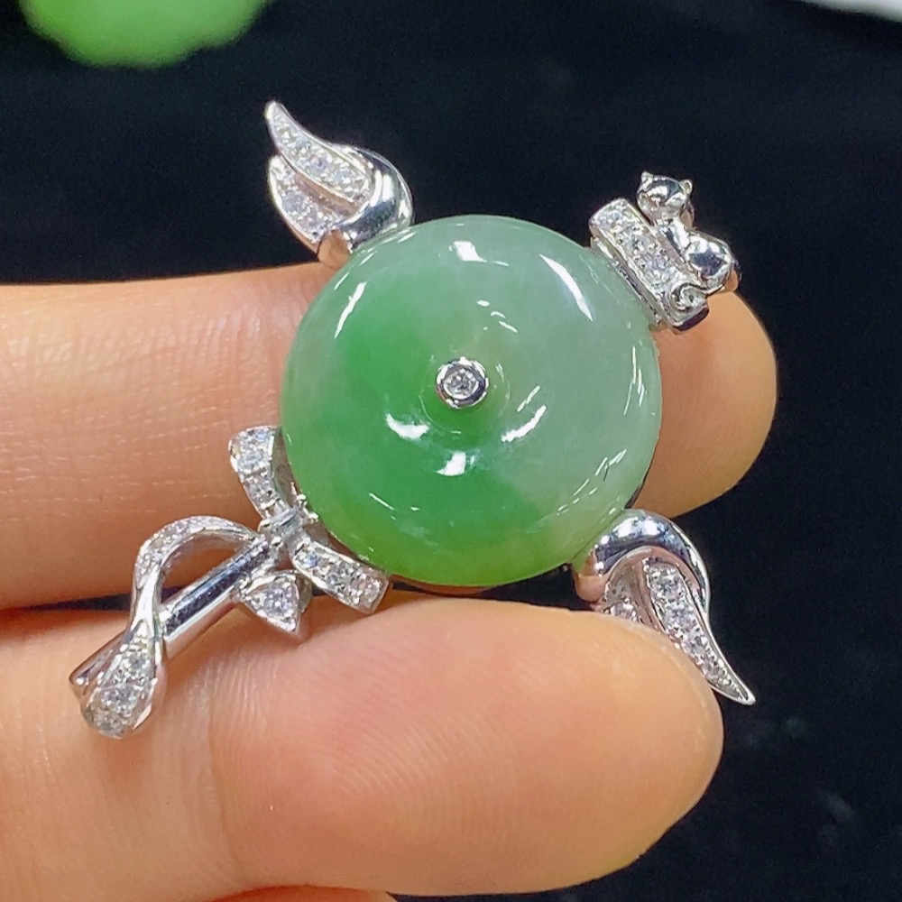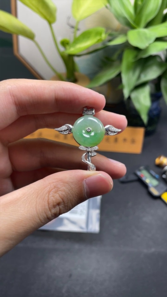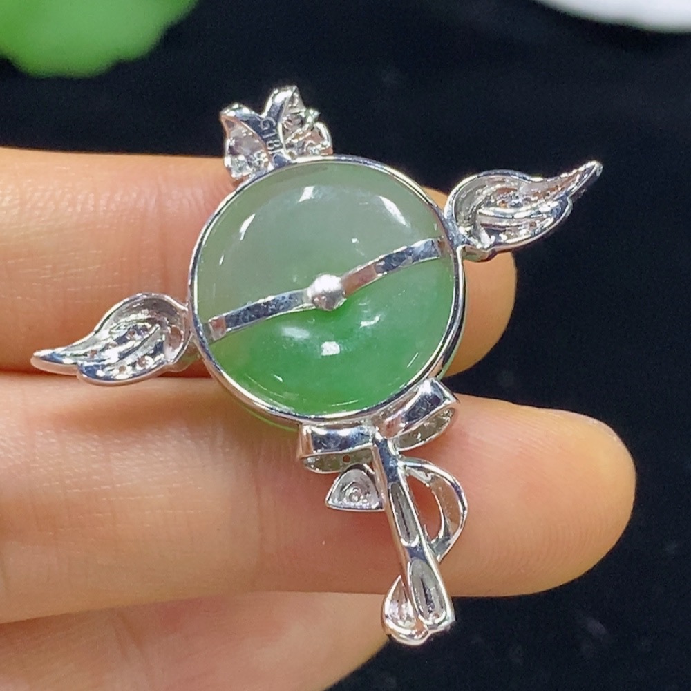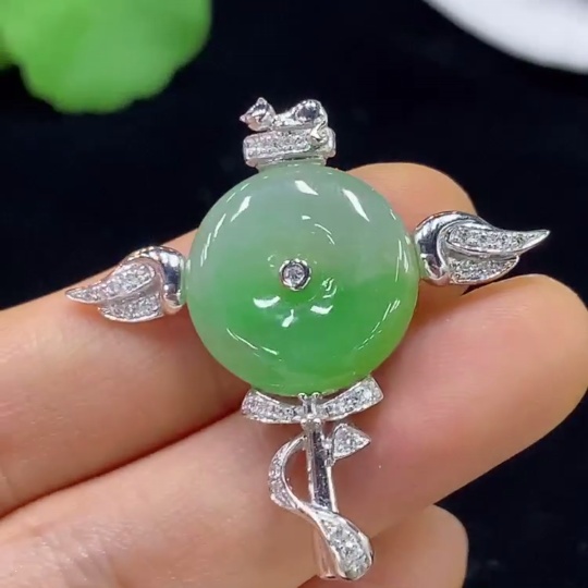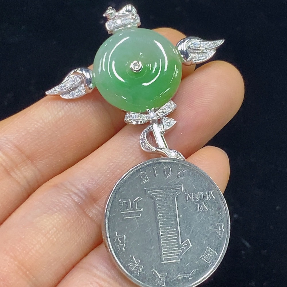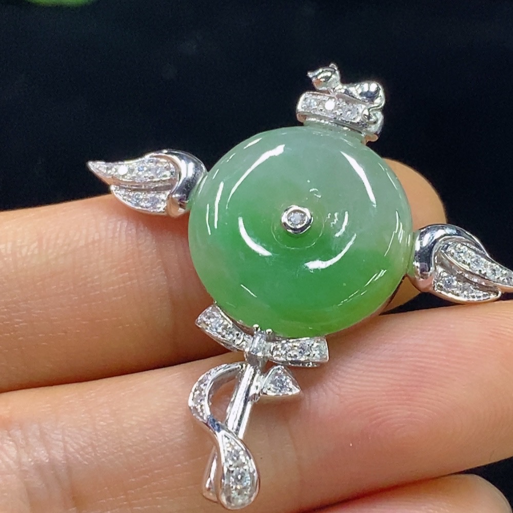 Jadeite Peace Knot Inlaid Pendant with 18k Gold and Diamond Accents, Total Weight Approximately 7.08g