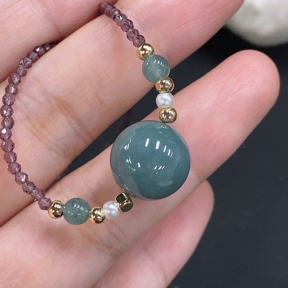Jadeite Single Bead Pendant Non-Gold Inlaid Total Weight Approx. 6.6g (Including String) Size Approx. 12.6mm With Non-Jadeite Chain