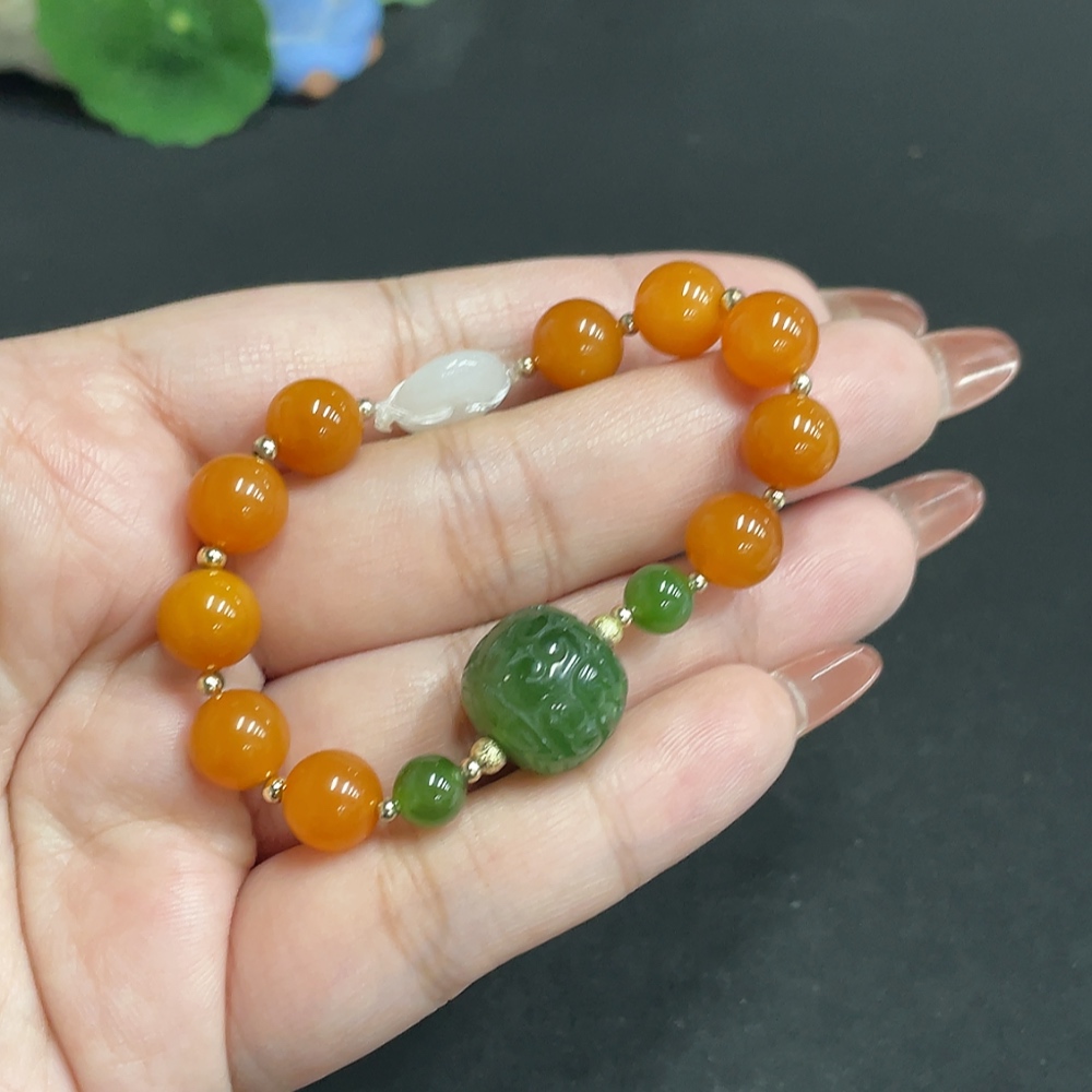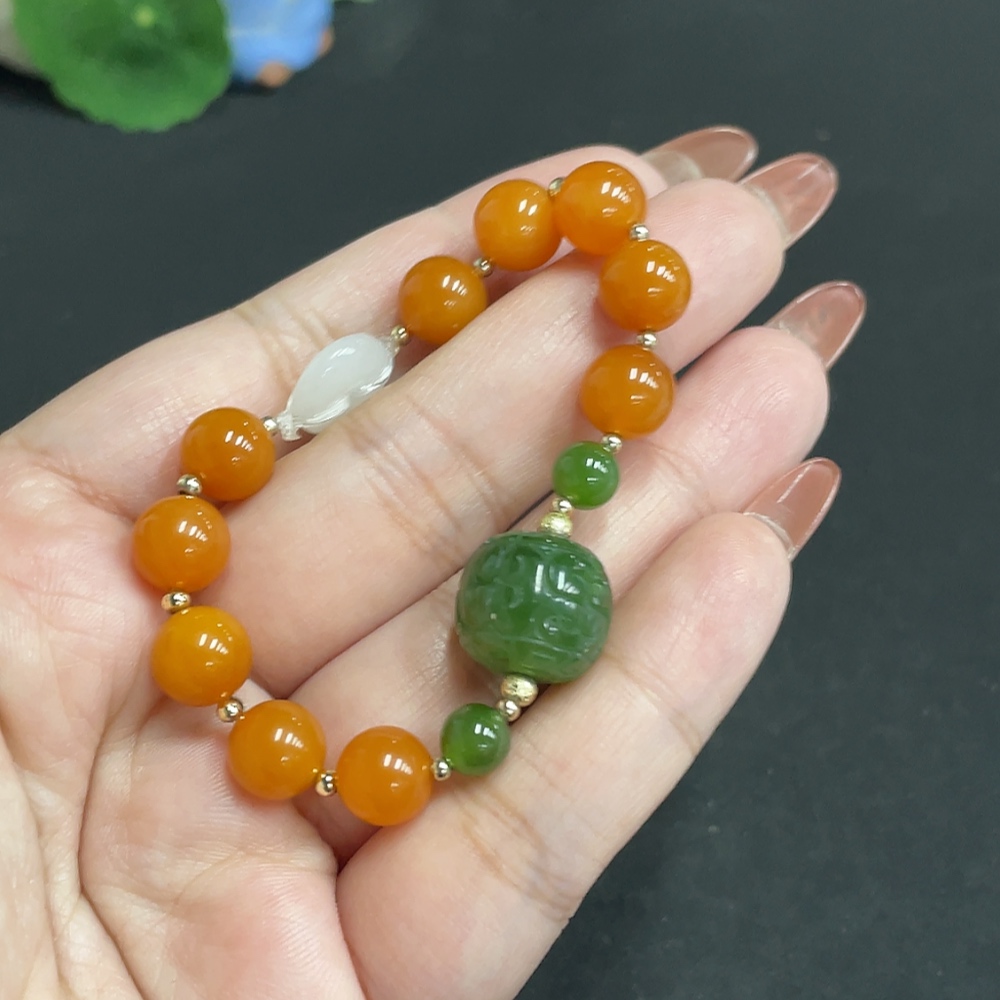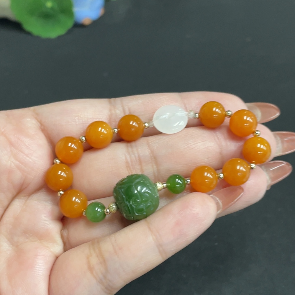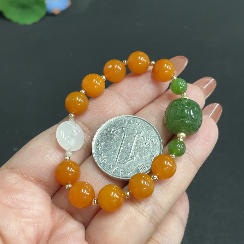 Yellow Dragon Jade Bead Bracelet, Size: Approx. 8.5 mm, Total Weight: Approx. 14.9g, Non-Yellow Dragon Jade Beads, Non-Gold