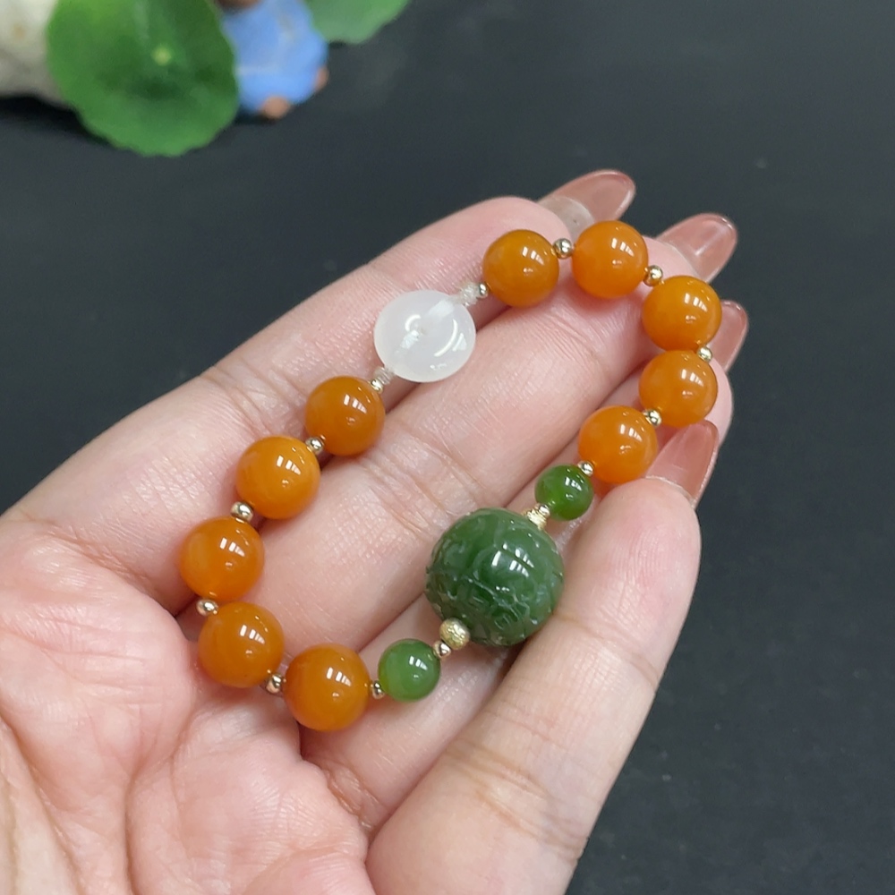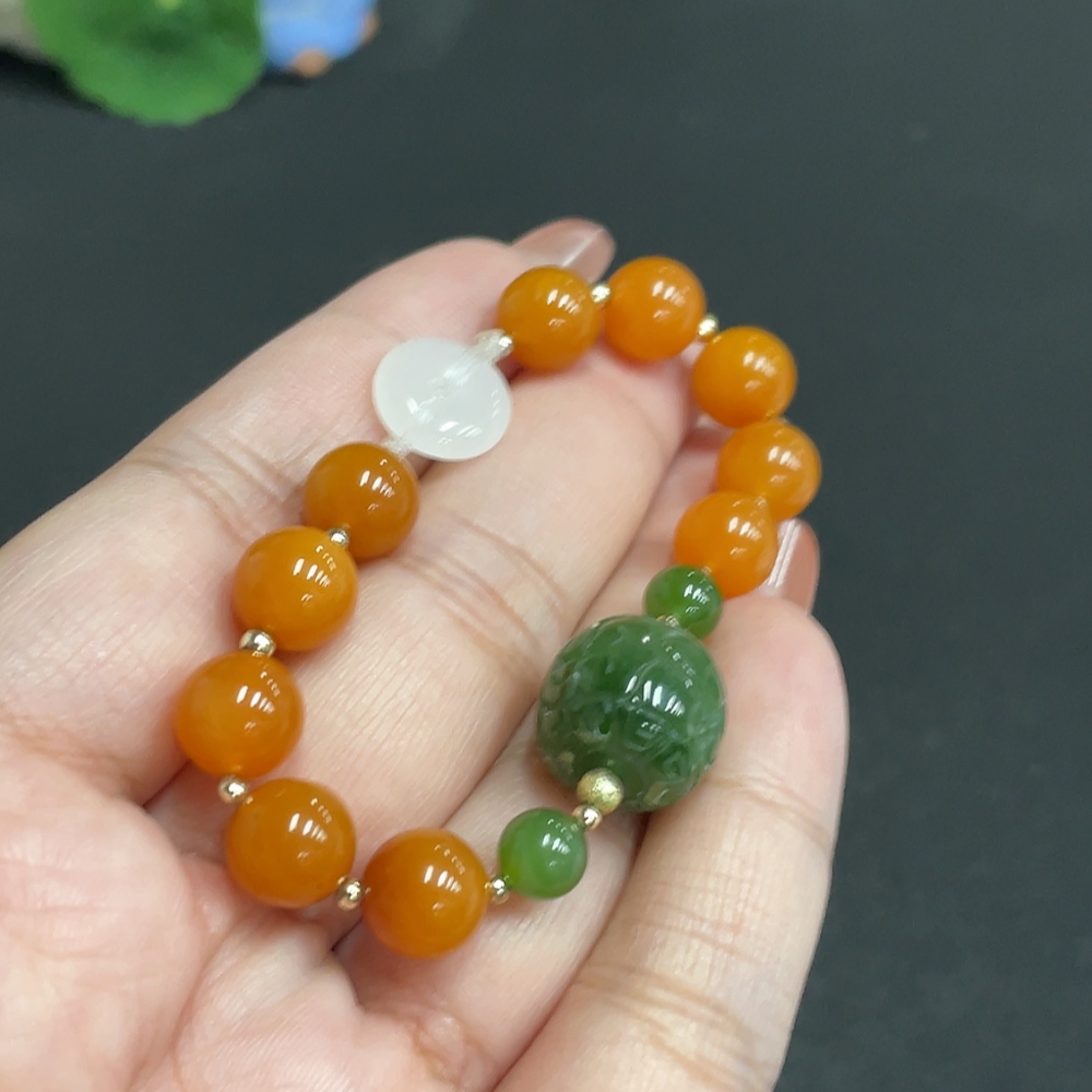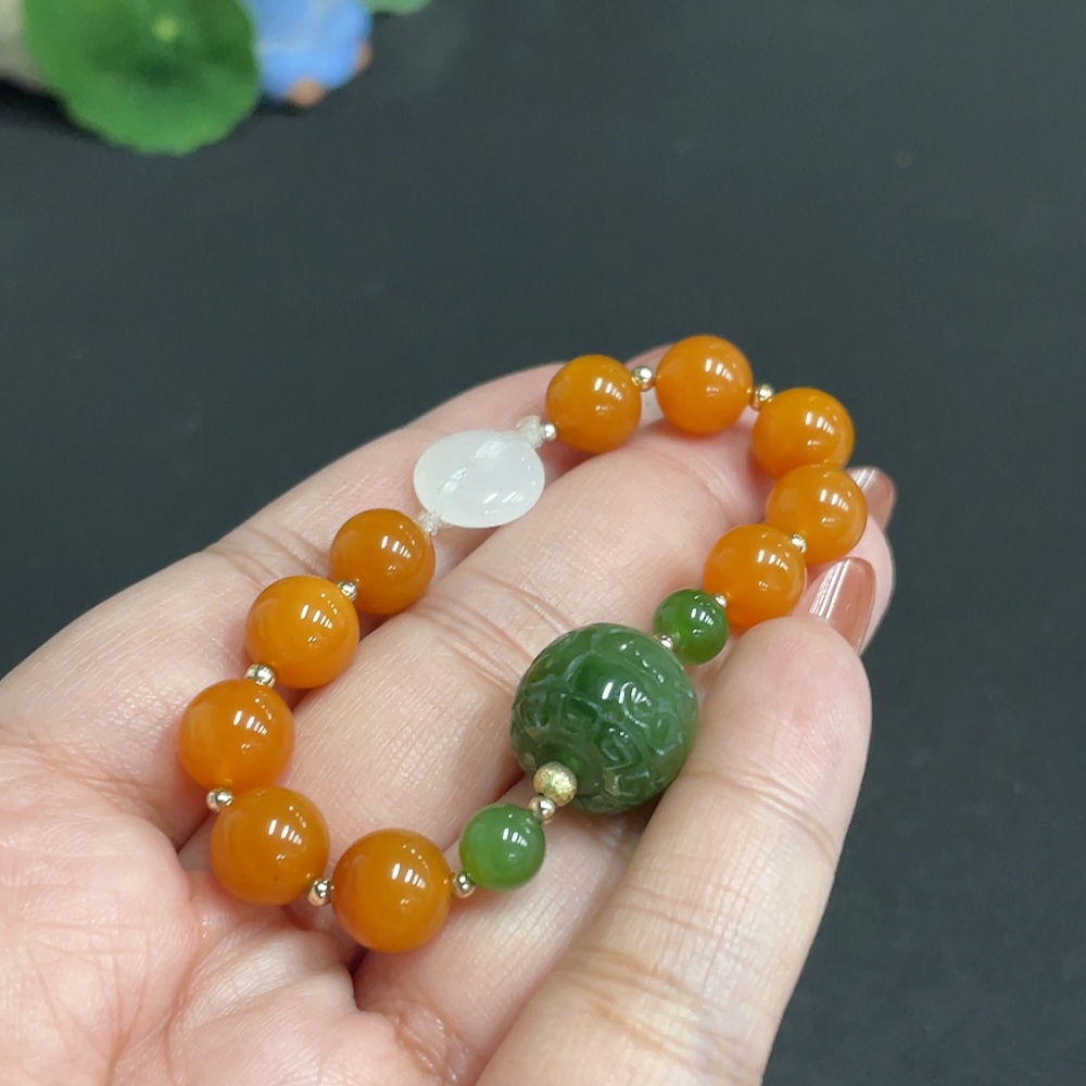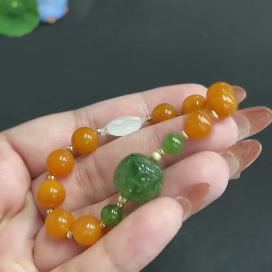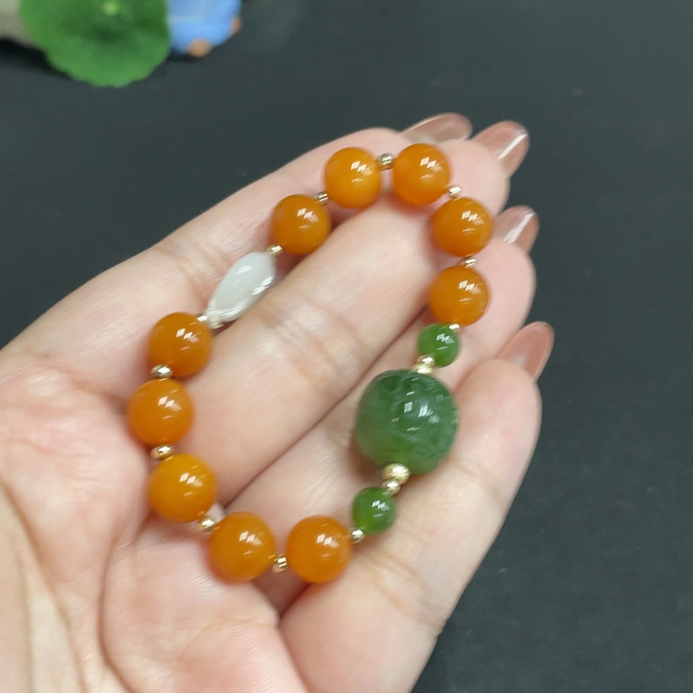 Yellow Dragon Jade Bead Bracelet, Size: Approx. 8.5 mm, Total Weight: Approx. 14.9g, Non-Yellow Dragon Jade Beads, Non-Gold