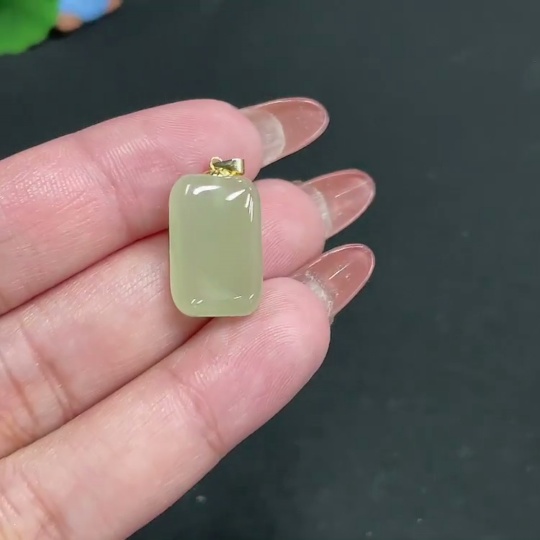 Hetian Jade Inlaid Pendant Plain Pendant 18k Total Weight Approx. 2.6g