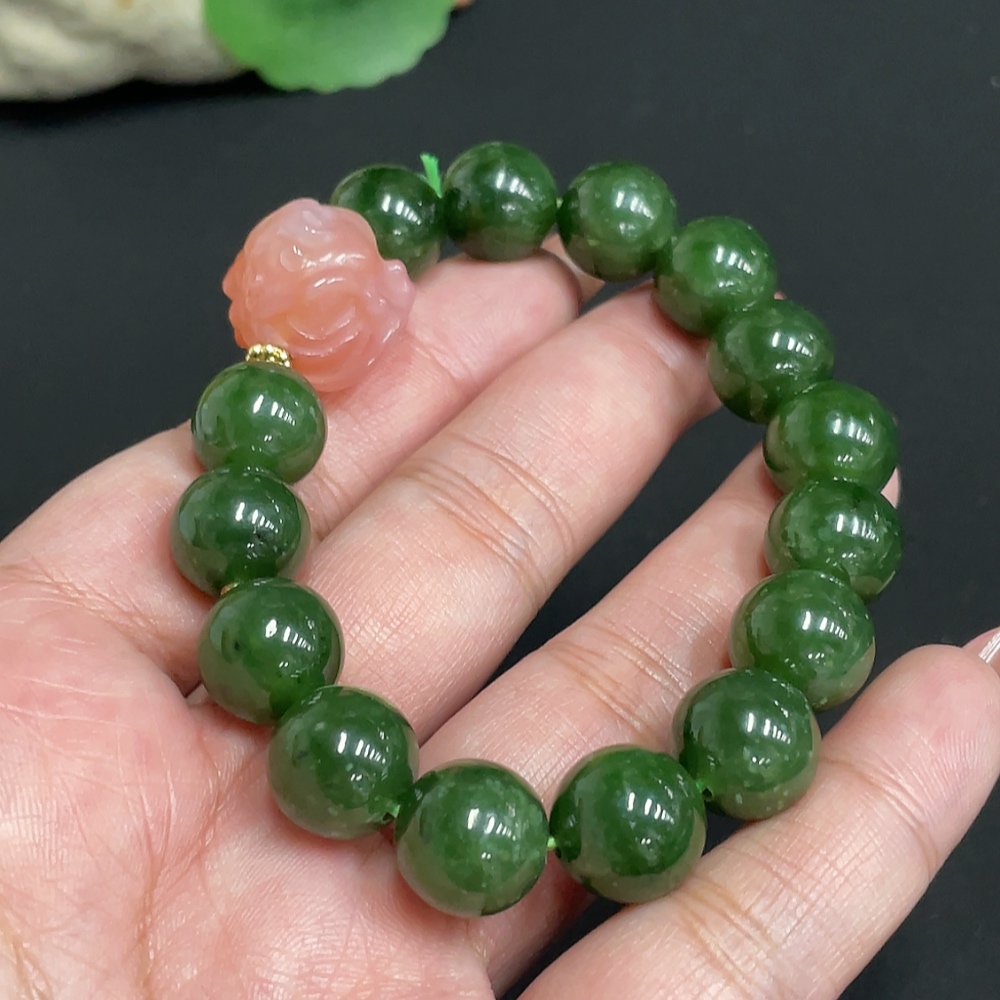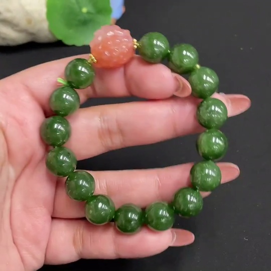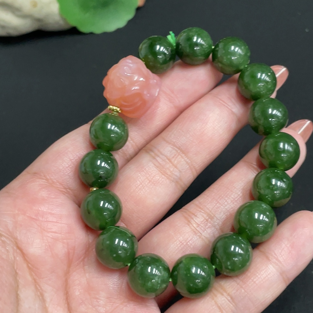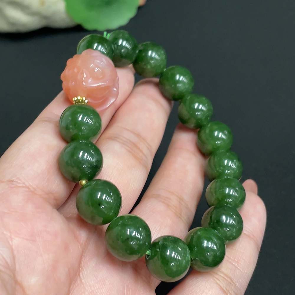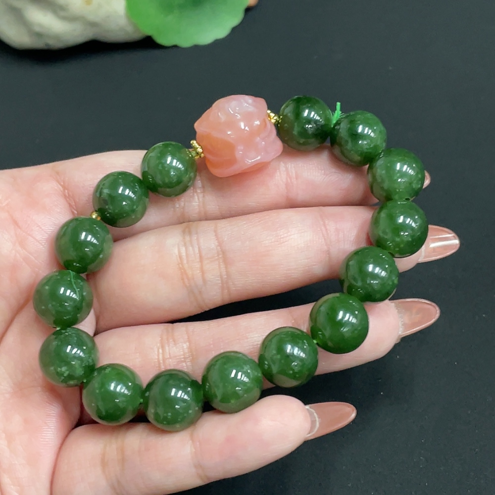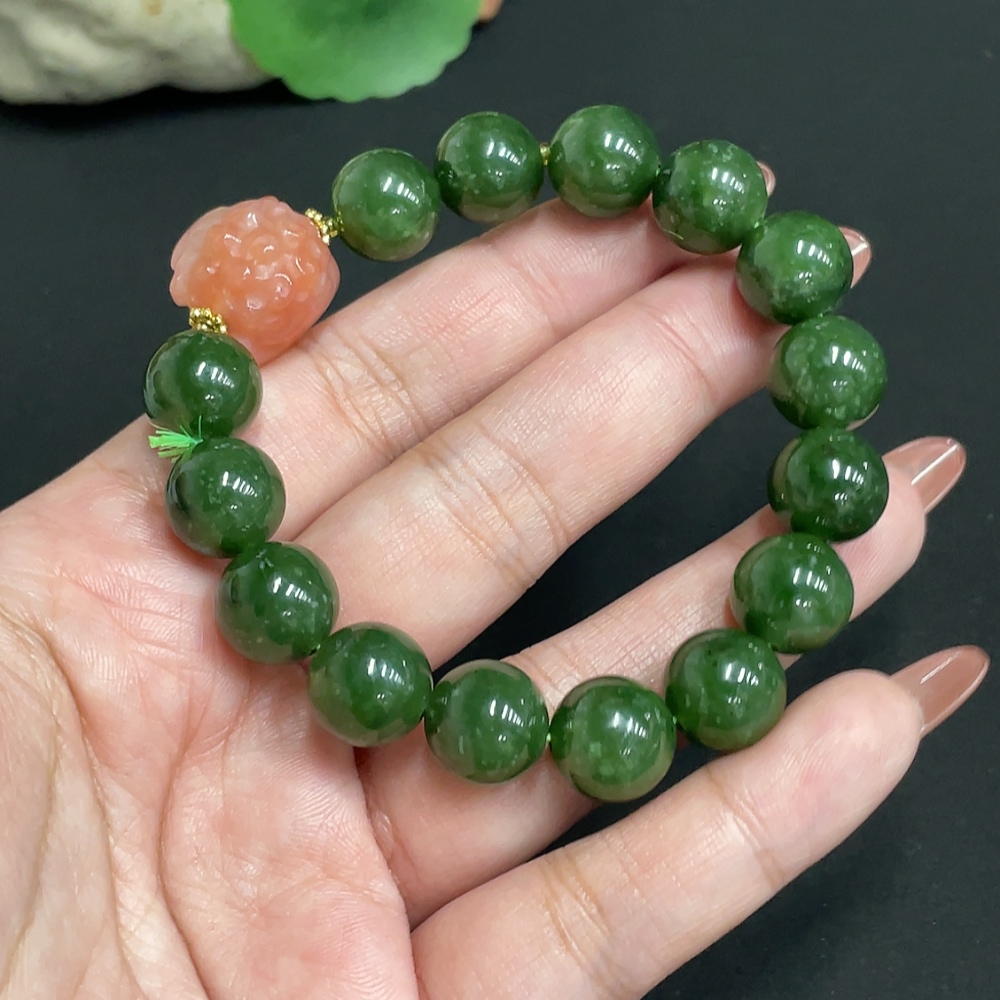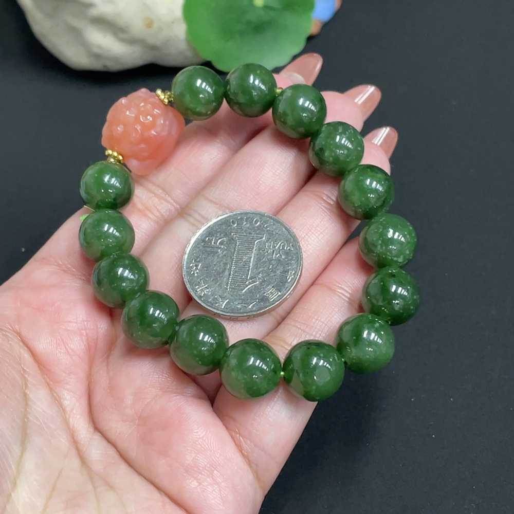 Hetian Jade Jasper Bracelet, Approx. 11.8 mm Beads, Total Weight About 45.3g, Non-Hetian Jade Accessory Beads