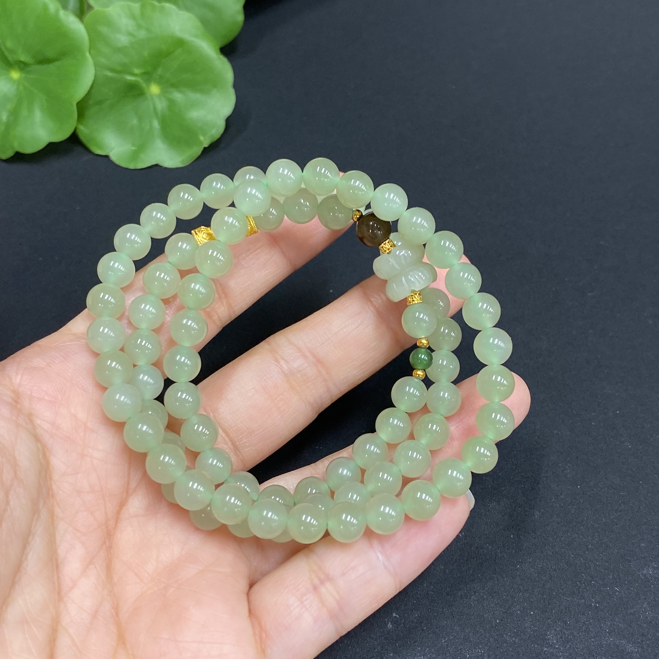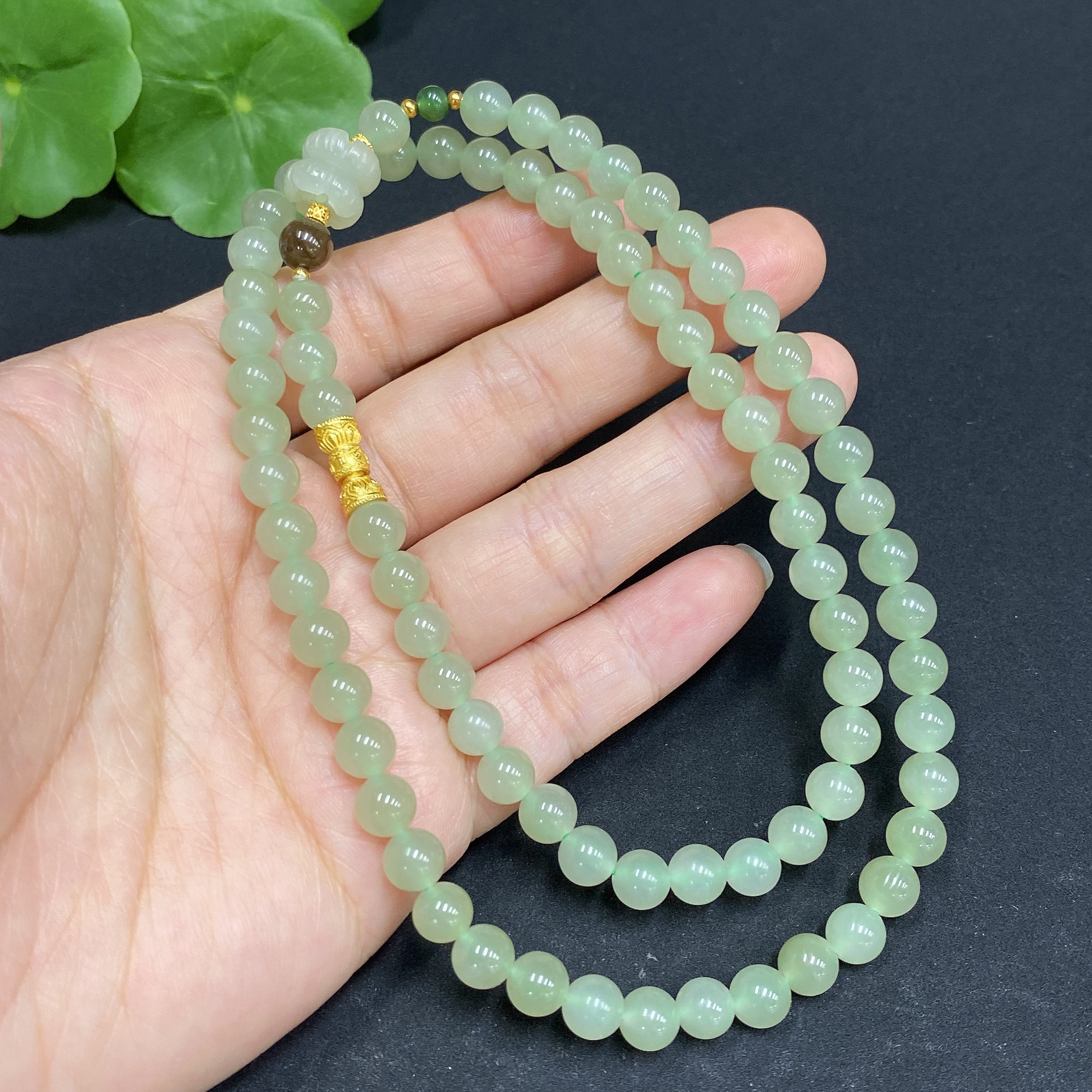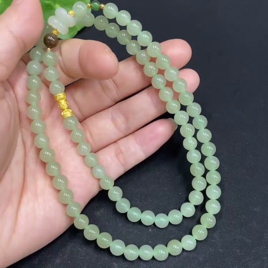 Hetian Jade Bead Necklace Approx. 5.9mm Non-gold Inlaid Total Weight Approx. 30g