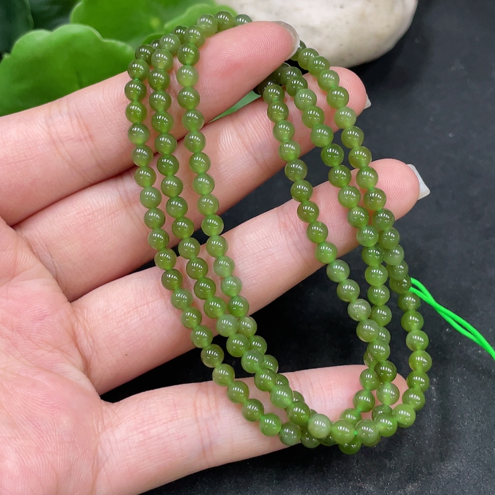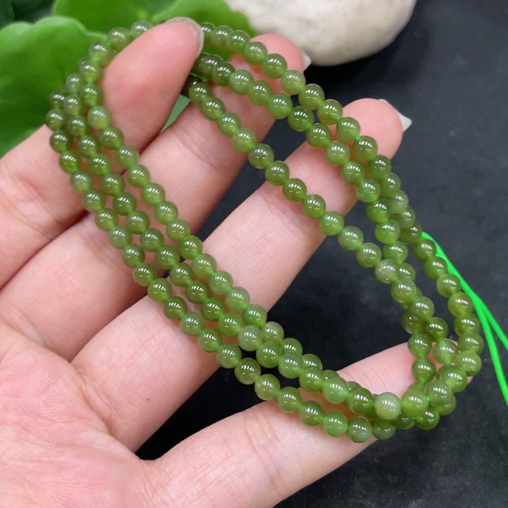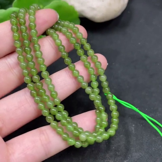 Hetian Jade Bead Necklace, Approx. 3.8mm, Total Weight Approx. 14.8g