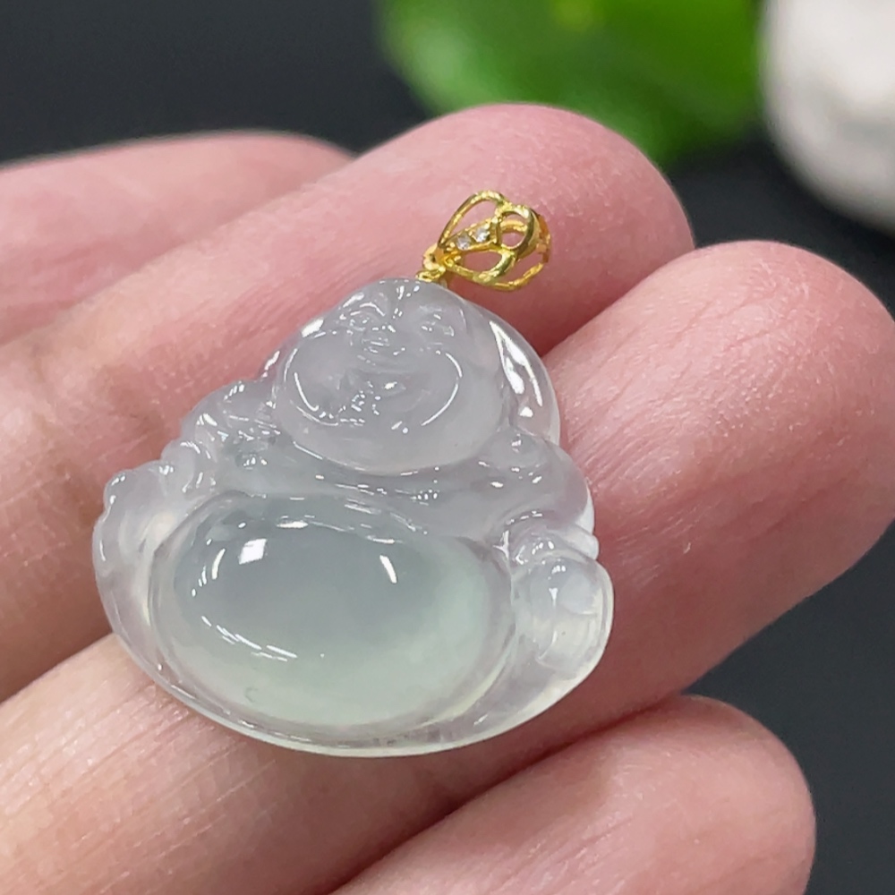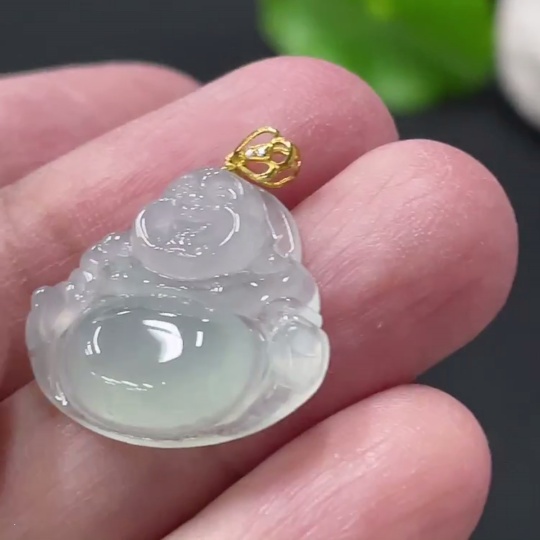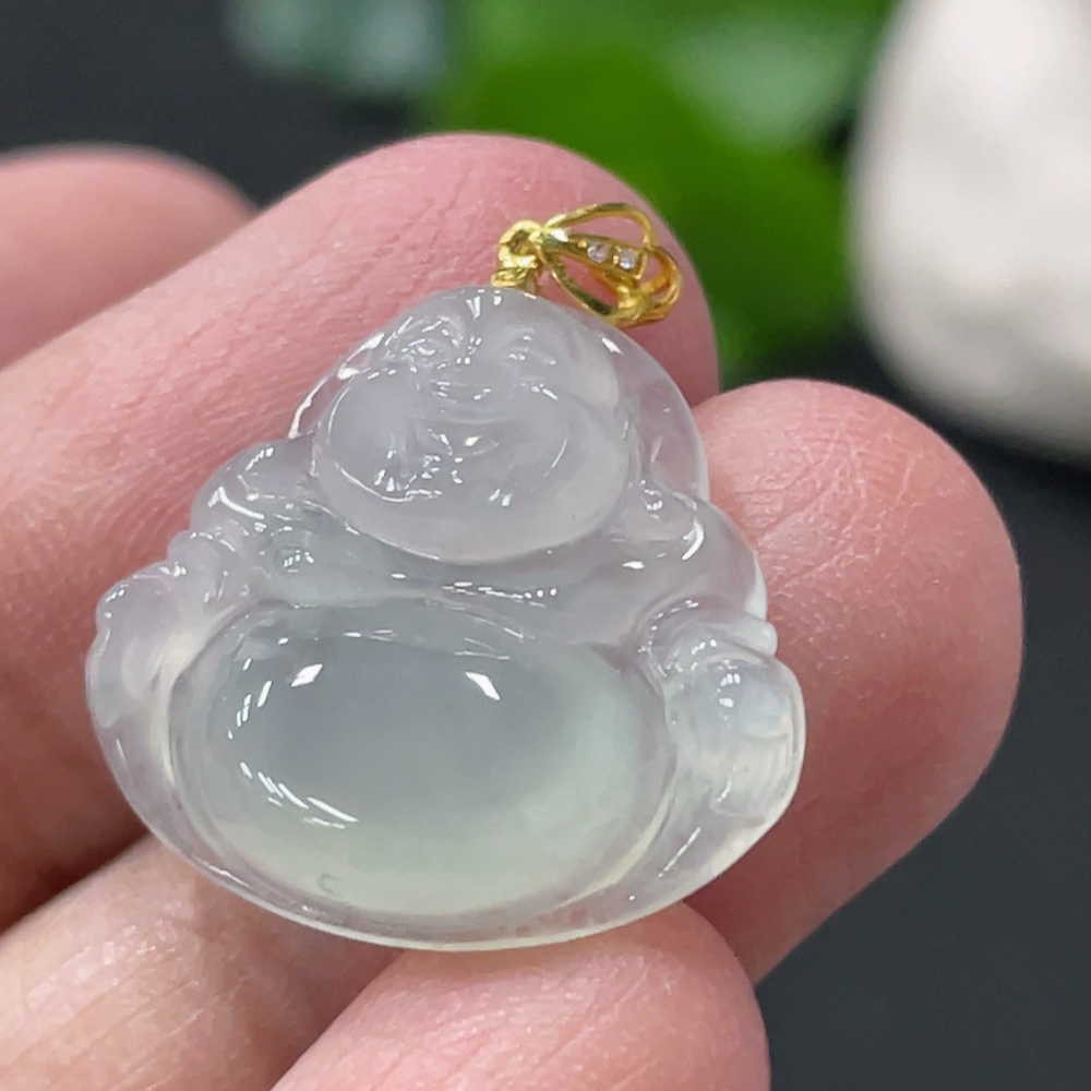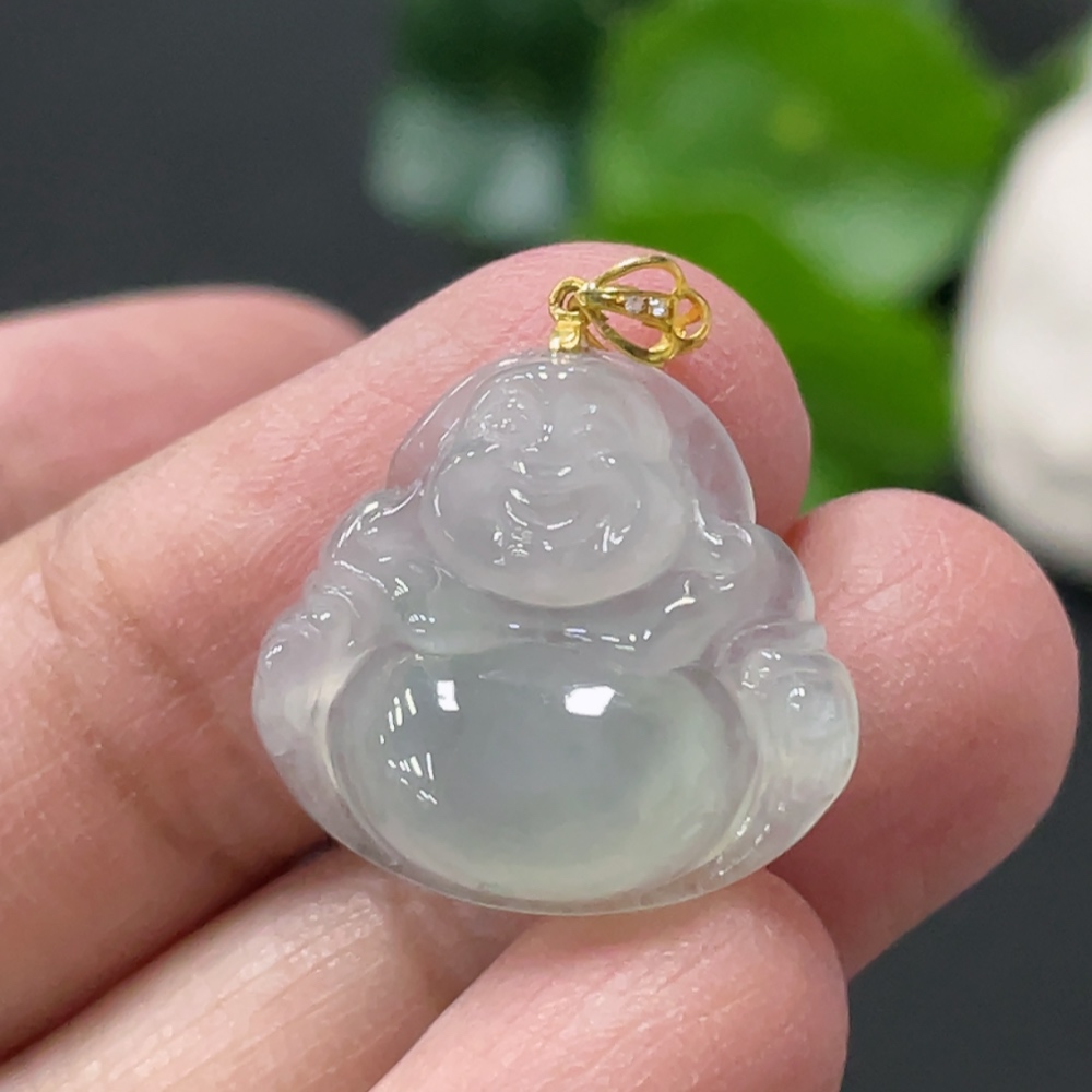 Jadeite Buddha Pendant Total Weight Approx. 2.5g 18k Gold Clasp with Diamond Accents