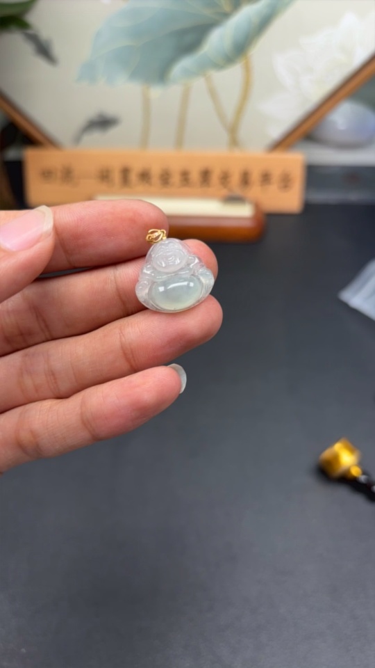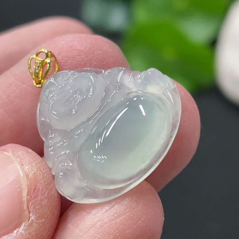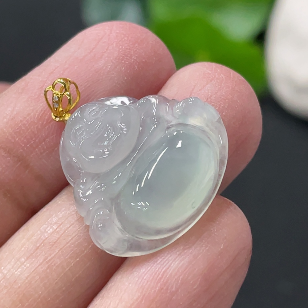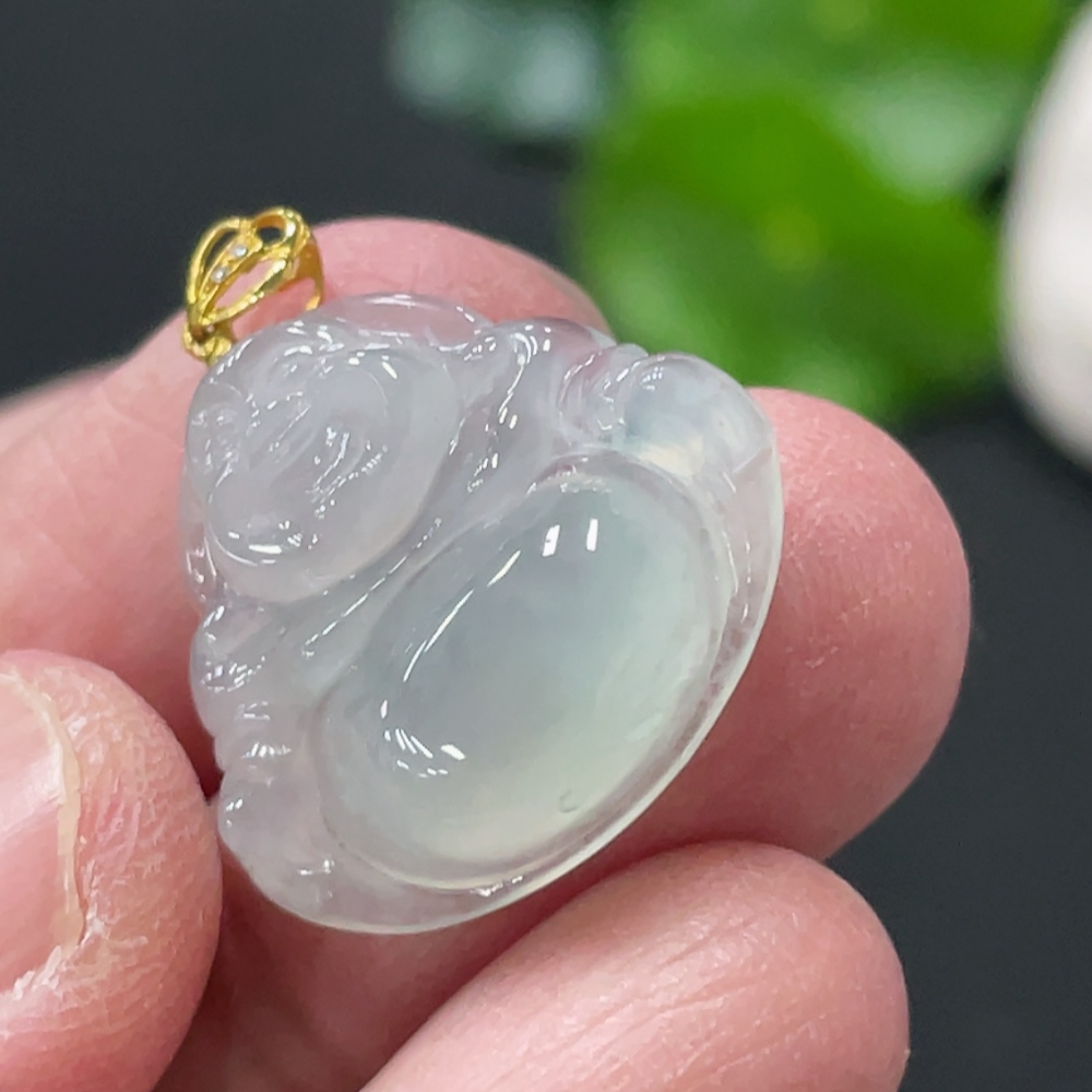 Jadeite Buddha Pendant Total Weight Approx. 2.5g 18k Gold Clasp with Diamond Accents