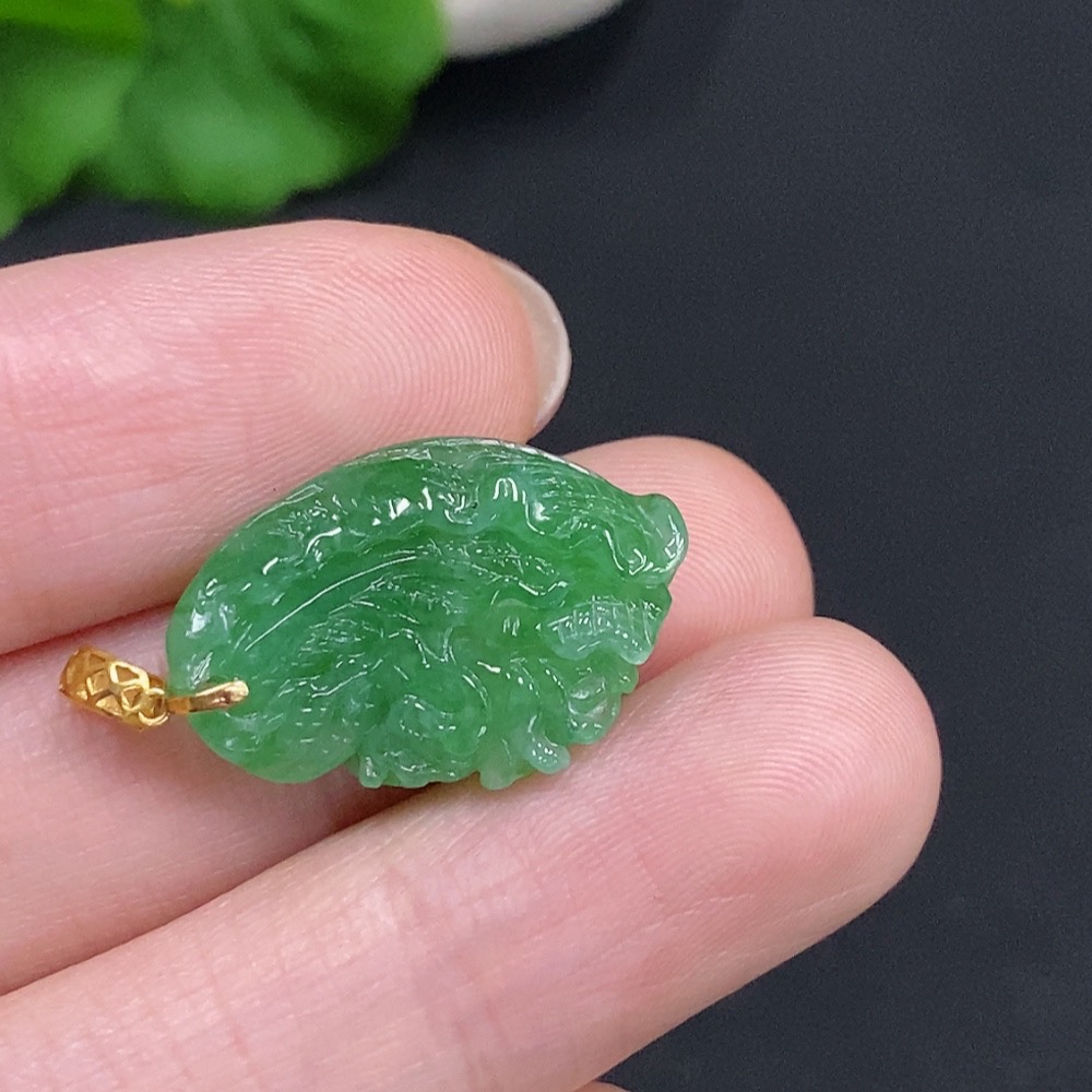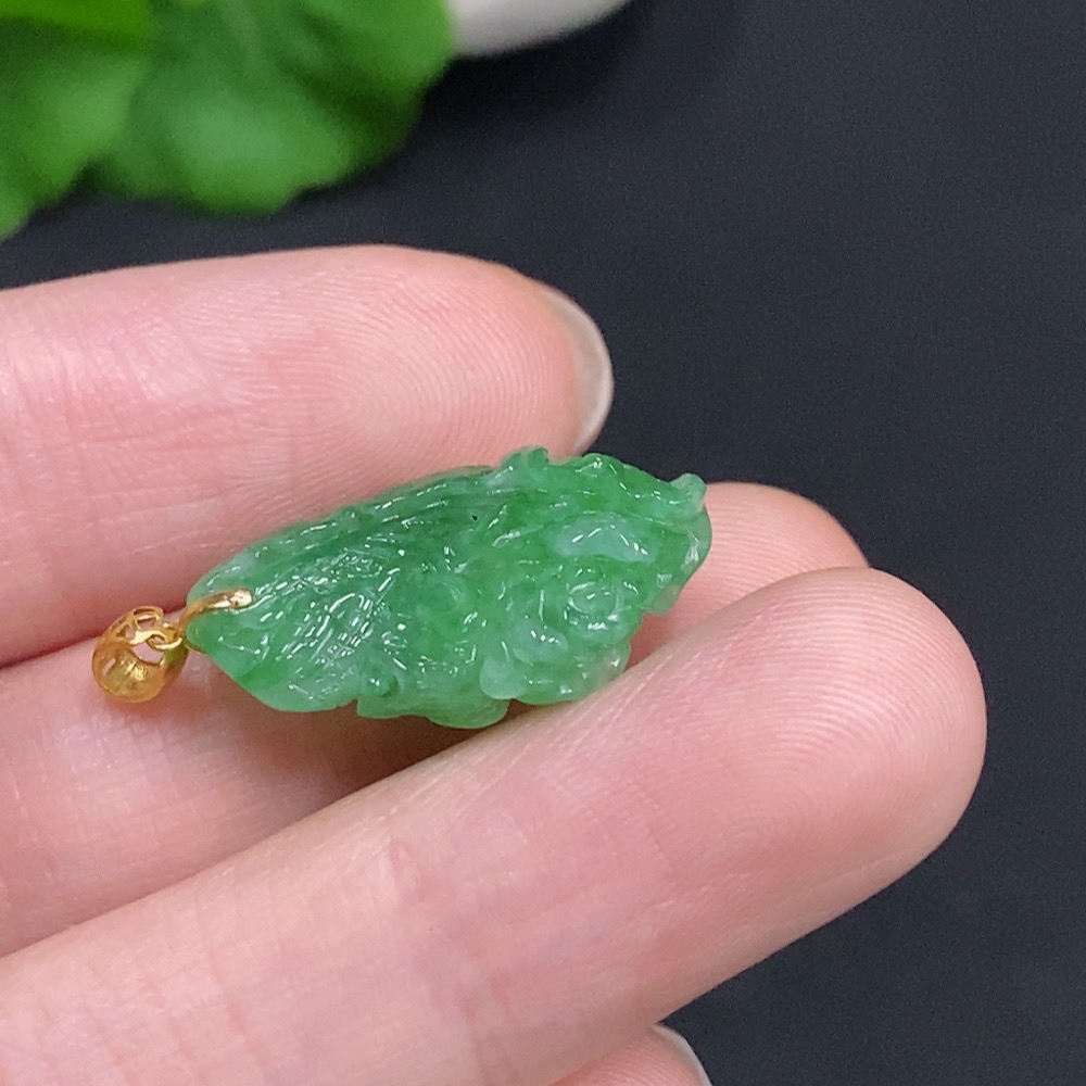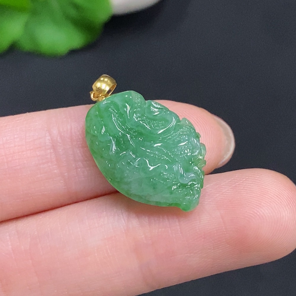 Jadeite Cabbage Pendant with 18K Gold Clasp, Total Weight Approximately 3g