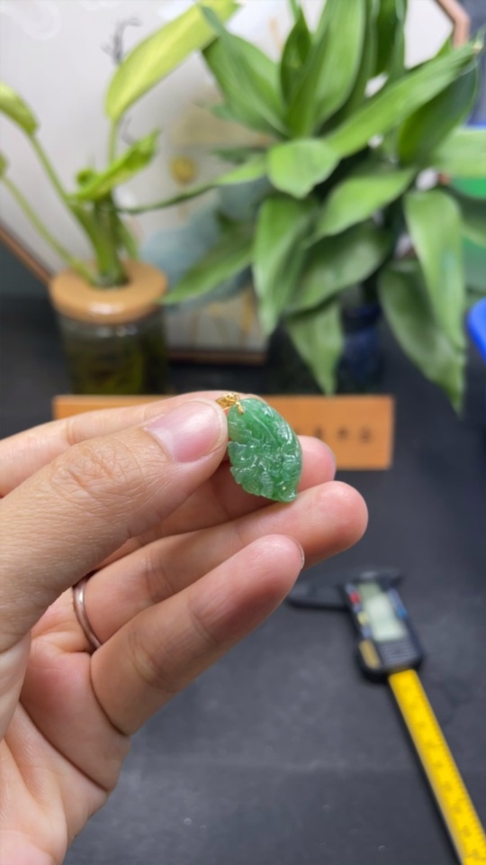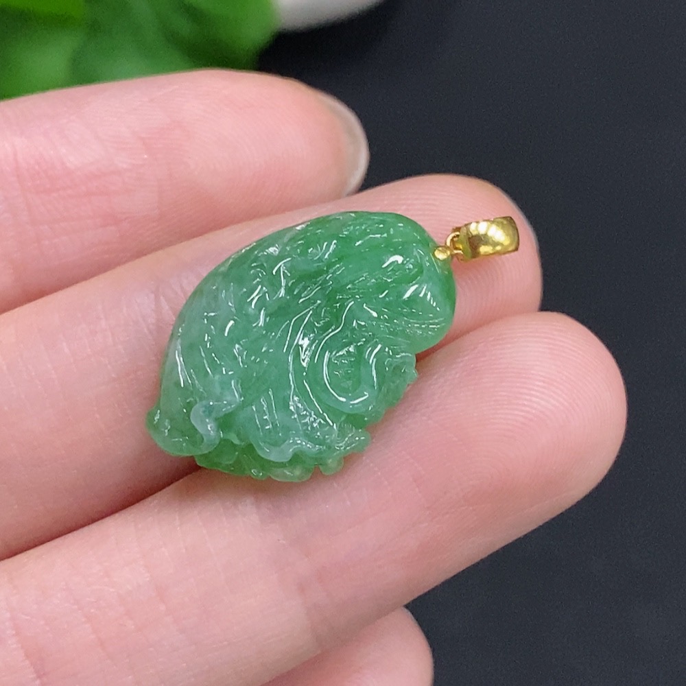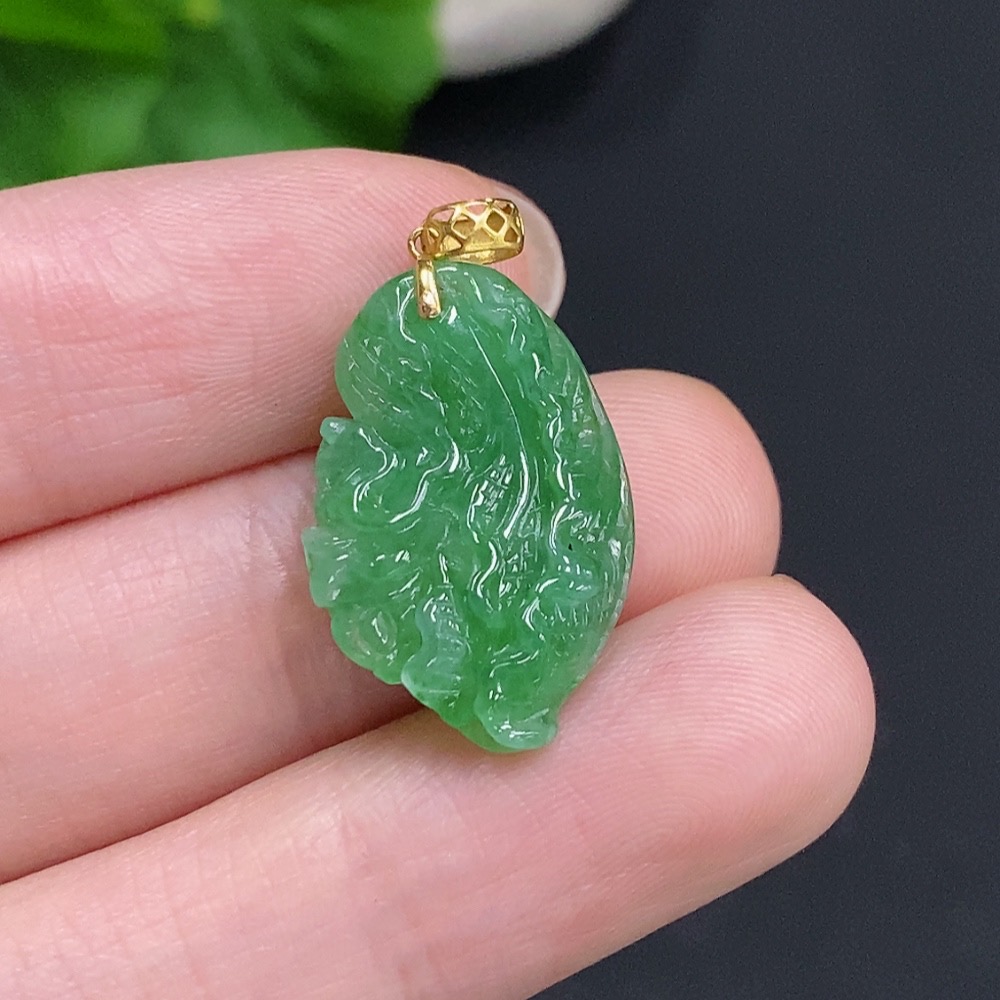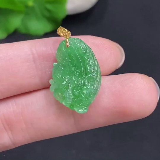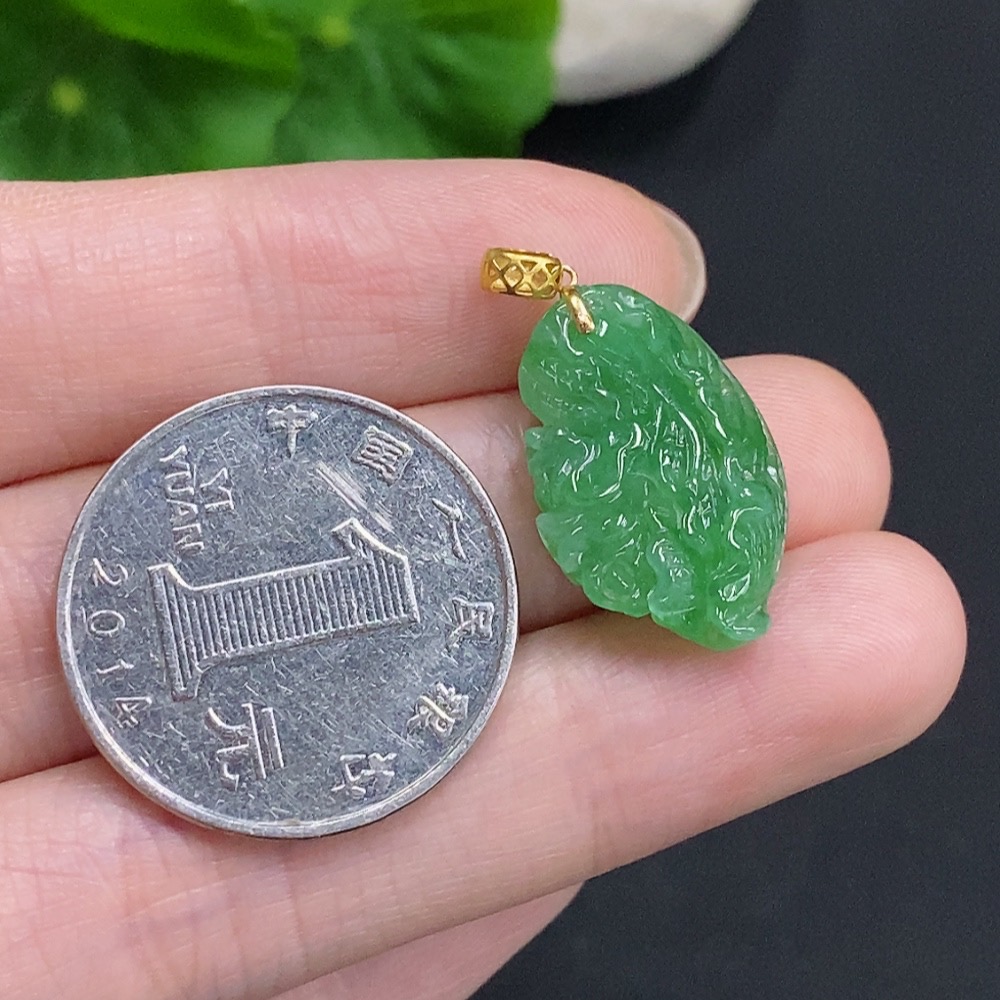 Jadeite Cabbage Pendant with 18K Gold Clasp, Total Weight Approximately 3g