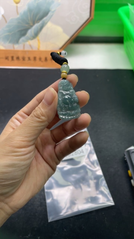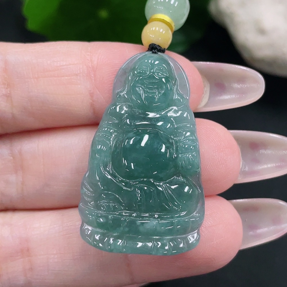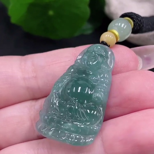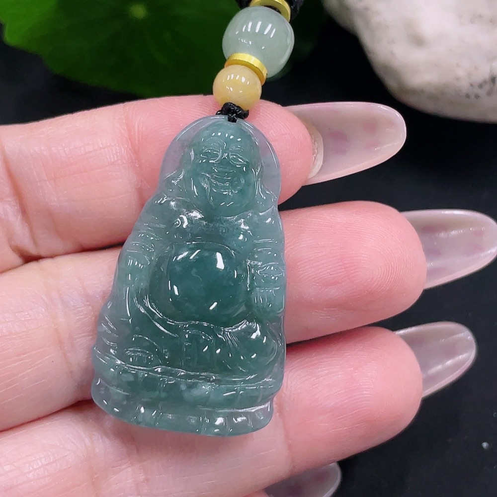 Jadeite Standing Buddha Pendant Total Weight Approx. 8.7g (including rope weight)