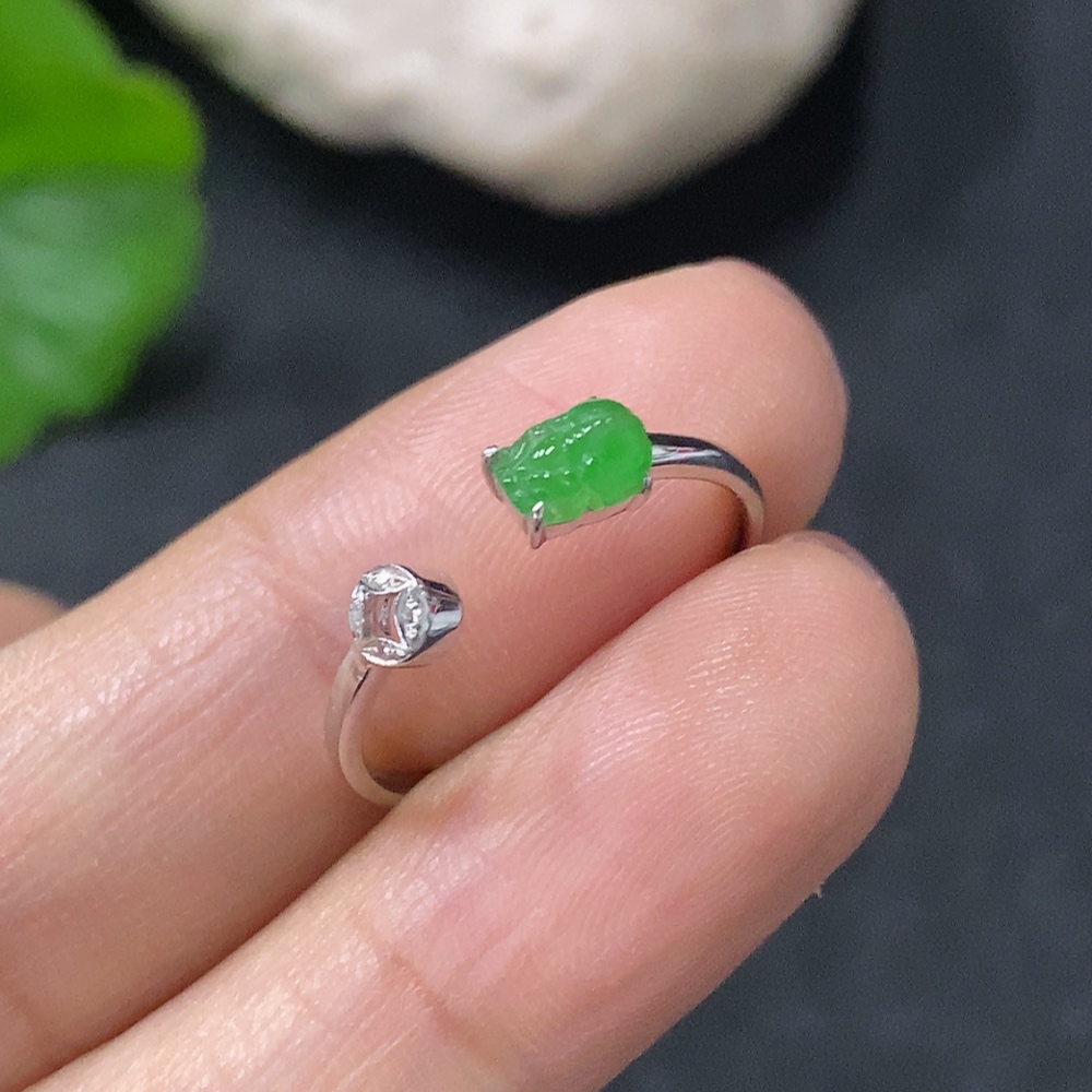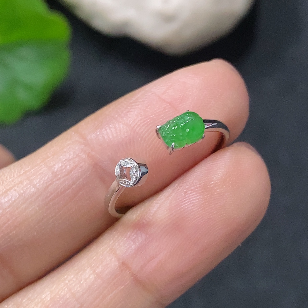 Jadeite Inlaid Ring 18k Gold Set with Diamonds Size 14 Total Weight Approx. 0.86g