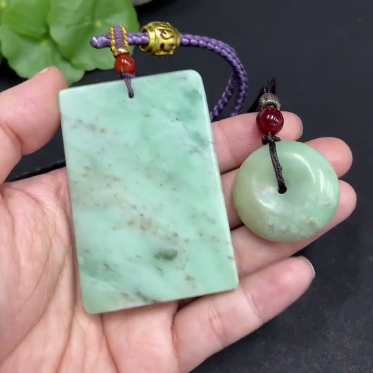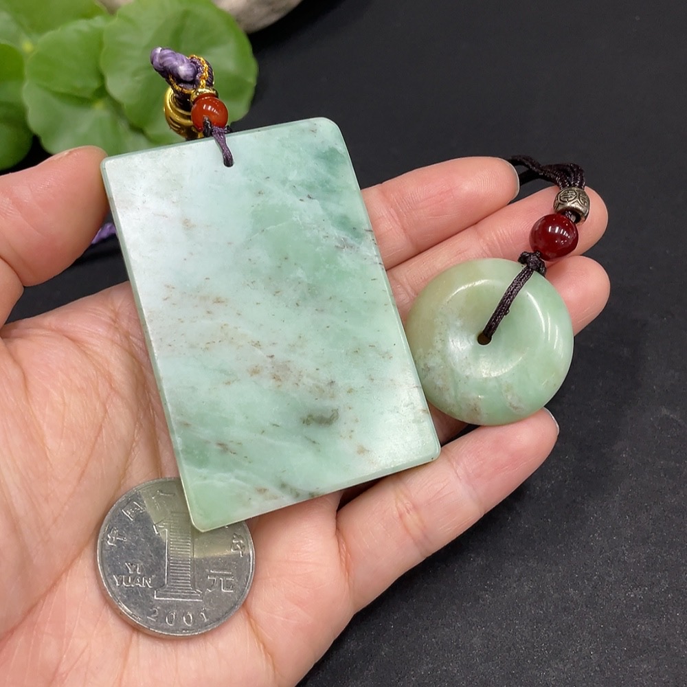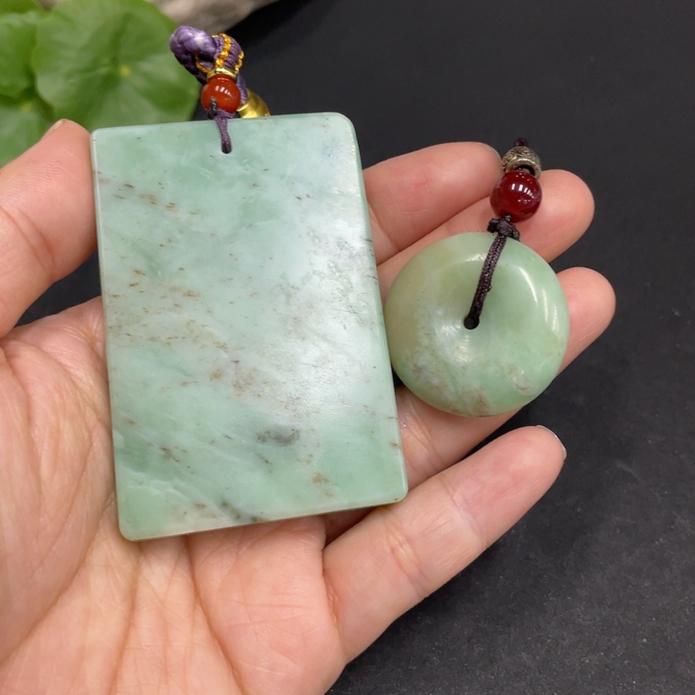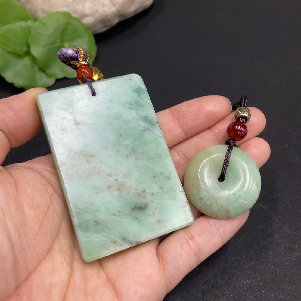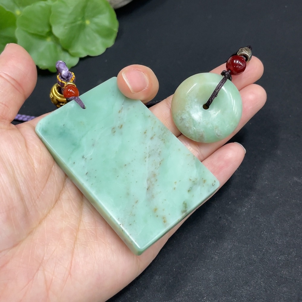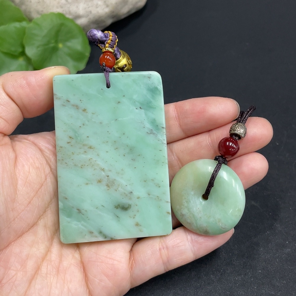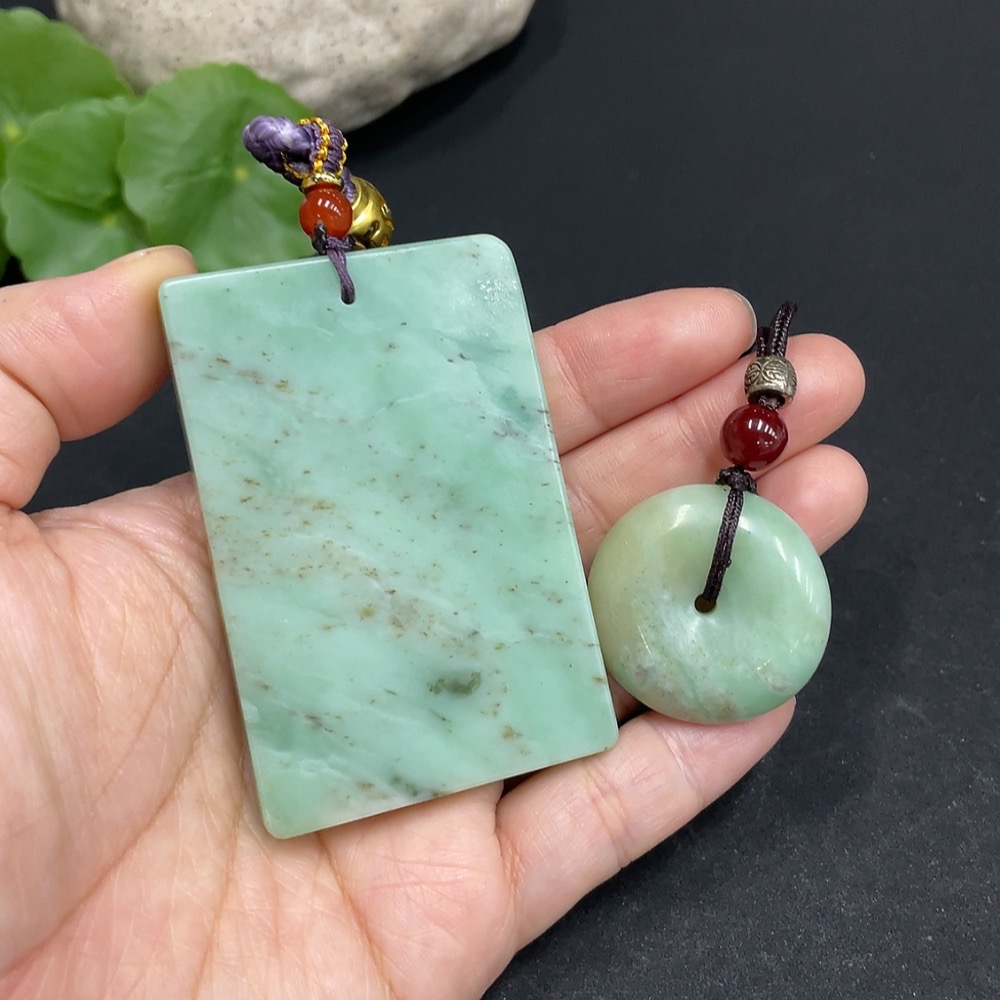Hetian Jade Pendant - Plain Pendant + Peace Knot with Other Mineral Components, Beads Not Hetian Jade, Total Weight Approx. (Including Cord) 74.4g