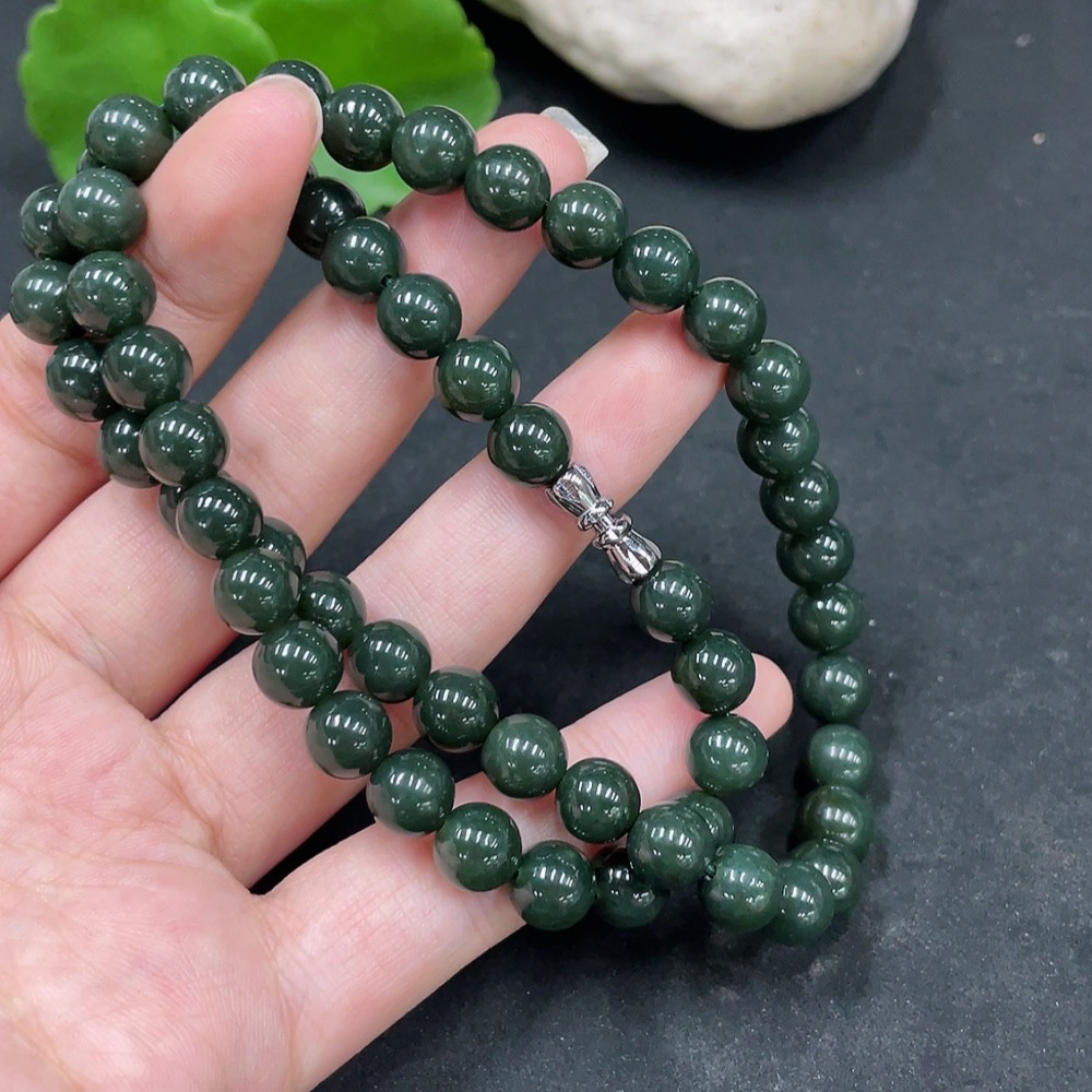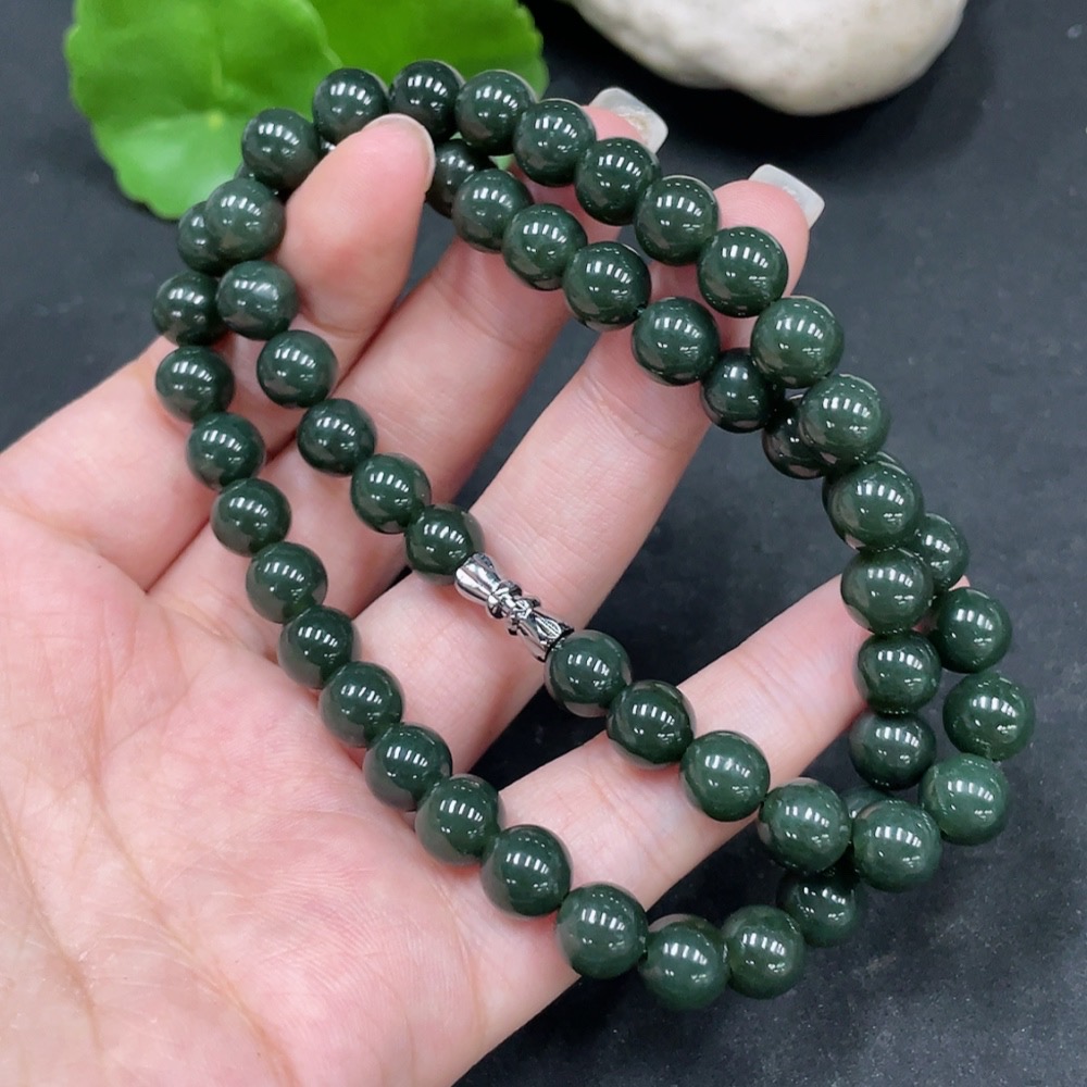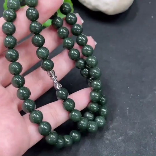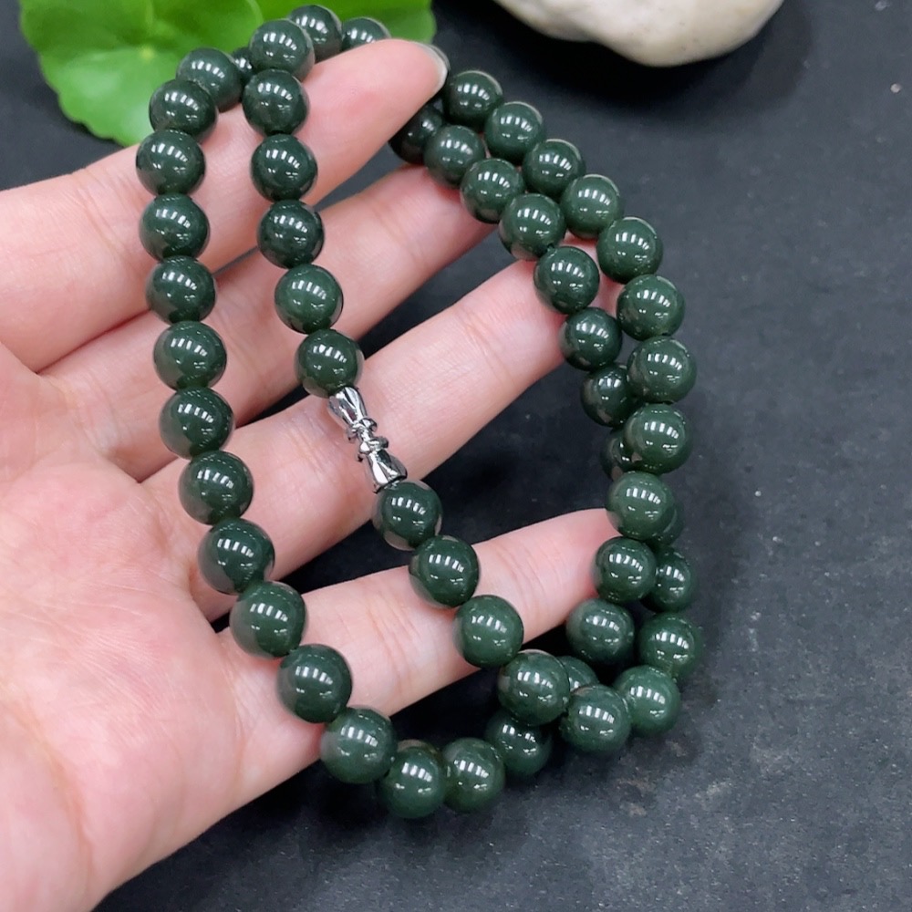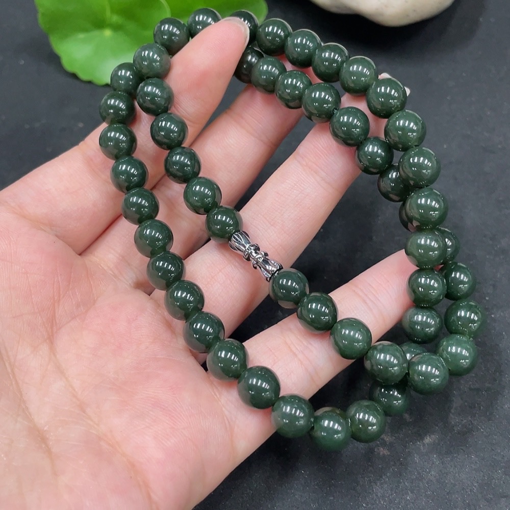 Hetian Jade Bead Necklace, Approx. 8mm, Total Weight Approx. 45.1g, Non-Gold