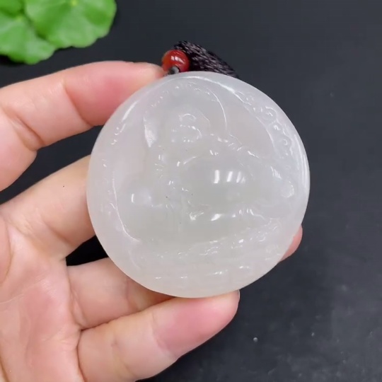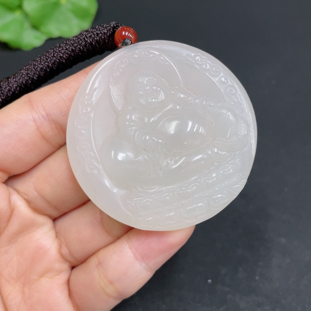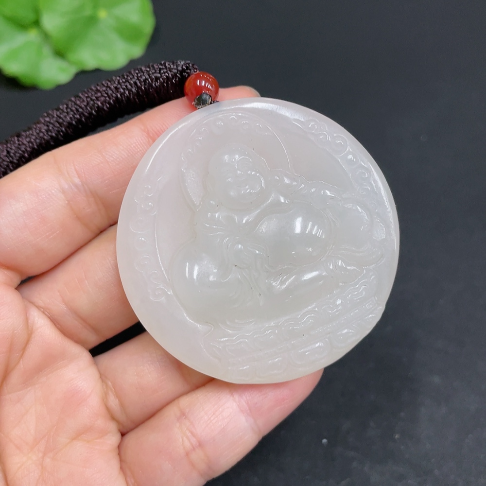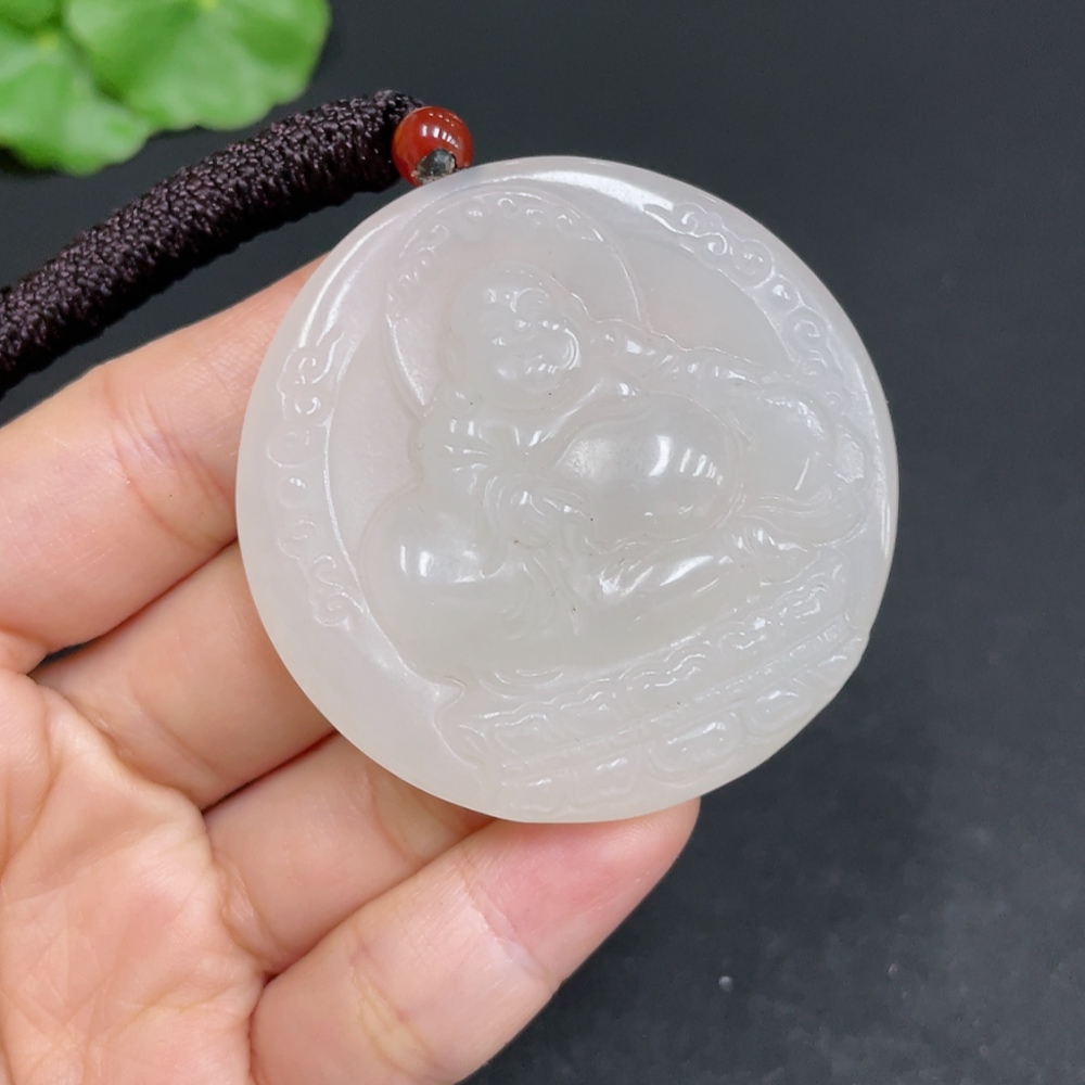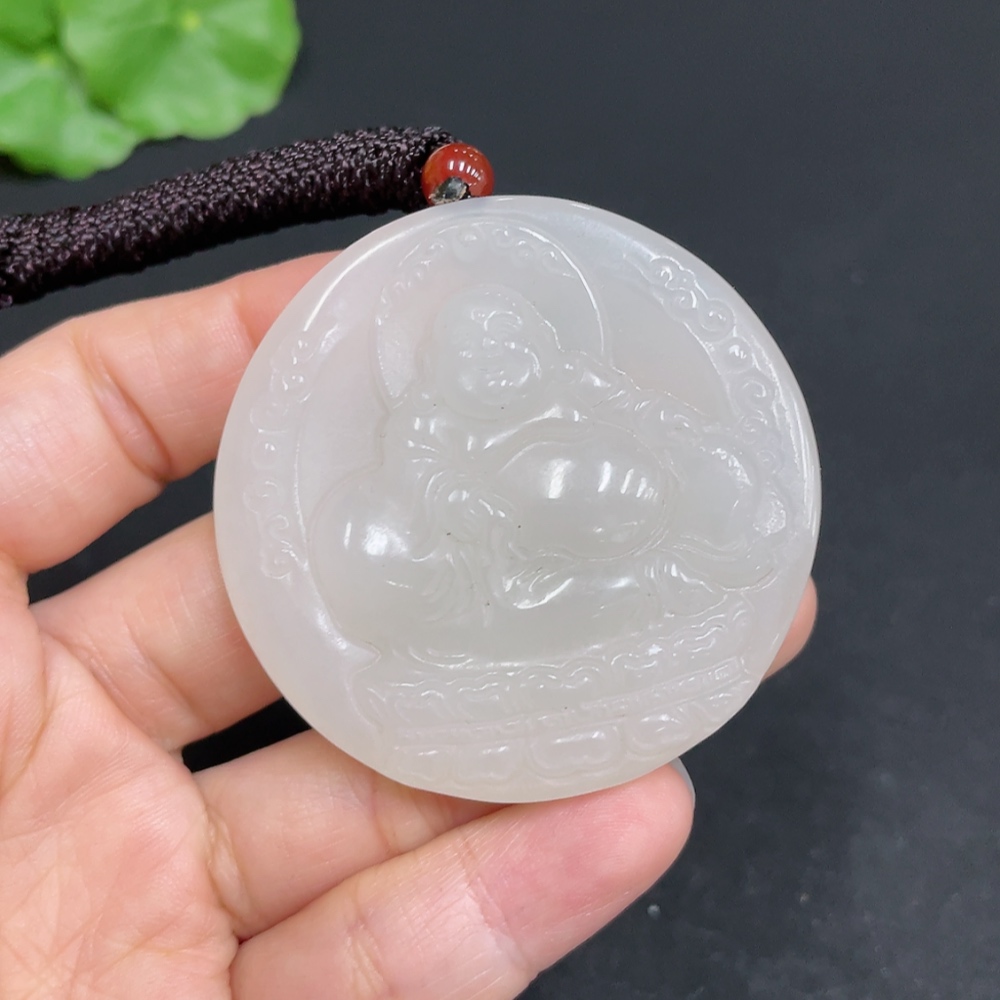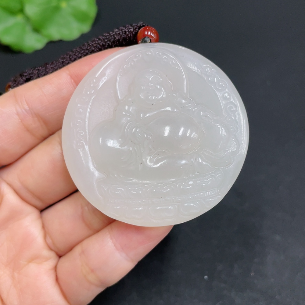Hetian Jade Pendant - Buddha - Total Weight (including rope): 37g