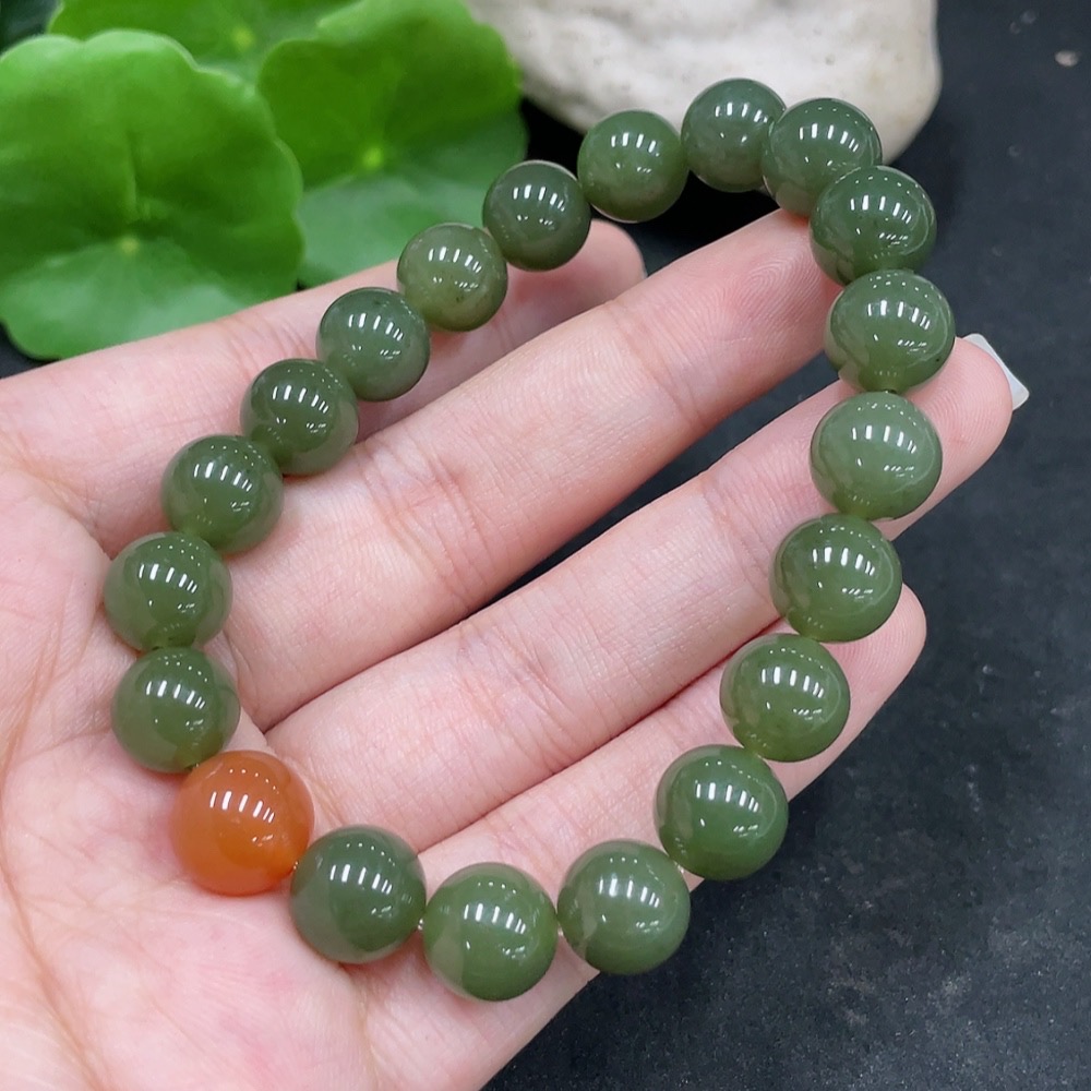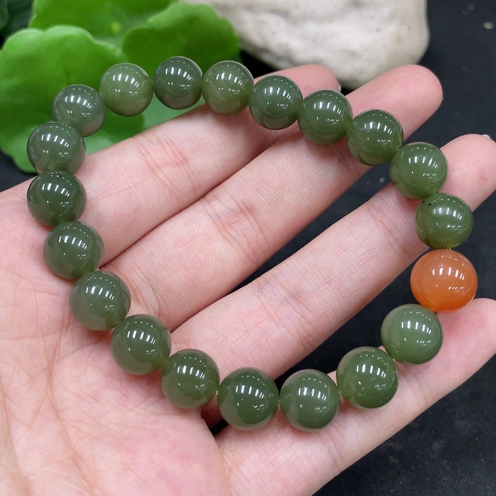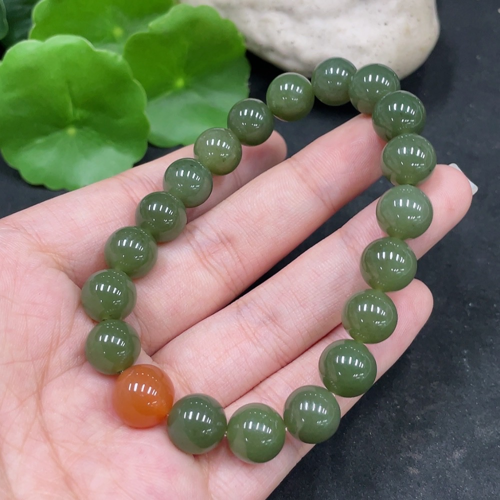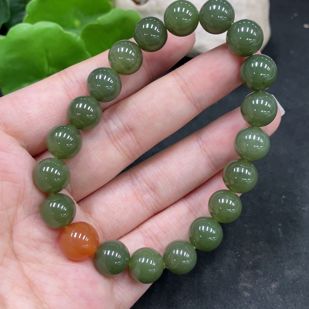 Hetian Jade Bracelet, Approx. 10mm Beads, Total Weight About 31.3g, Non-Hetian Jade Matching Beads