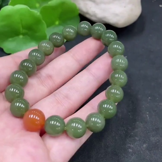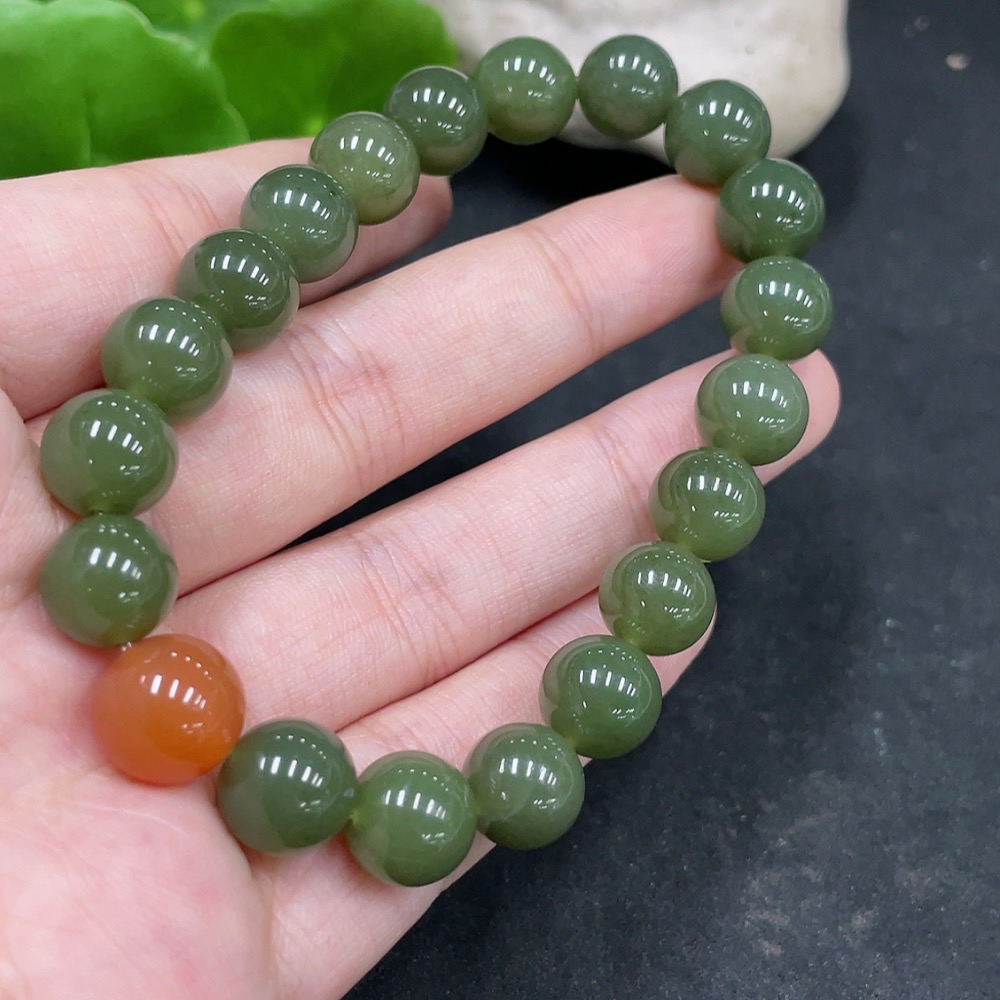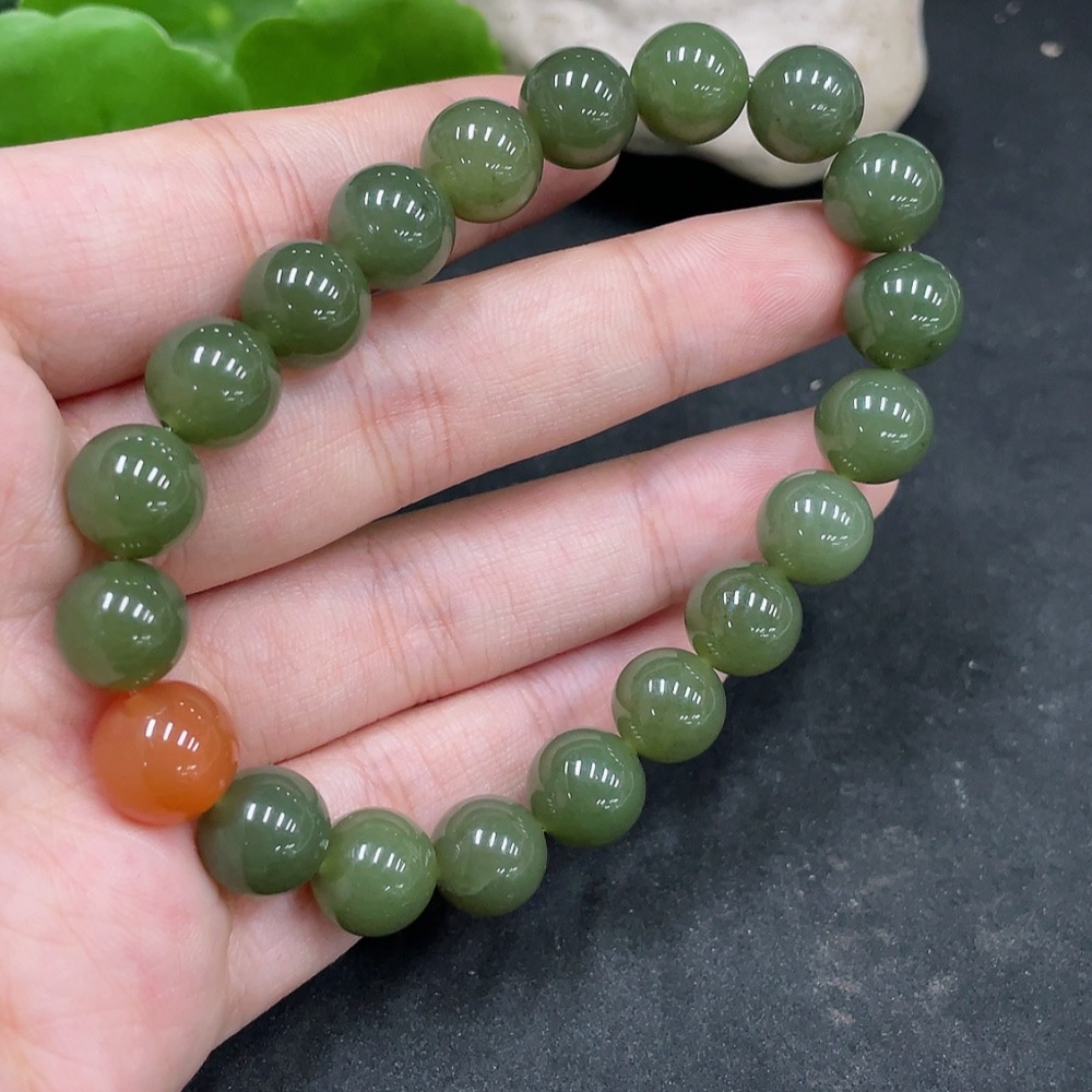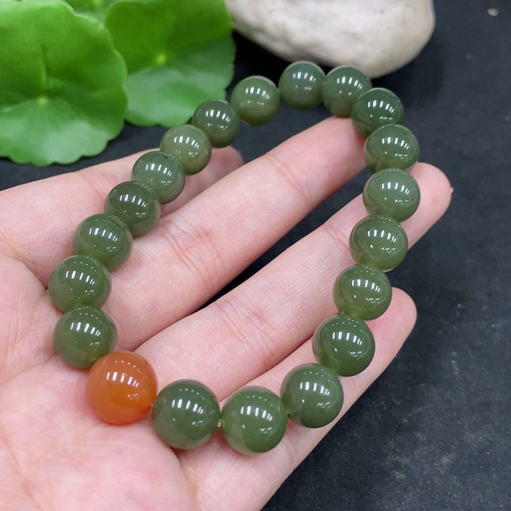 Hetian Jade Bracelet, Approx. 10mm Beads, Total Weight About 31.3g, Non-Hetian Jade Matching Beads