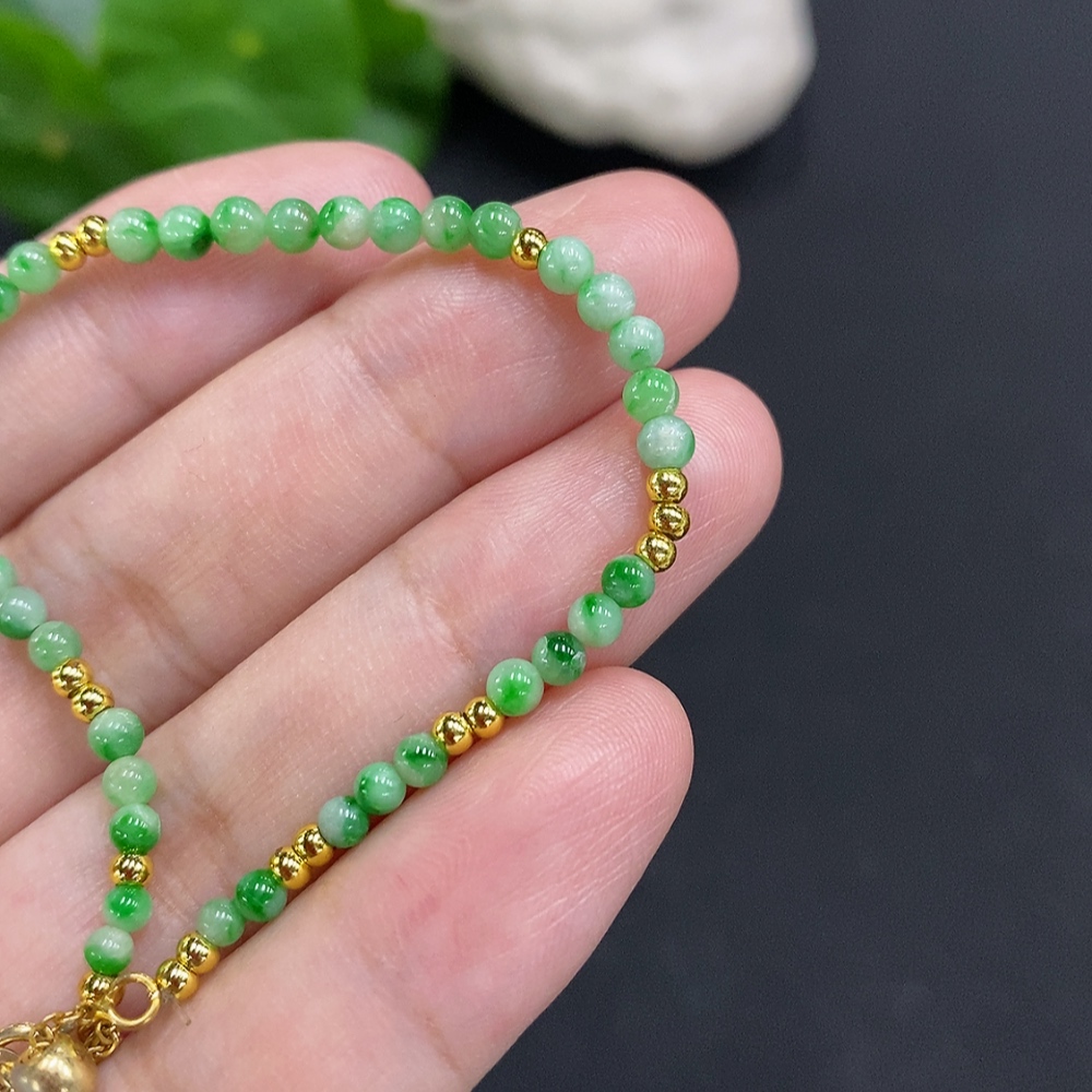 Jadeite Beaded Necklace approx. 3mm Non-Gold Total Weight approx. 2.9g